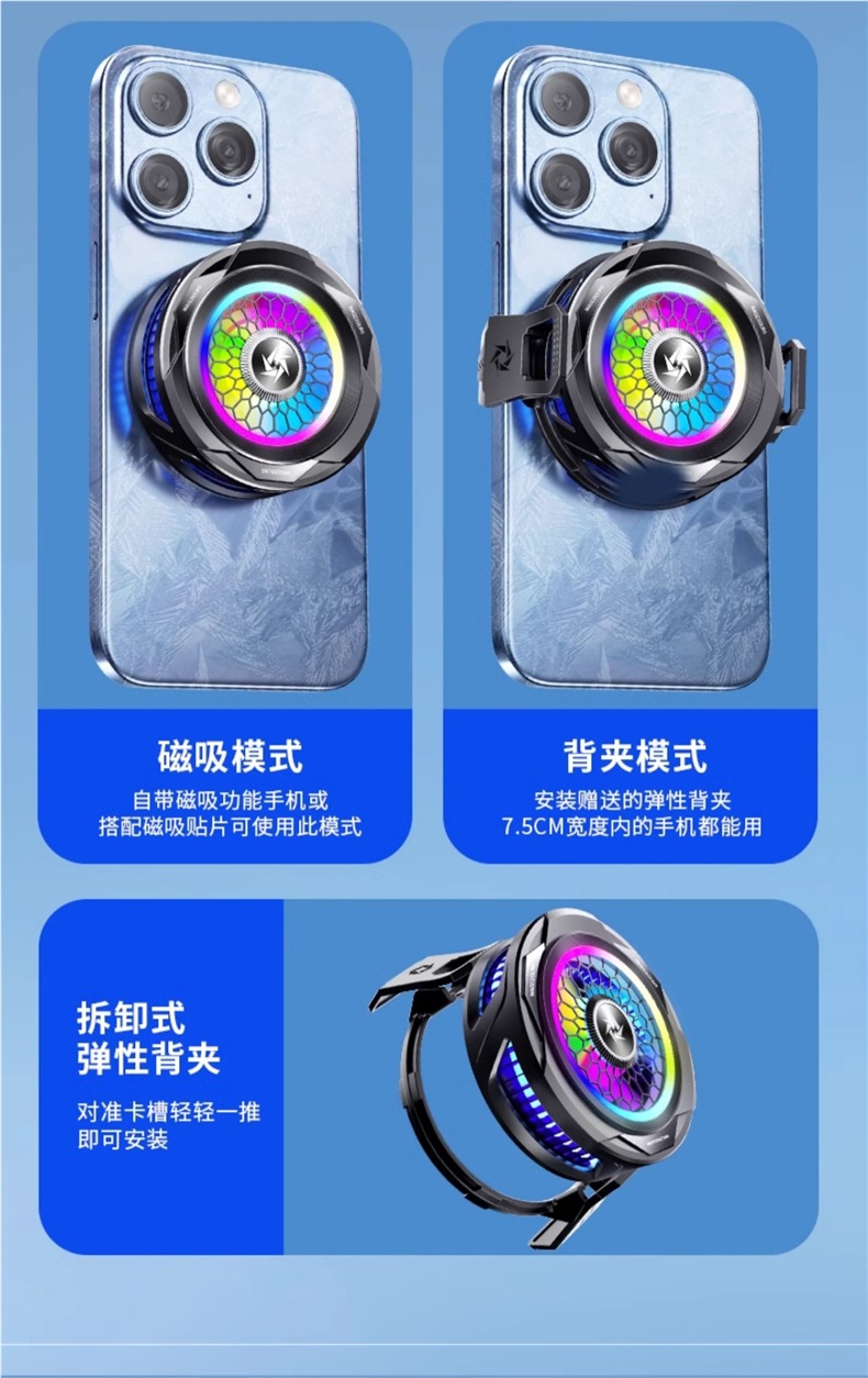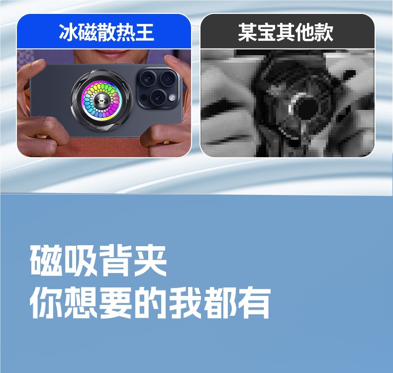 자기 얼음 붉은 악마 게임 검은 상어 냉각 세미 가이드를위한 라이브 음소거 1 플러스 기장 백 클립 물 냉각 팬