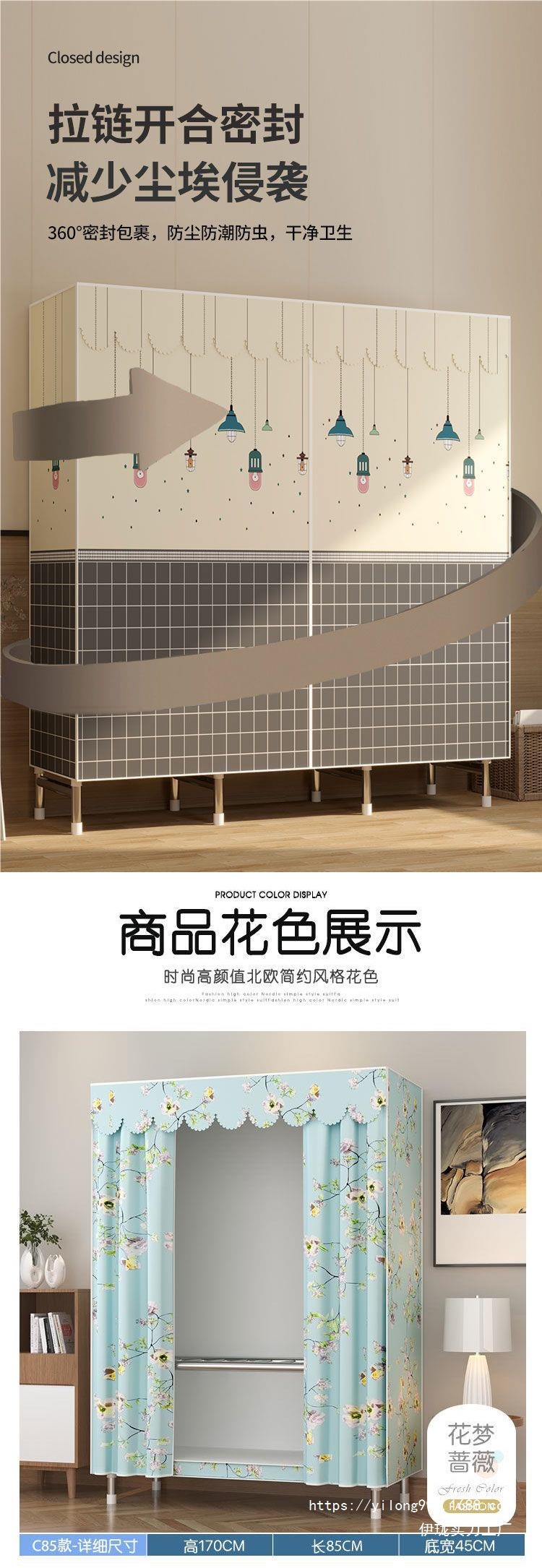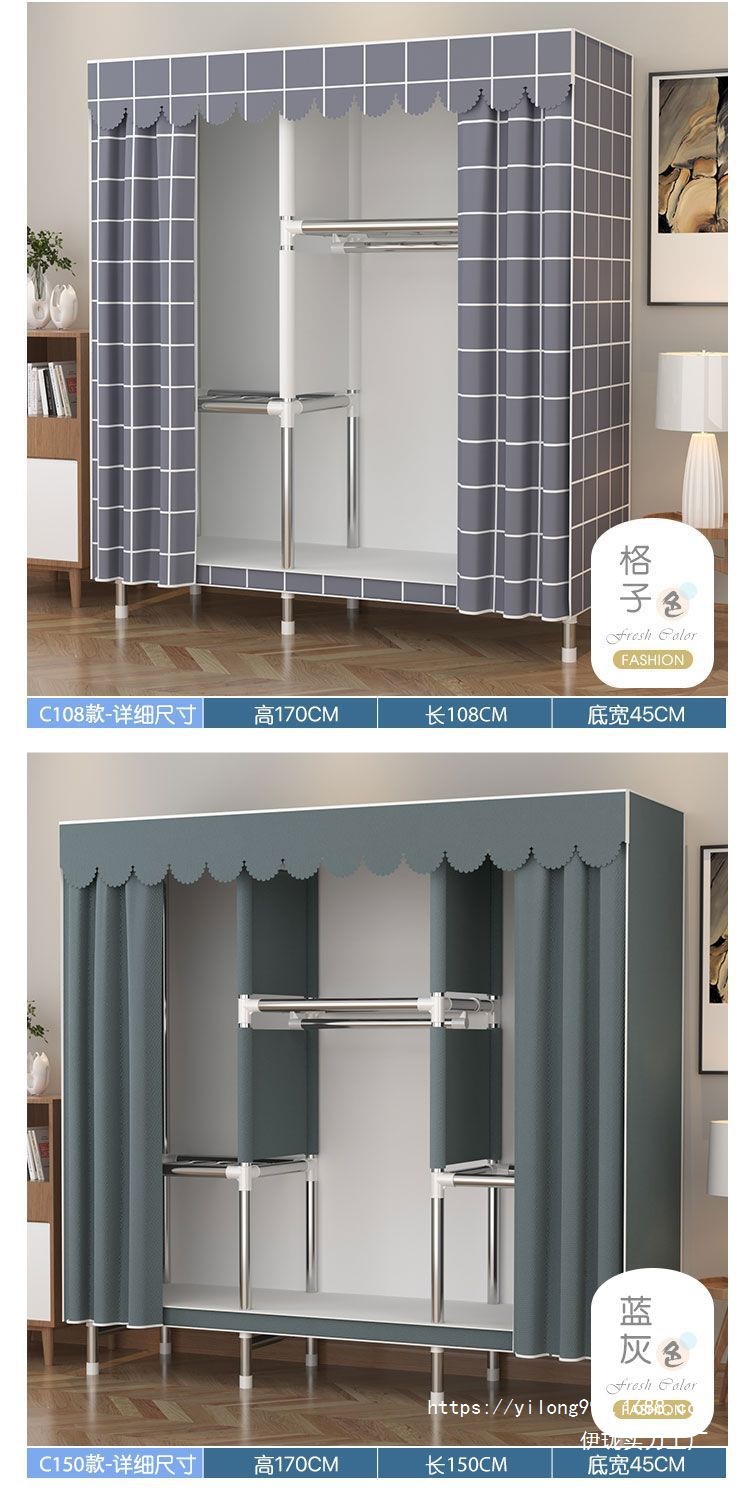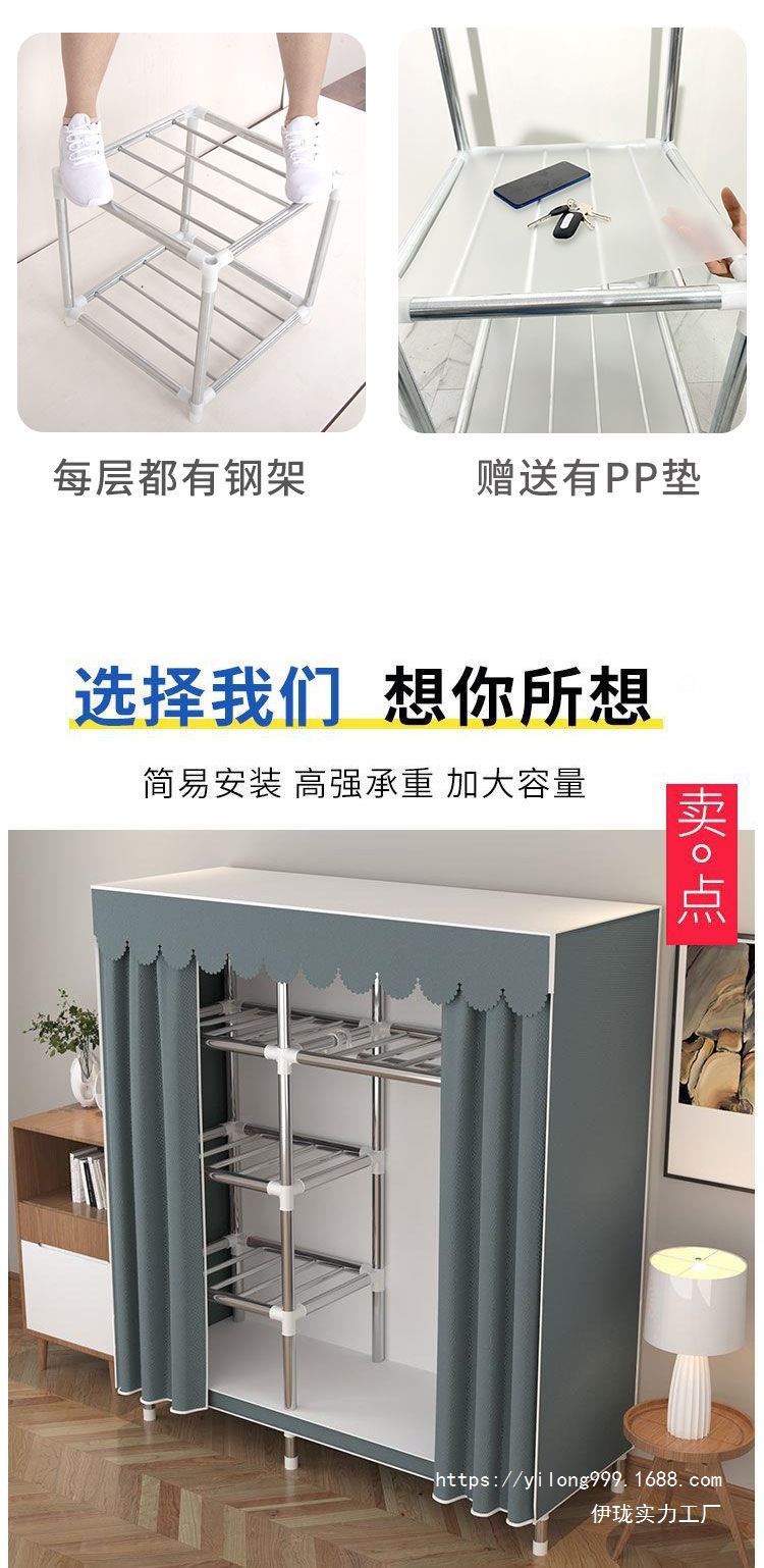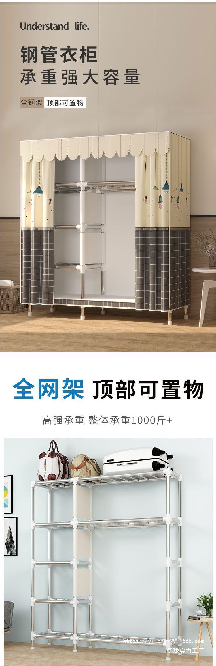 렌탈 룸 가정용 침실 조립 캐비닛 스틸 파이프 볼드 강화 스토리지 랙 옷장 용 간단한 옷장 옷장스토어 가기