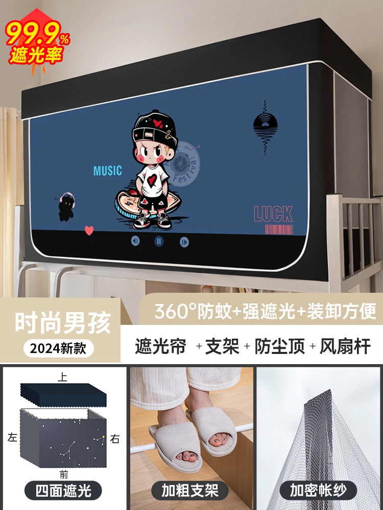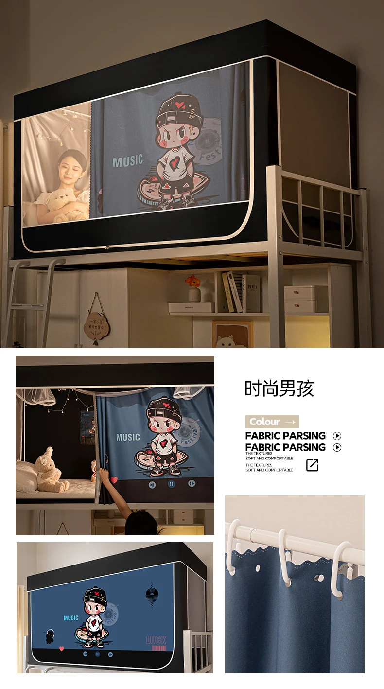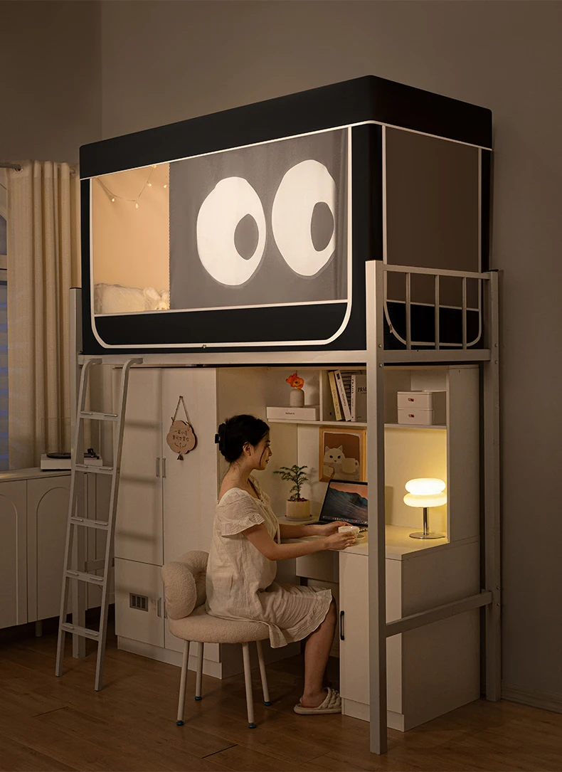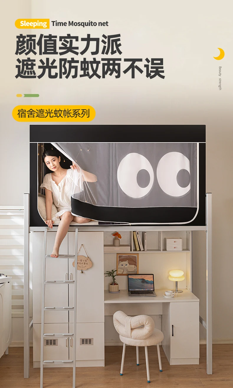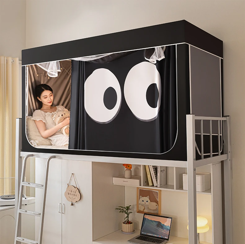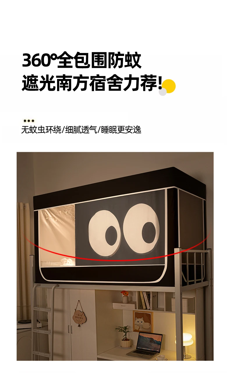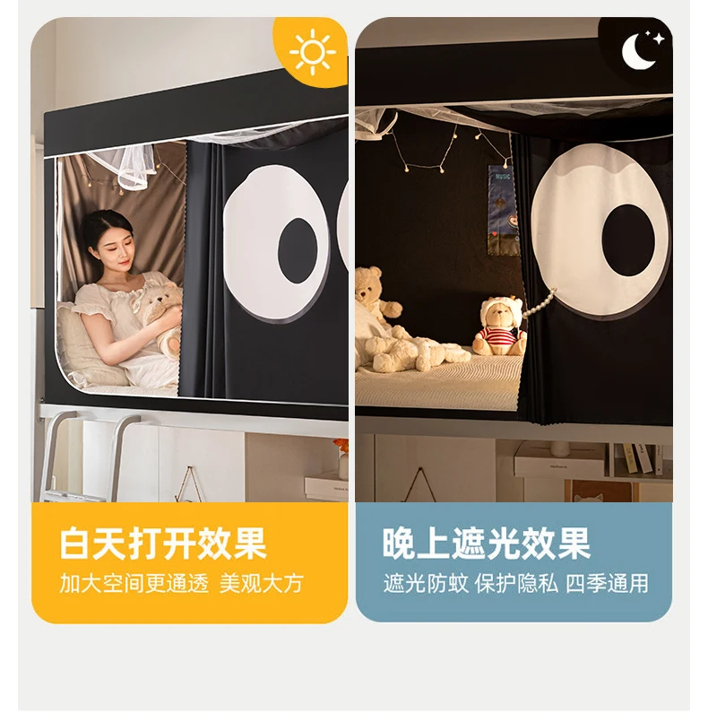모기장과 침대 커튼이 일체형으로 빛을 차단하는 대학 기숙사 일체형 밀폐형 기숙사 이층 침대 싱글 침대