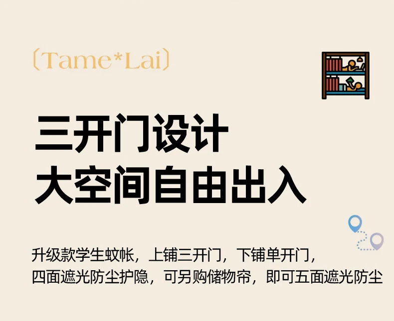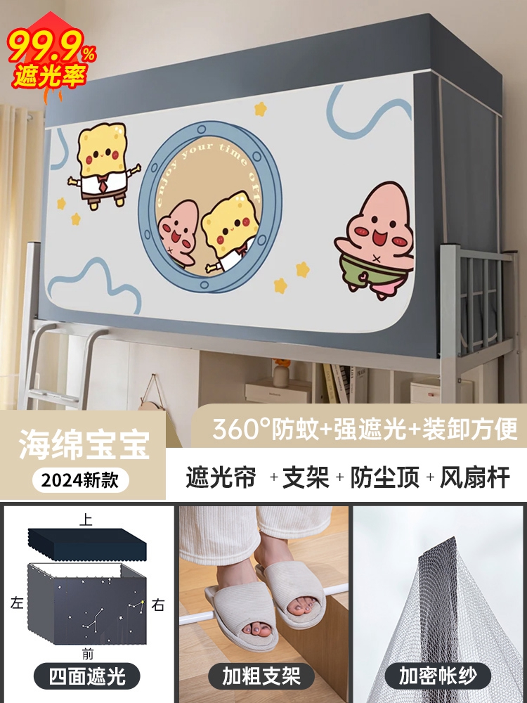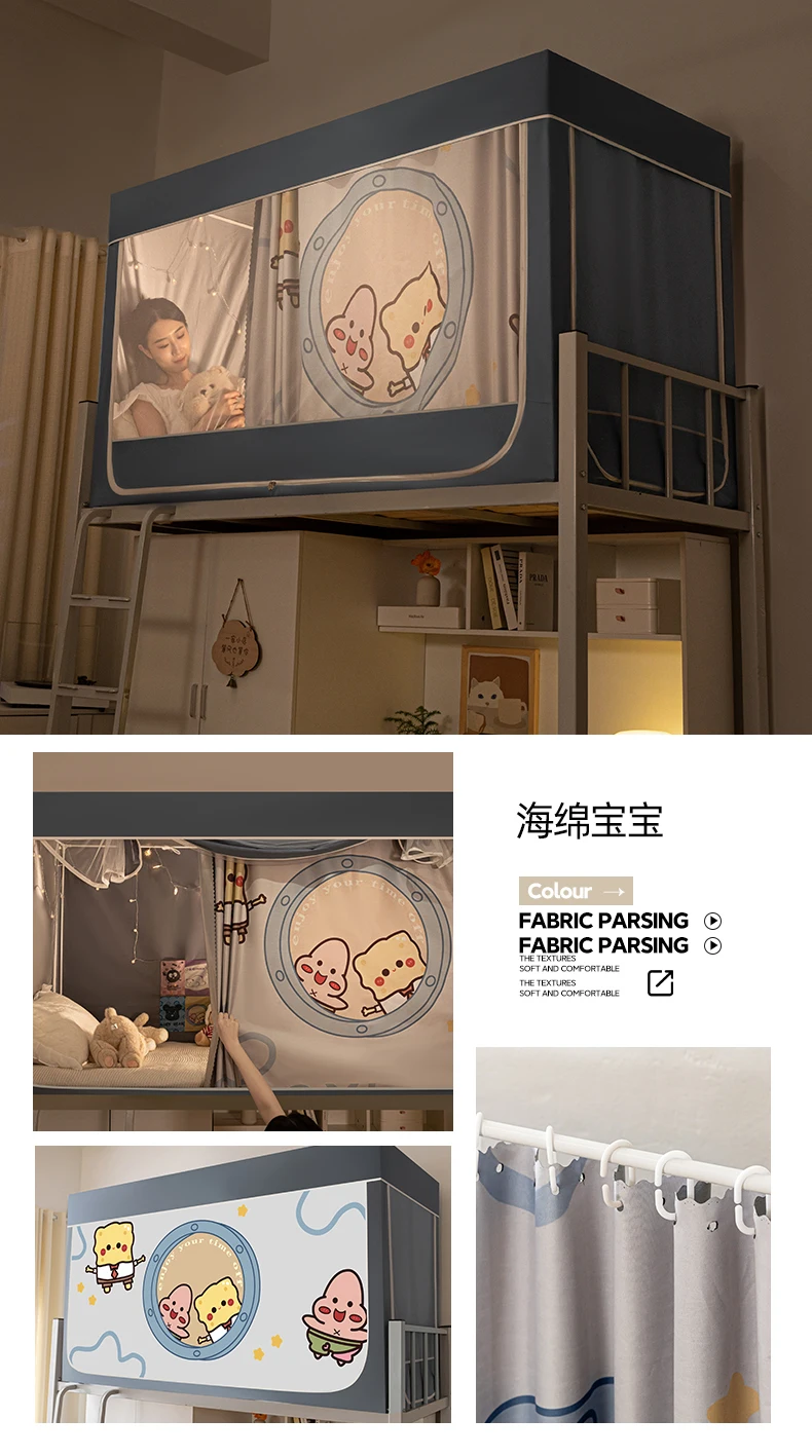 모기장과 침대 커튼이 일체형으로 빛을 차단하는 대학 기숙사 일체형 밀폐형 기숙사 이층 침대 싱글 침대스토어 가기