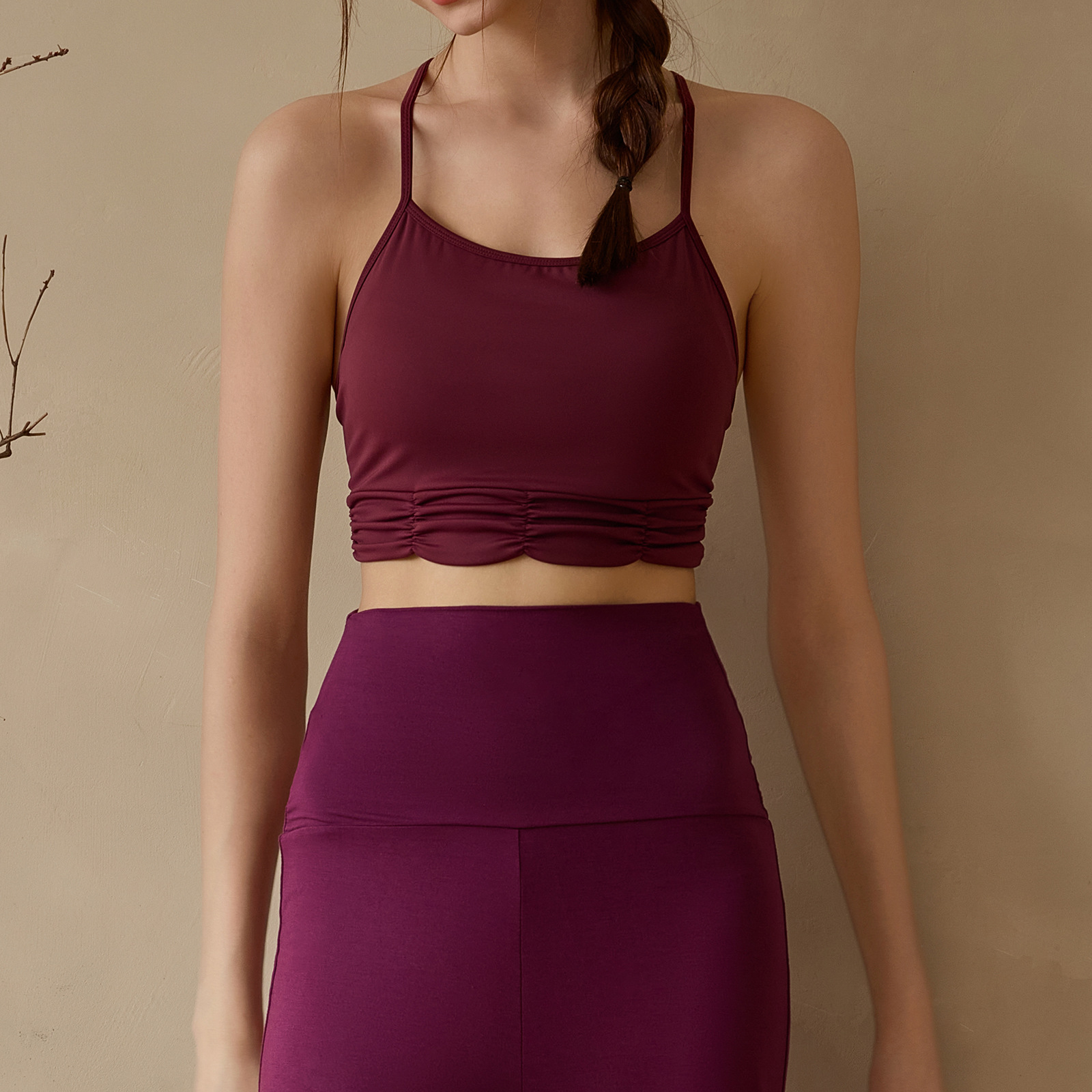 베어 느낌 새싹 헴 스포츠 조끼 피트니스 야외 훈련 실행 요가 브라 충격 방지 고정 컵 요가 의류