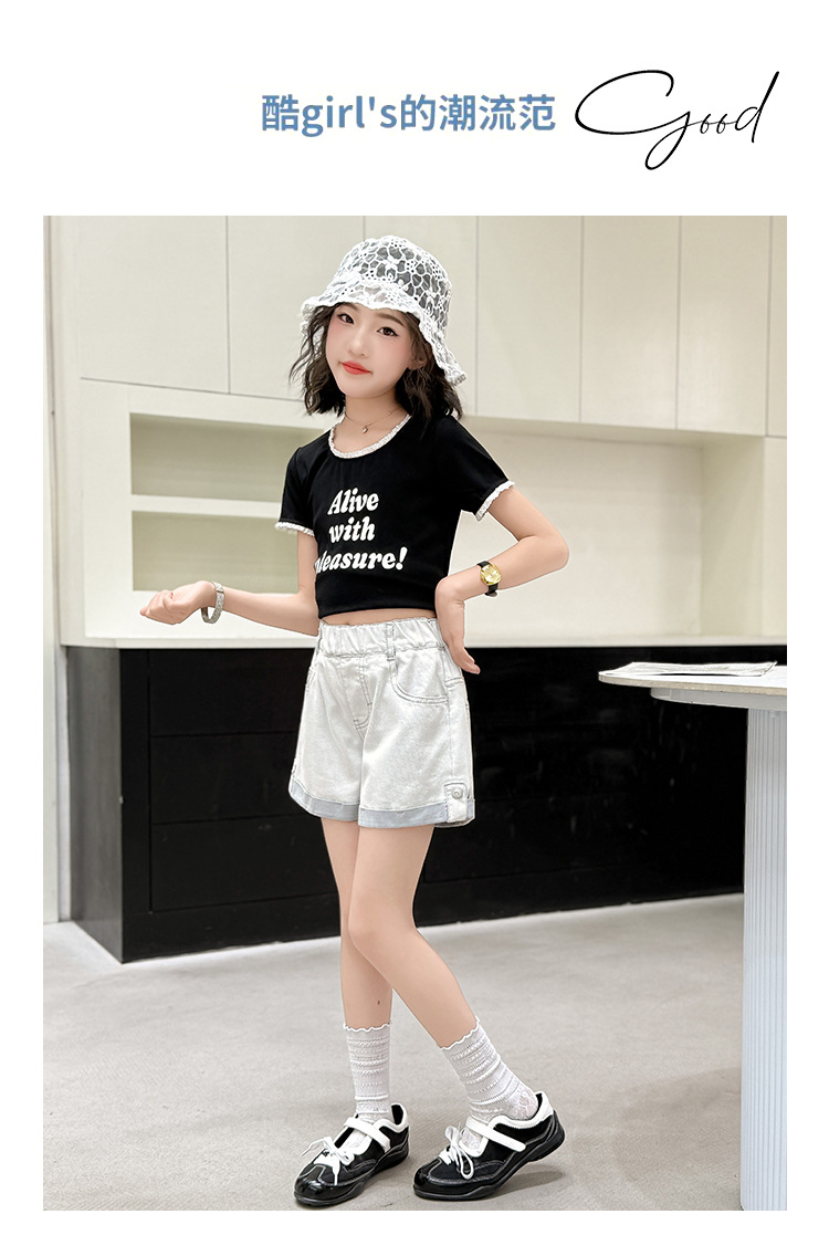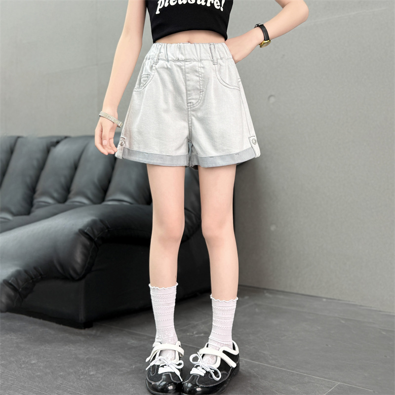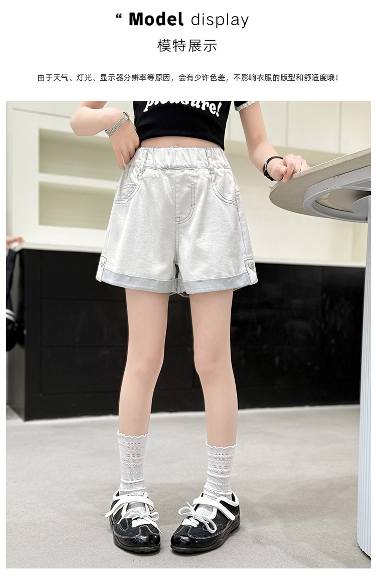 소녀 데님 반바지 2025 여름 새로운 도착 느슨한 세련된 패셔너블 캐주얼 바지 어린이 플립 오버 반바지 트렌디스토어 가기