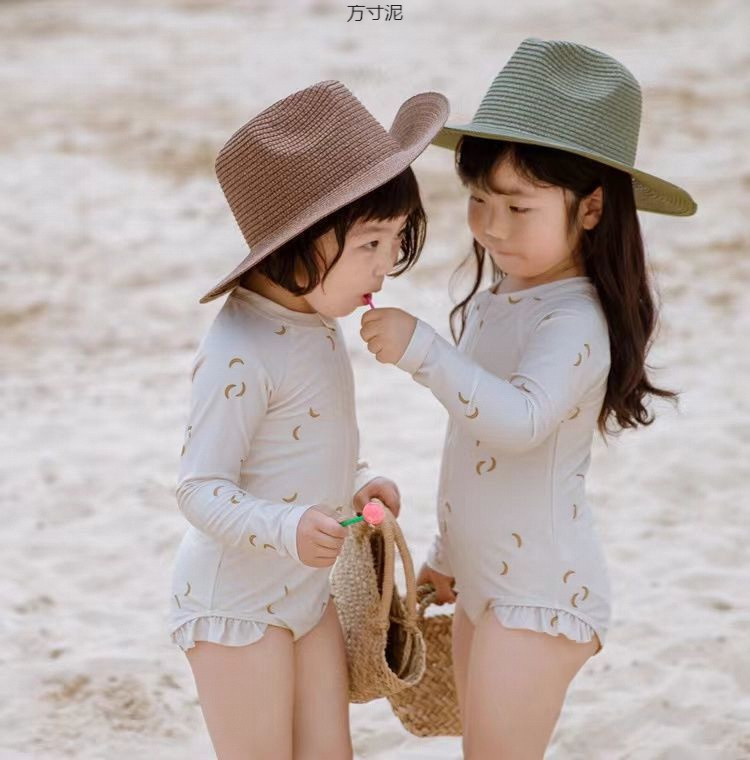 여자 여름 원피스 긴팔 수영복 신속 건조 아기 해변 태양 보호 의류 소녀 수영 산산조각 레이스 귀여운 수영복스토어 가기