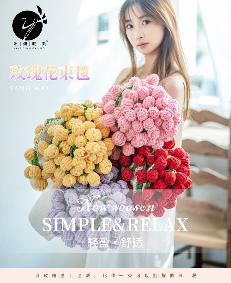 [손으로 짠 완제품] 장미 꽃다발 담요 여자 친구 발렌타인 데이 선물 꽃 목도리 도매 국경스토어 가기