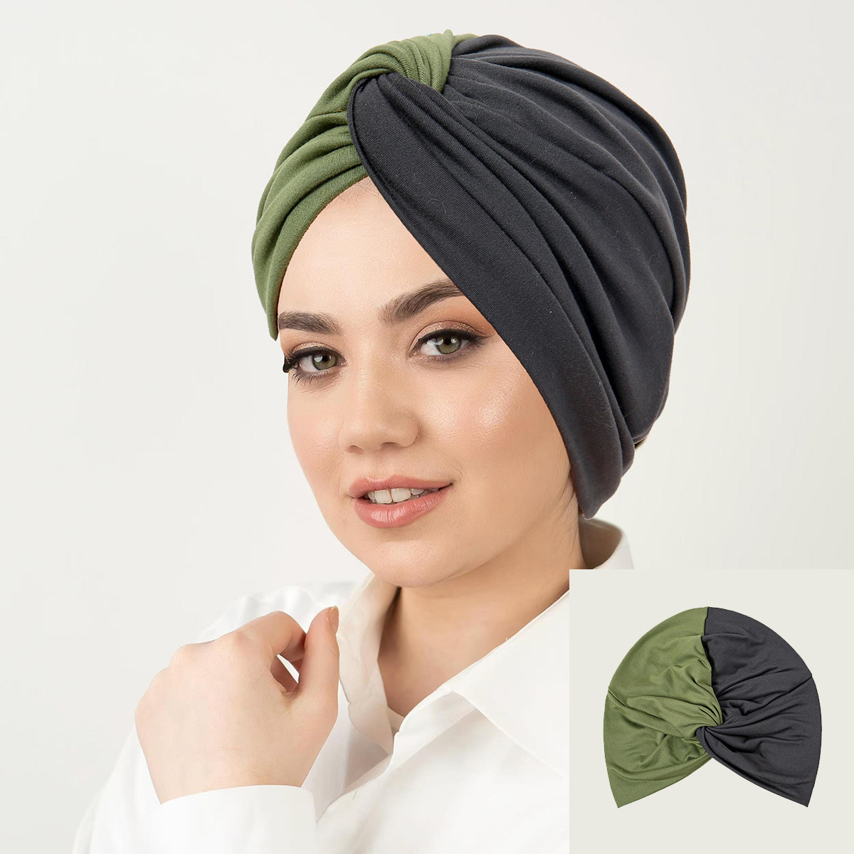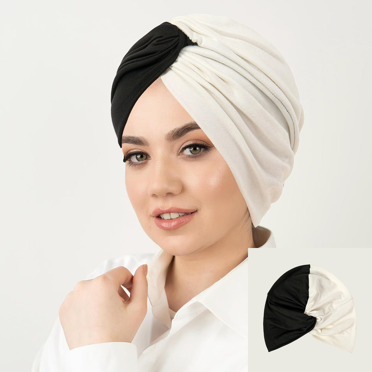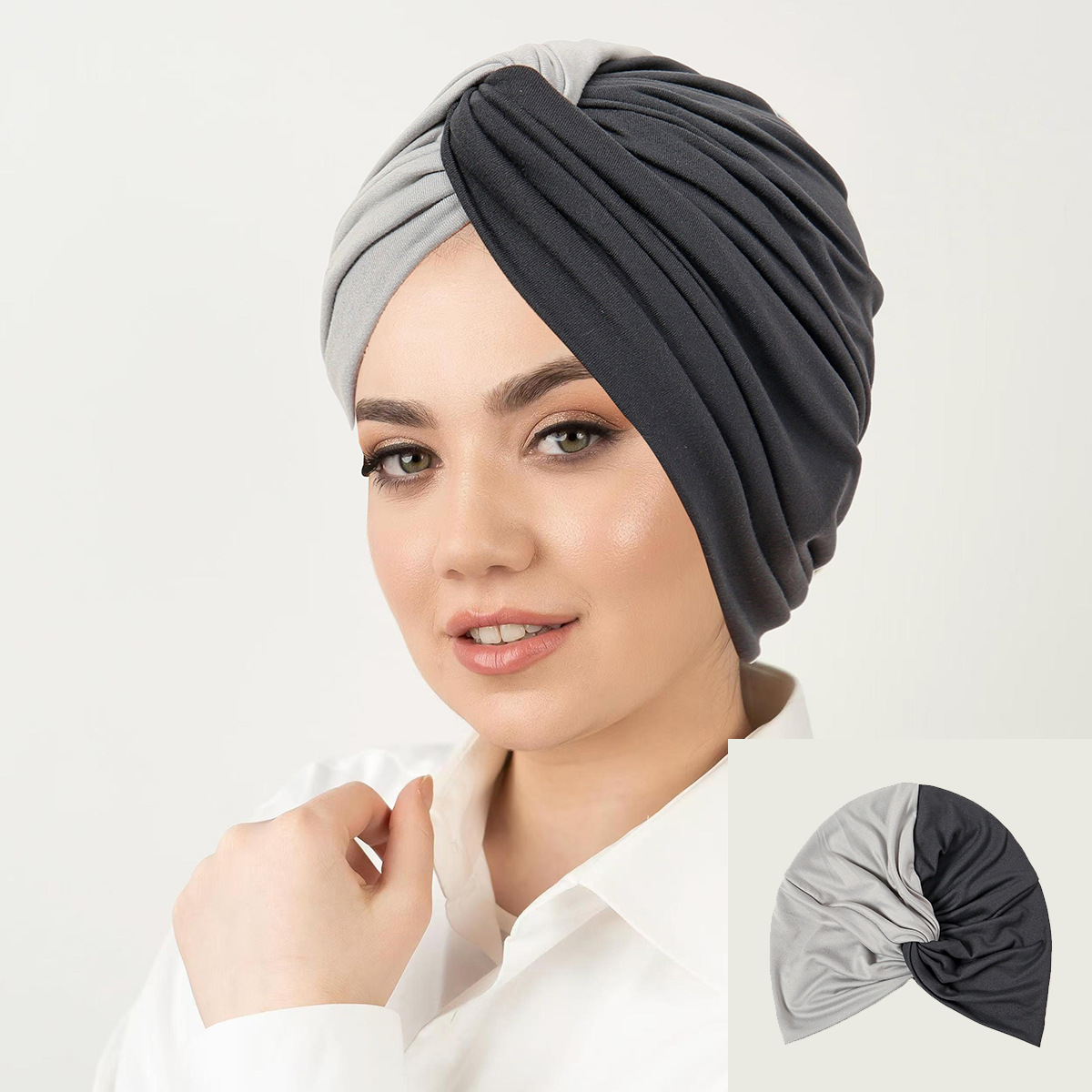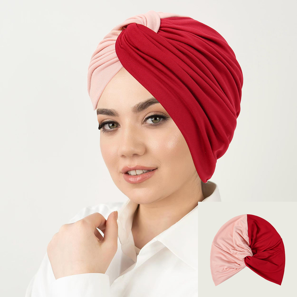 아마존 유럽과 미국의 스트레치 천 이마 크로스 2 색 스티칭베이스 인도 모자 잔디 모자 화학 요법 풀오버 모자