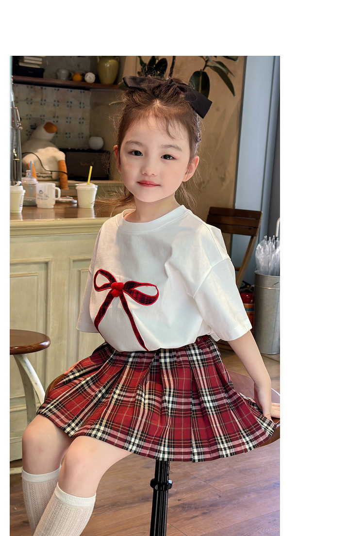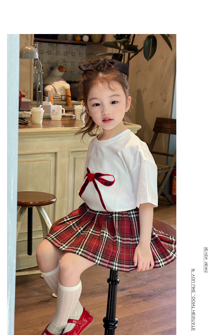 소녀 세트 여름 새로운 학술 스타일 짧은 소매 티셔츠 주름 체크 무늬 스커트 조수 어린이 머리카락 세대스토어 가기