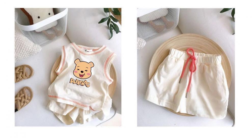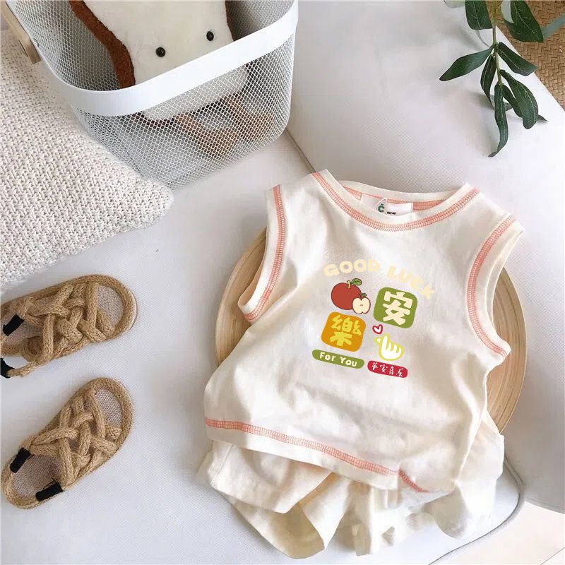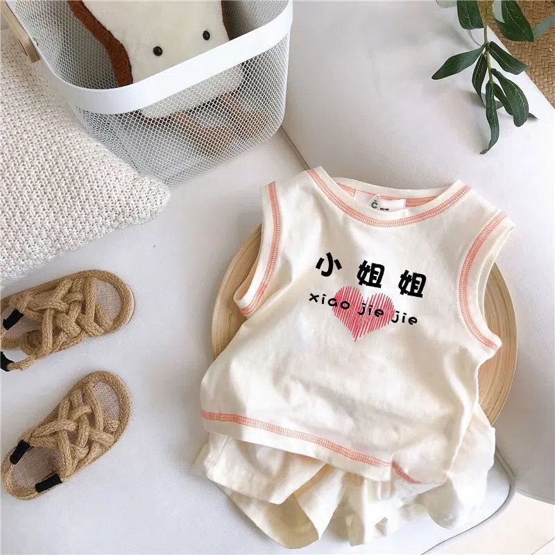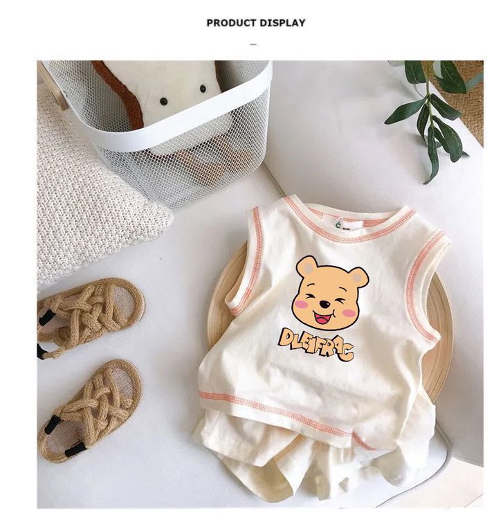 2025 여름 어린이 조끼 정장 소년과 소녀 인쇄 반팔 아동 의류 아기 잘 생긴 스포츠 투피스 세트