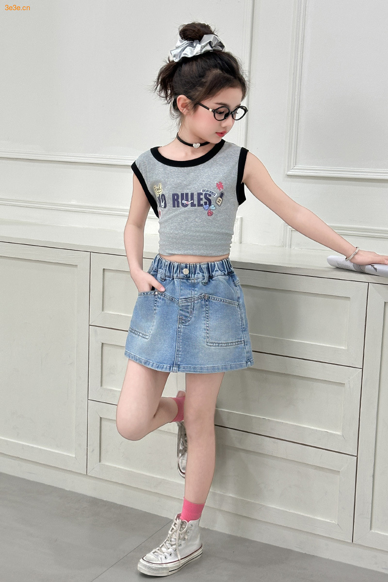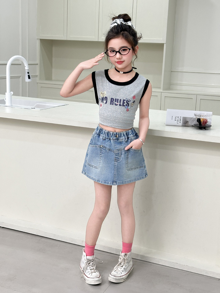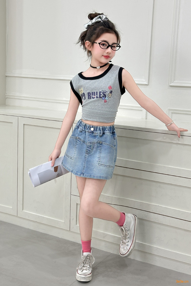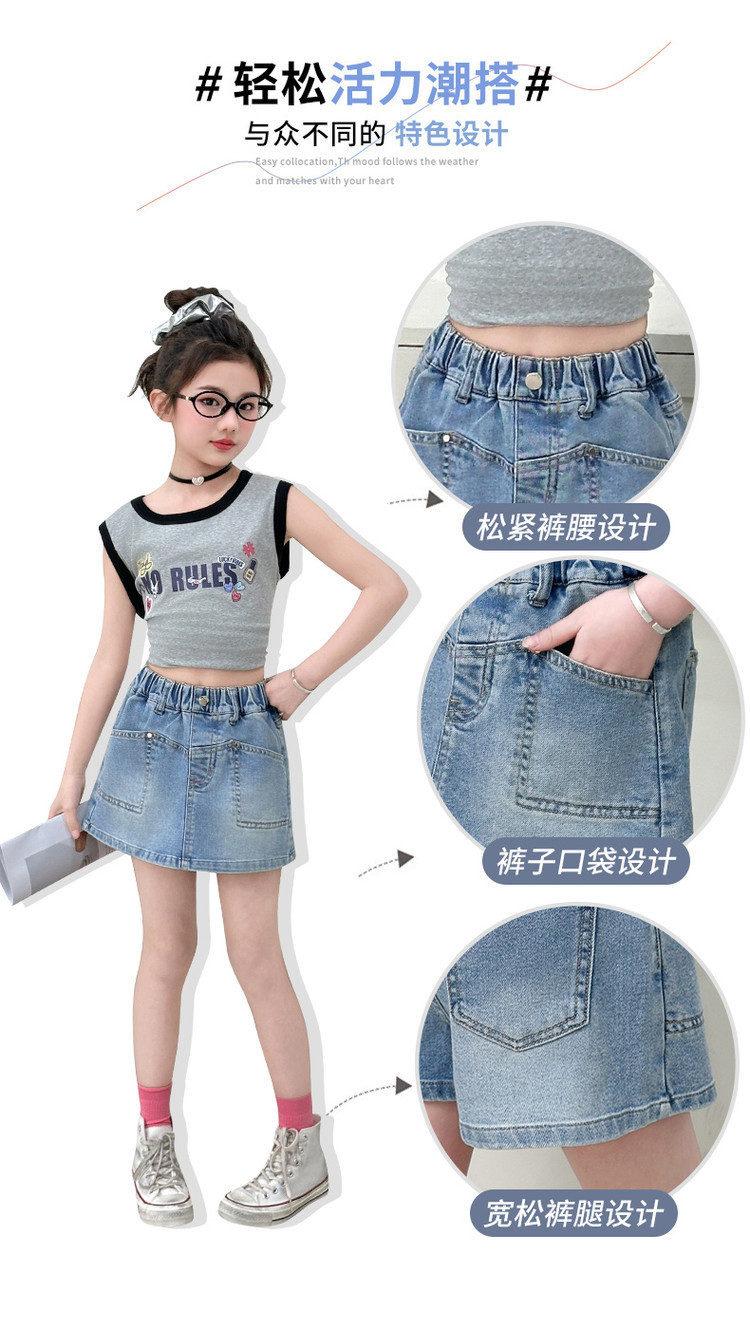 소녀 데님 반바지 여름 소녀 달콤한 멋진 한국 원피스 바지 크고 큰 어린이 유행 유행 스커트 아마존스토어 가기
