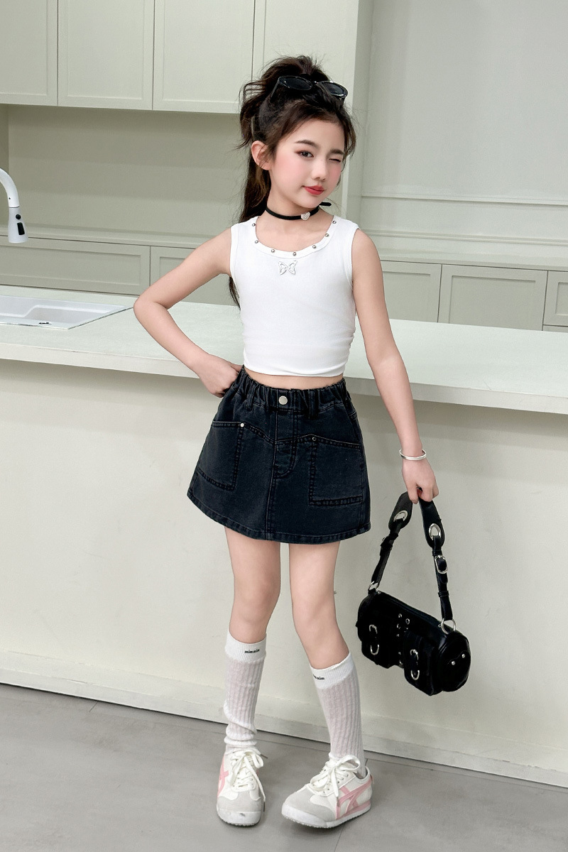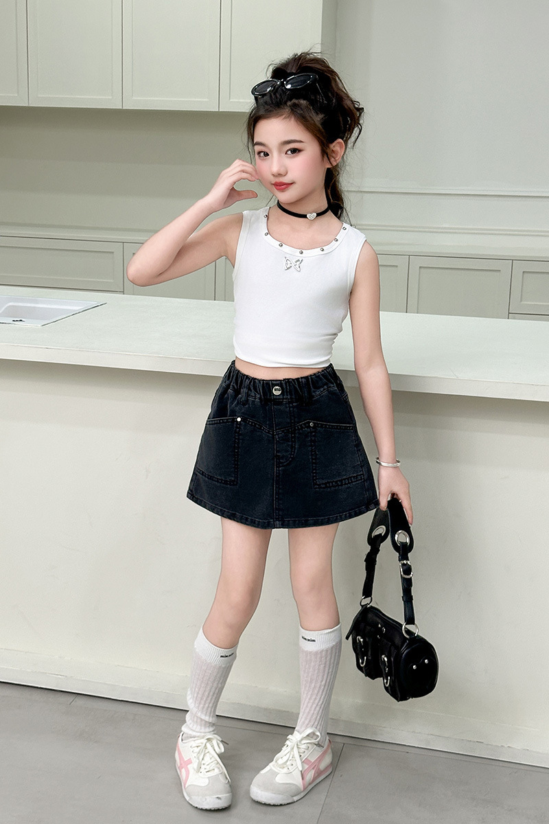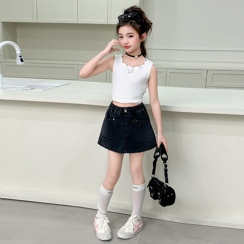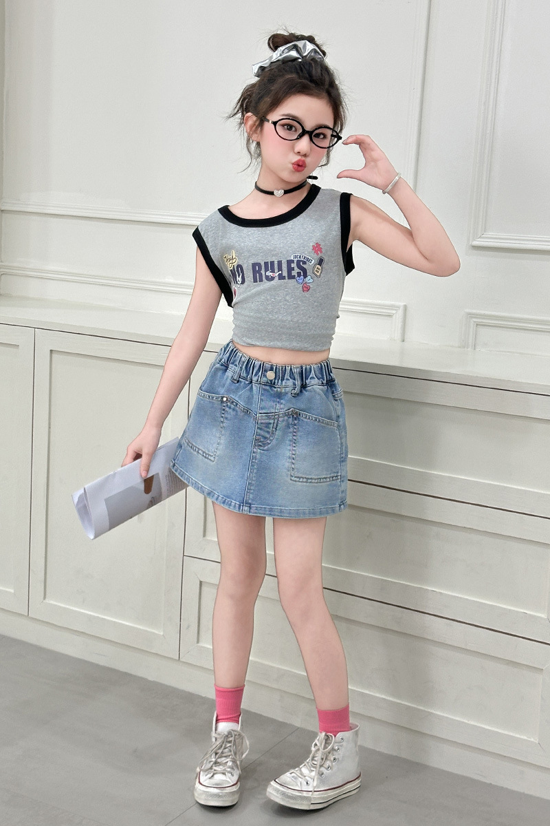 소녀 데님 반바지 여름 소녀 달콤한 멋진 한국 원피스 바지 크고 큰 어린이 유행 유행 스커트 아마존스토어 가기