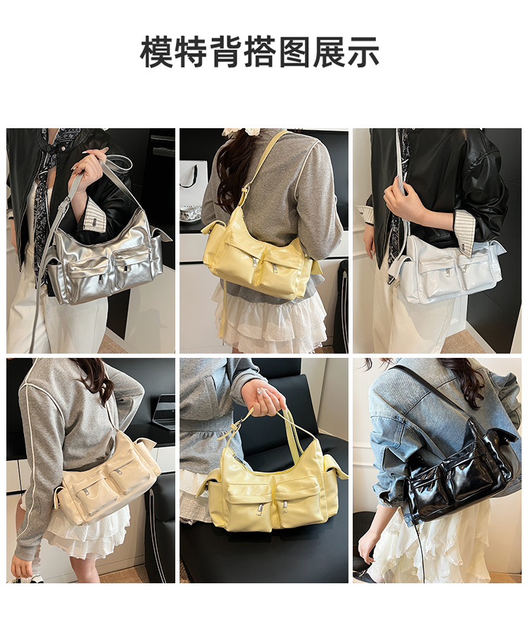국경 간 패션 겨드랑이 가방 여성의 2025 새로운 멀티 포켓 오토바이 가방 레저 통근 어깨 토트 백