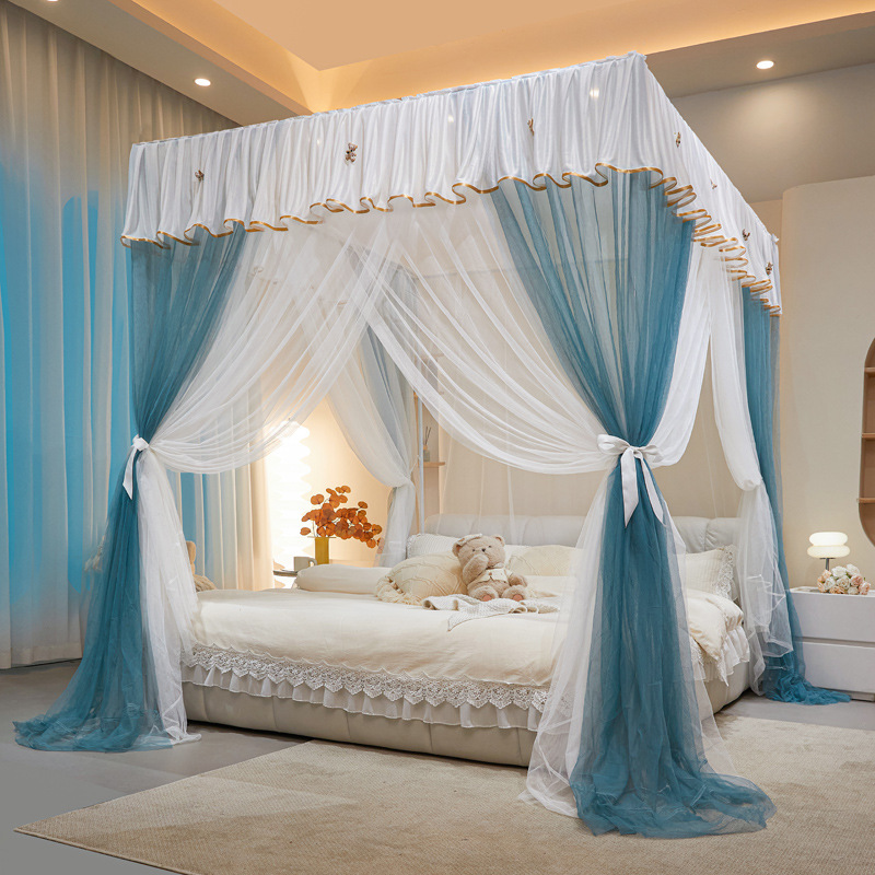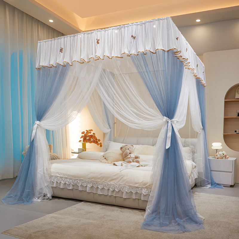 하이 엔드 바닥에서 천장까지 공주 스타일의 빛 차단 및 방진 3 도어 이층 침대 커튼 침대 커튼 모기장 홈 침실 대형 침대스토어 가기