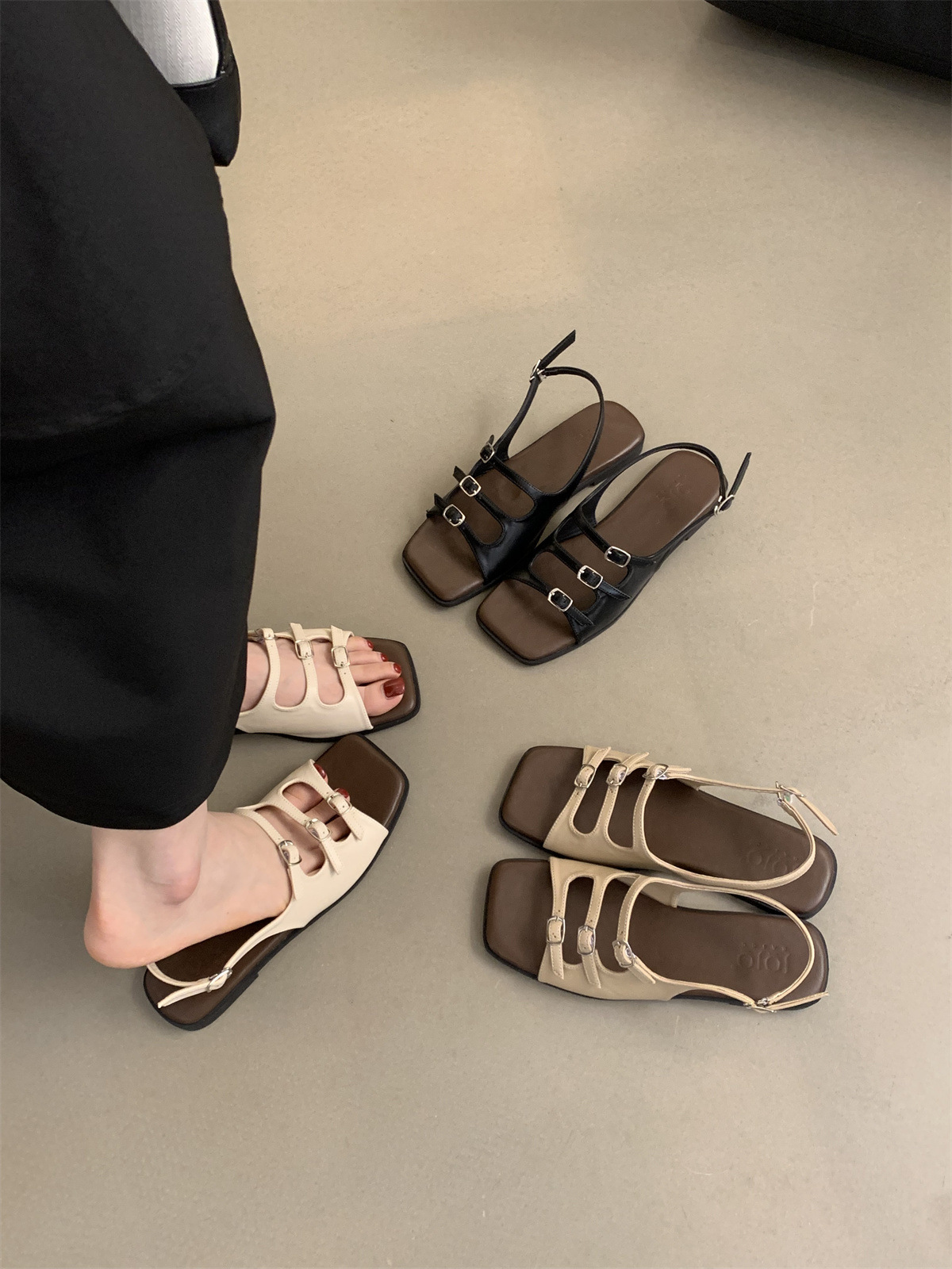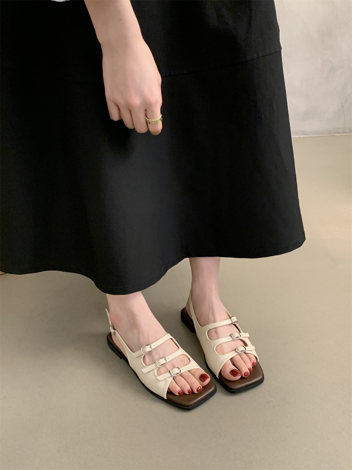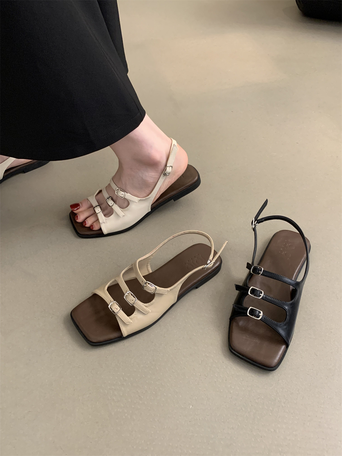 2024 봄과 가을 새로운 로마 여성 복고풍 프랑스 스타일 아름다운 요정 저녁 바람 플랫 바닥 해변 샌들스토어 가기
