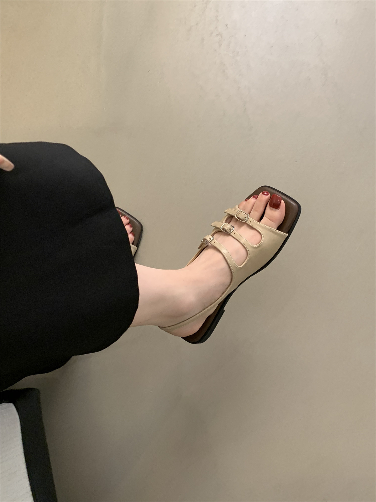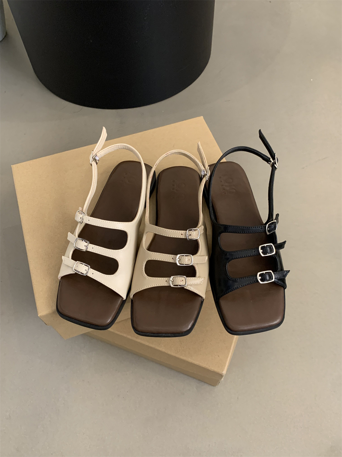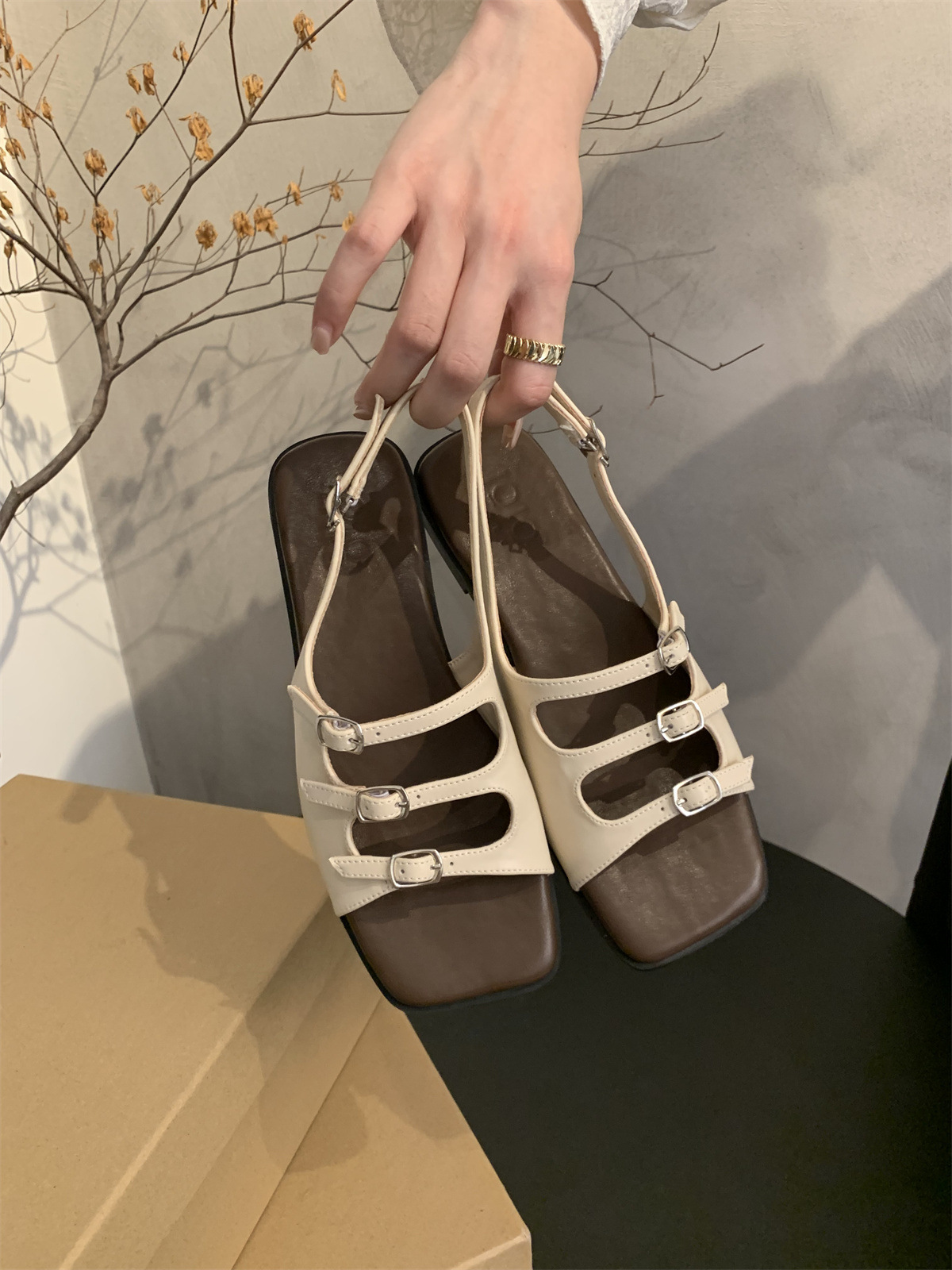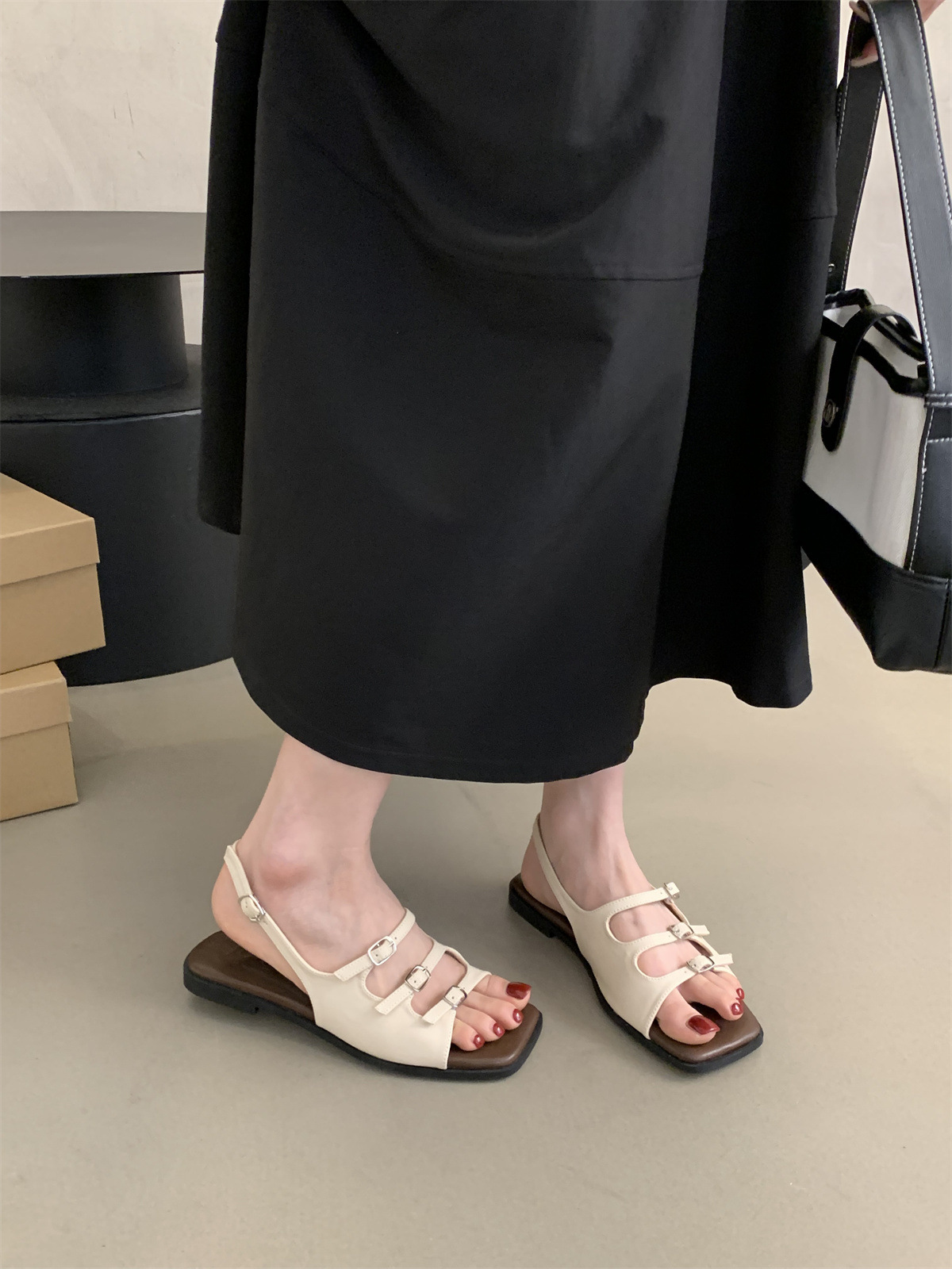 2024 봄과 가을 새로운 로마 여성 복고풍 프랑스 스타일 아름다운 요정 저녁 바람 플랫 바닥 해변 샌들스토어 가기