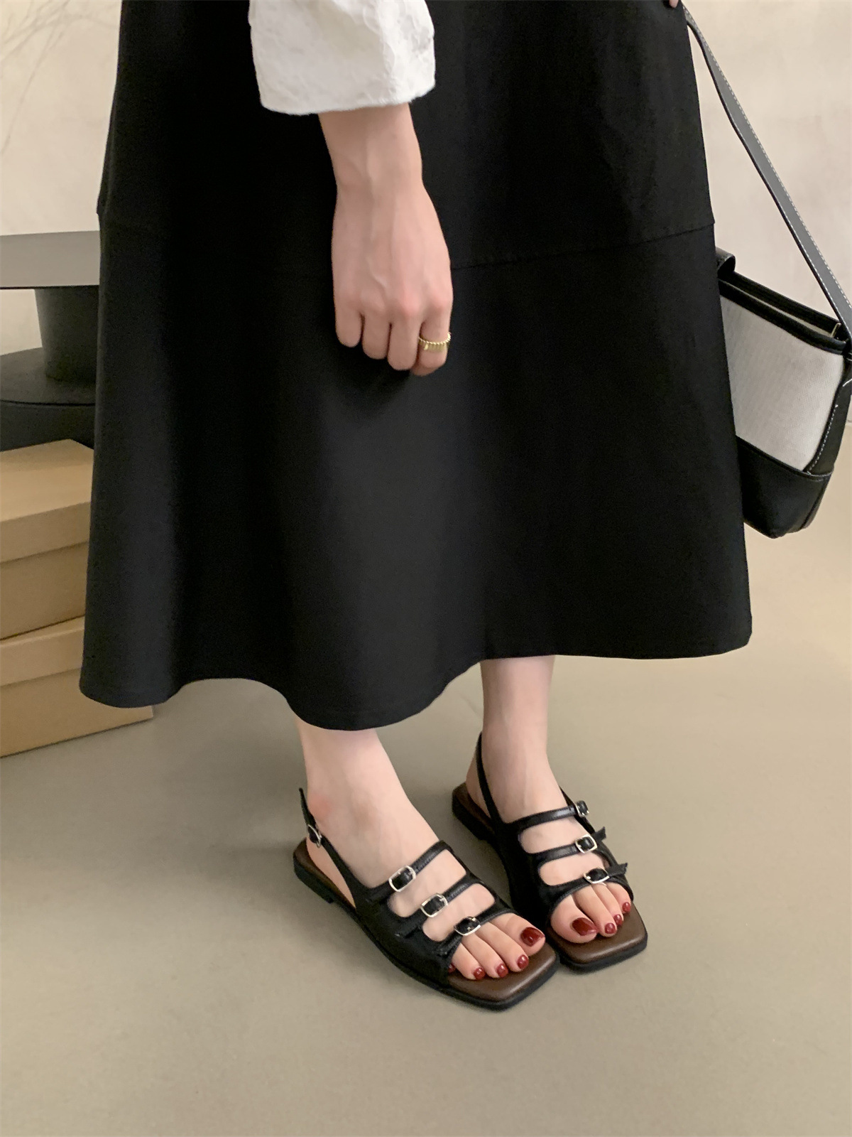 2024 봄과 가을 새로운 로마 여성 복고풍 프랑스 스타일 아름다운 요정 저녁 바람 플랫 바닥 해변 샌들