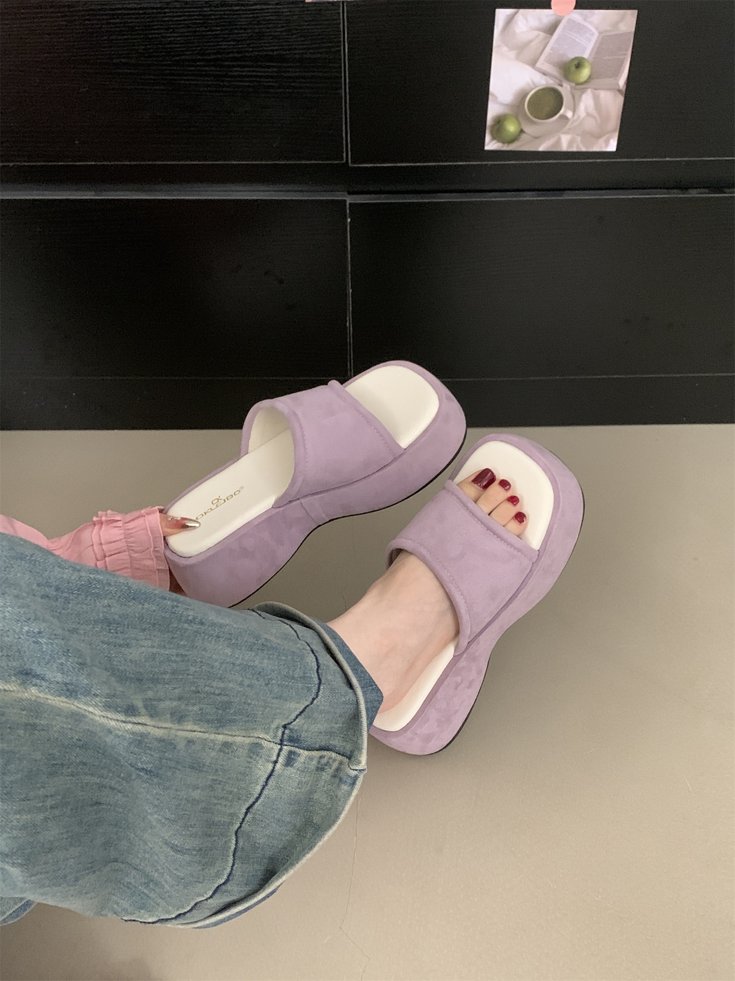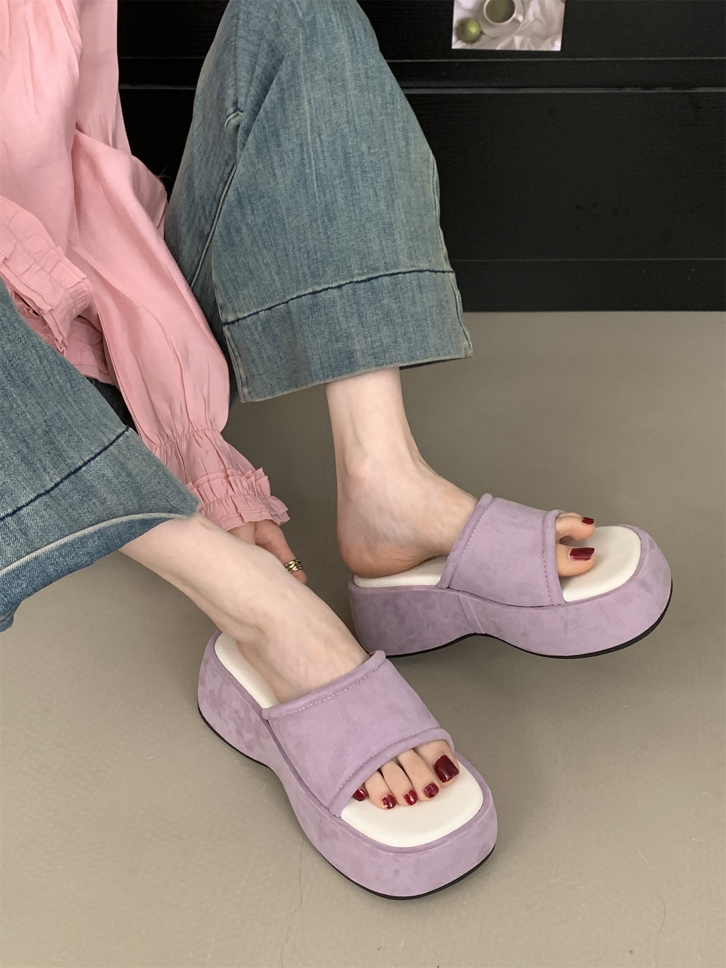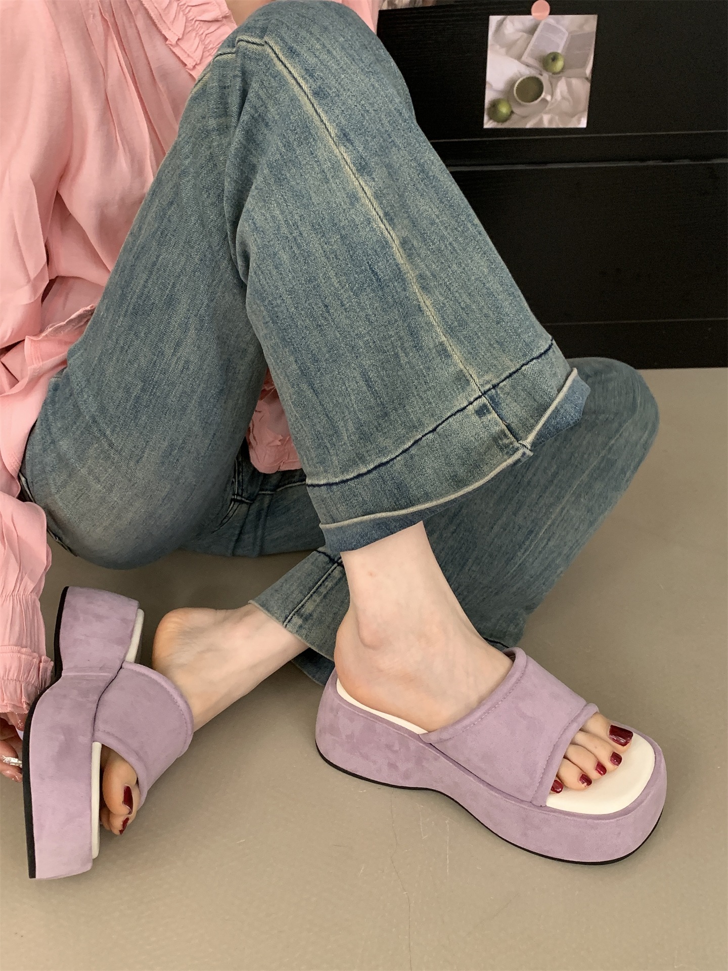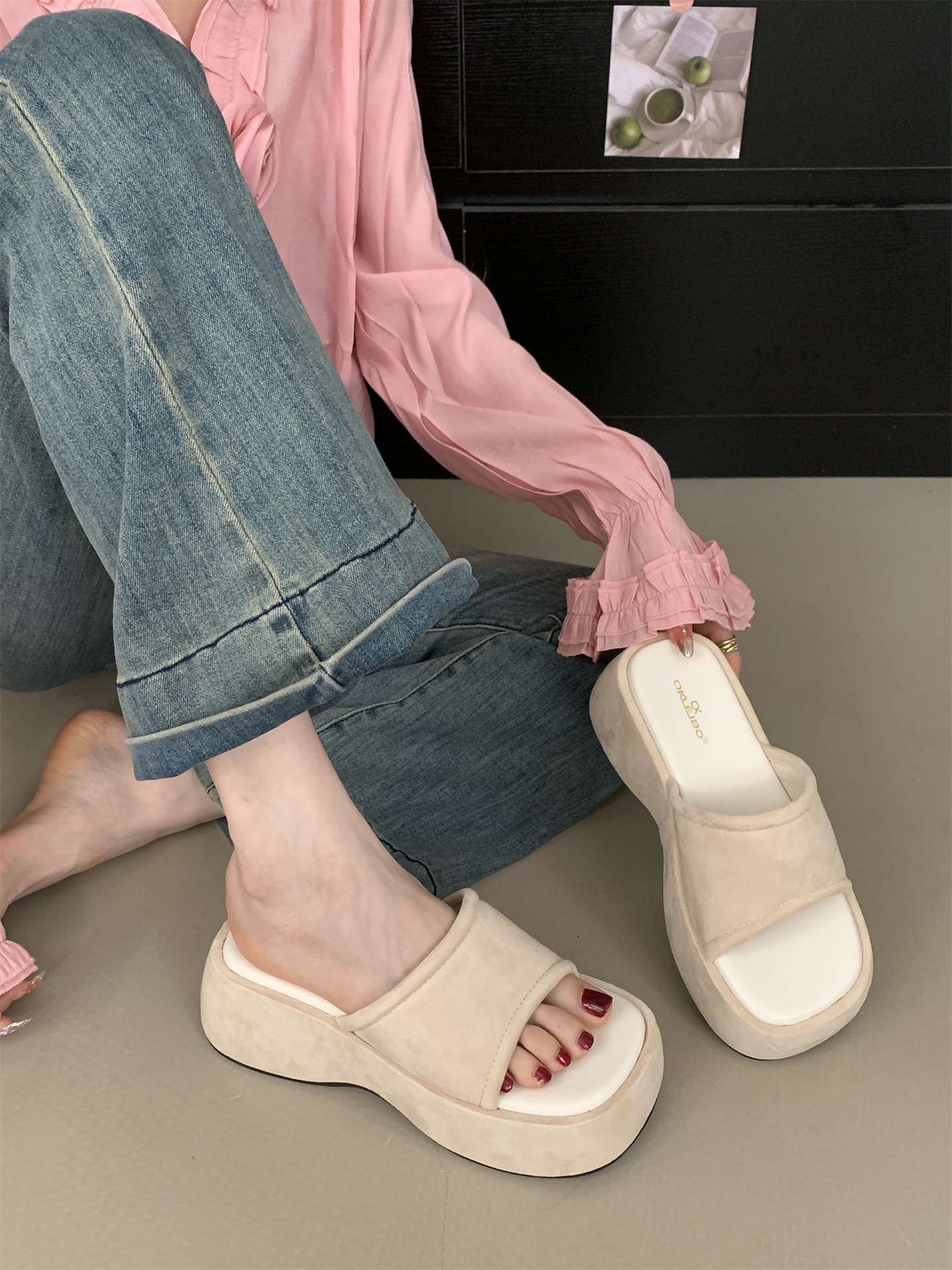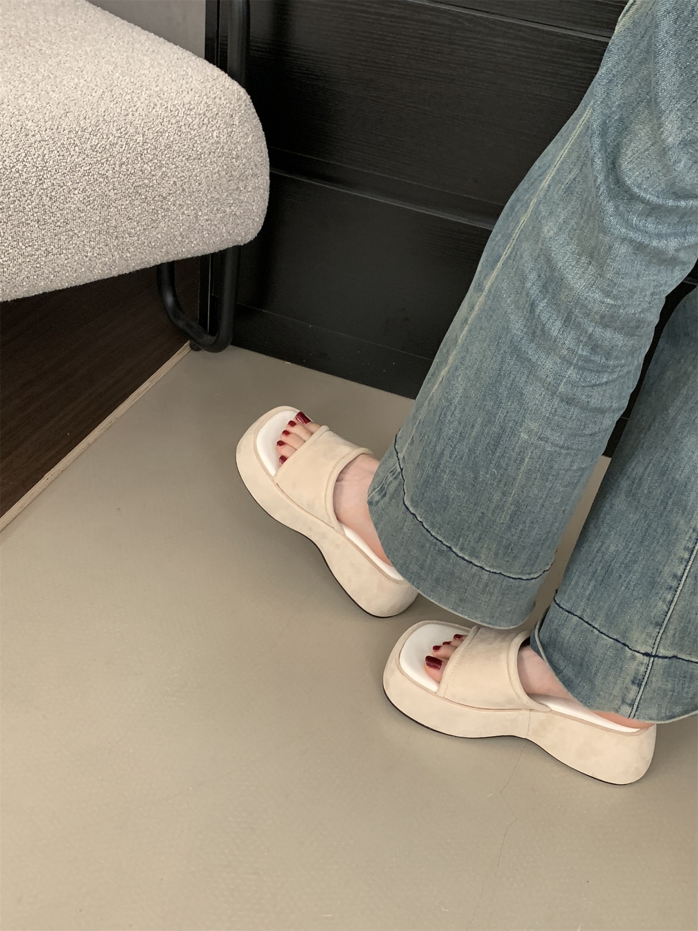 두꺼운 밑창의 플랫폼 오픈토 샌들, 외투용 페어리 슈즈, 2025 봄 여름 신상품, 키가 작은 사람들을 위한 스웨이드 슬리퍼스토어 가기