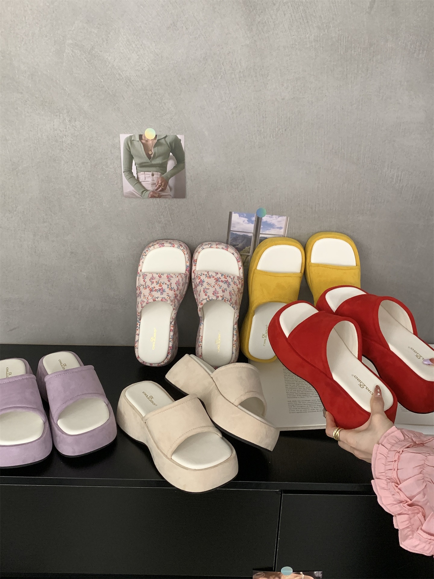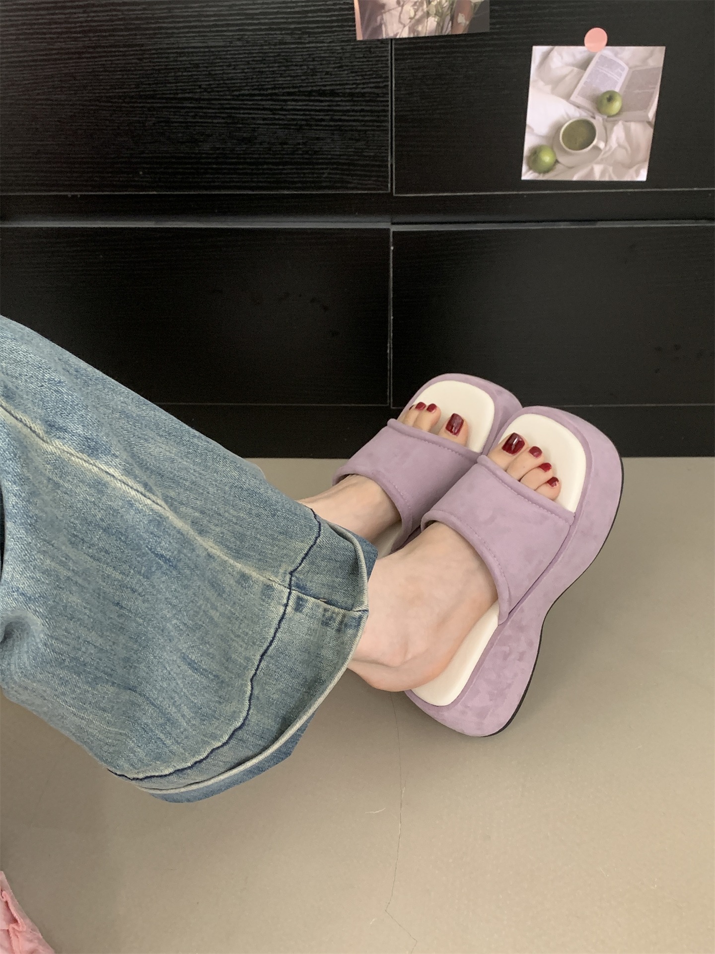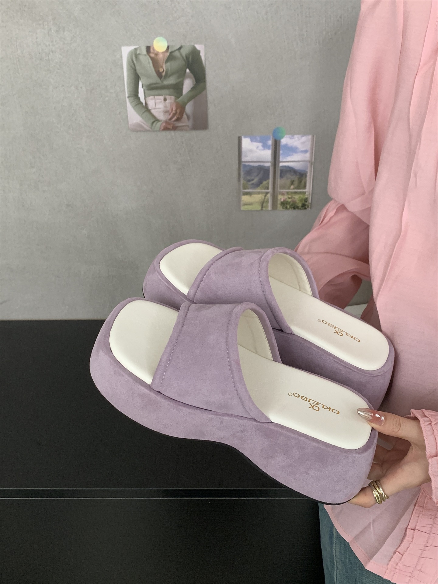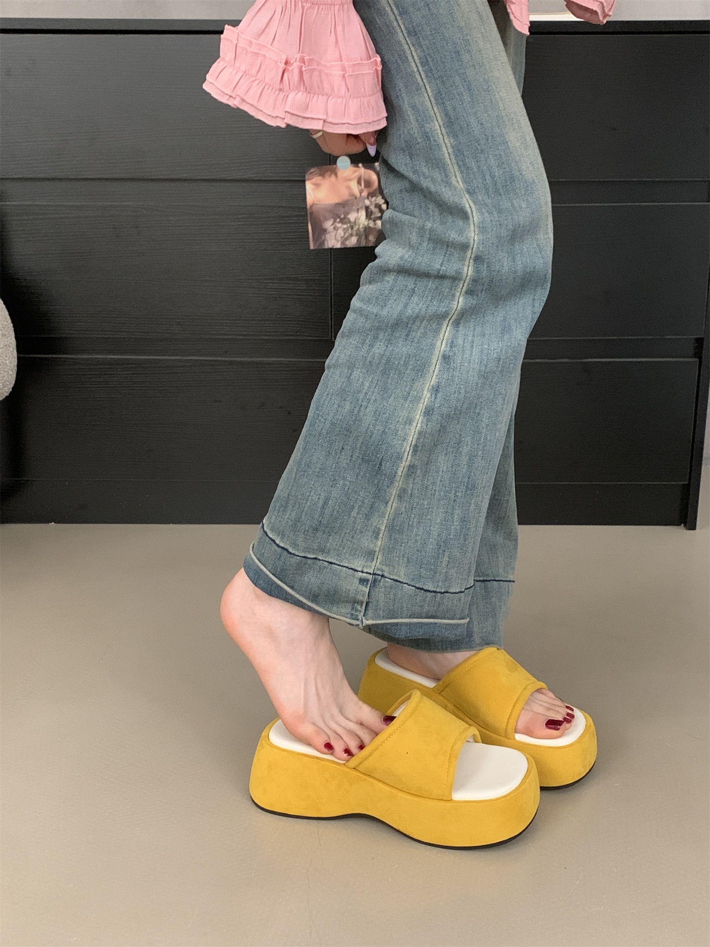 두꺼운 밑창의 플랫폼 오픈토 샌들, 외투용 페어리 슈즈, 2025 봄 여름 신상품, 키가 작은 사람들을 위한 스웨이드 슬리퍼스토어 가기