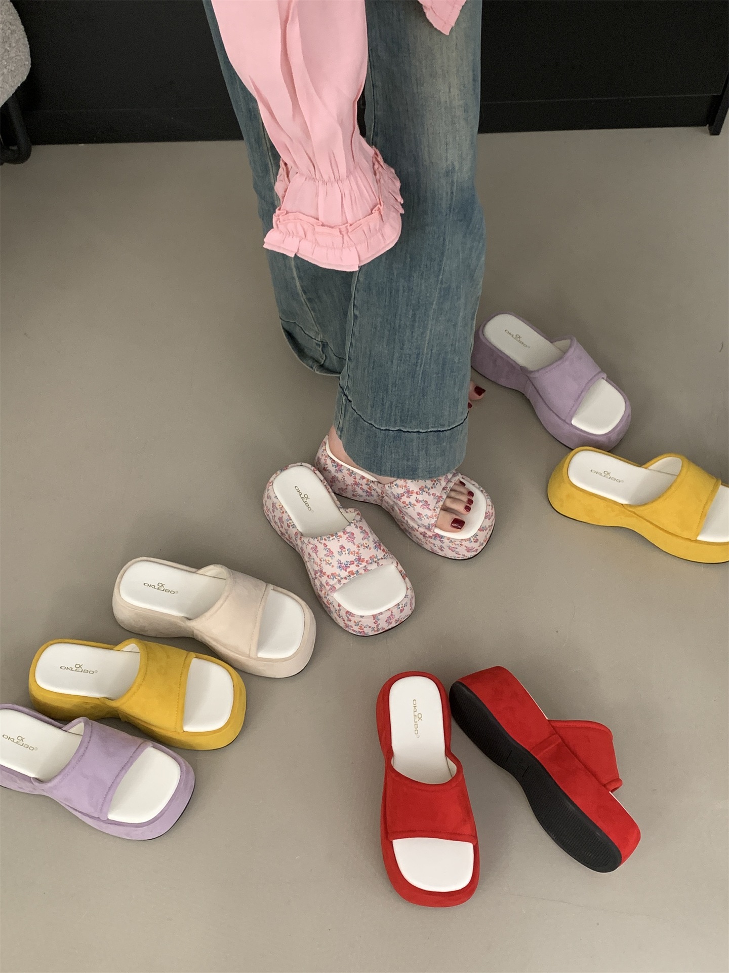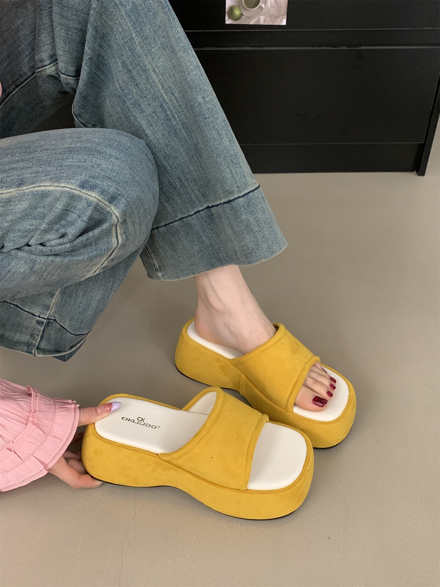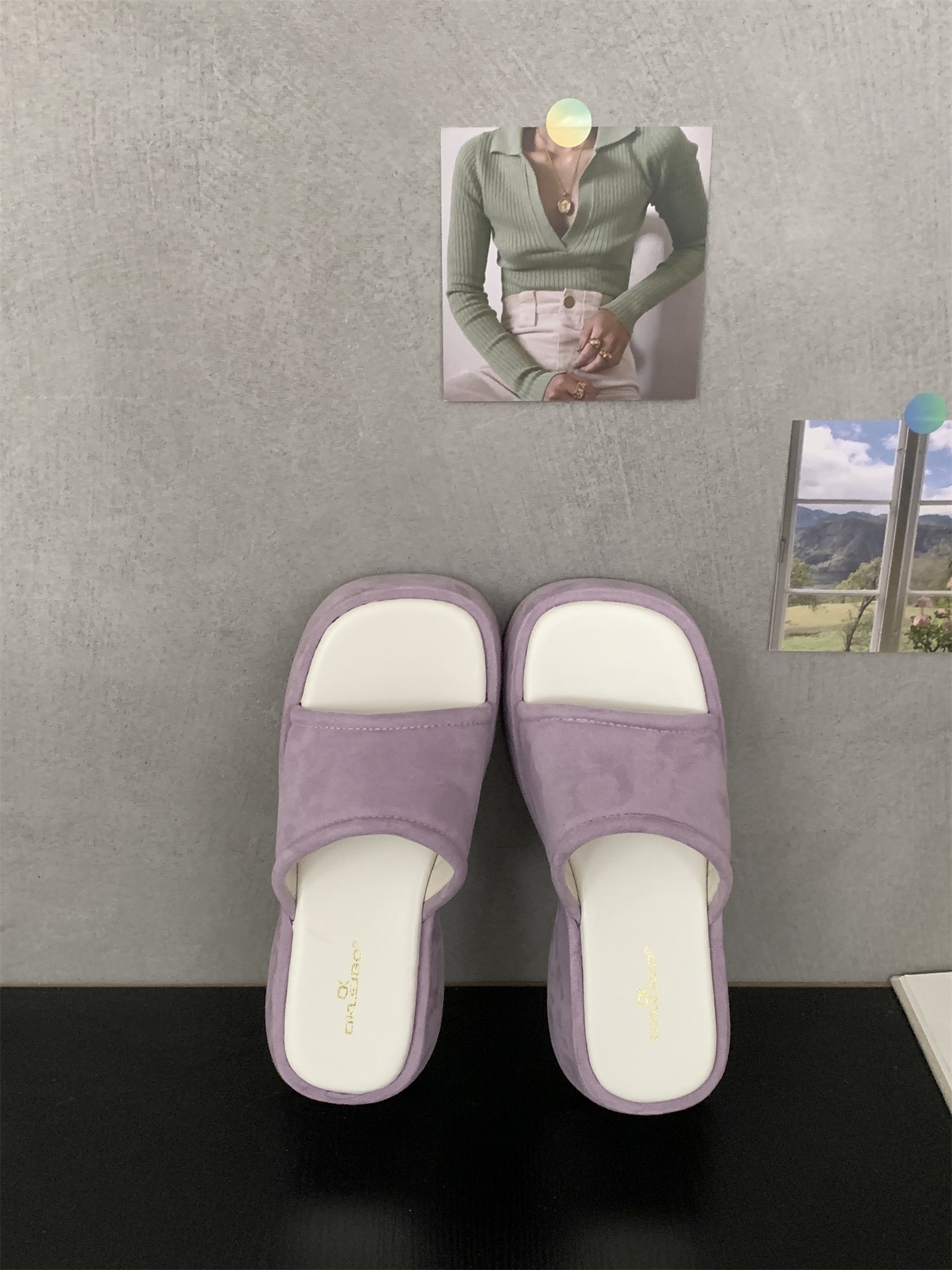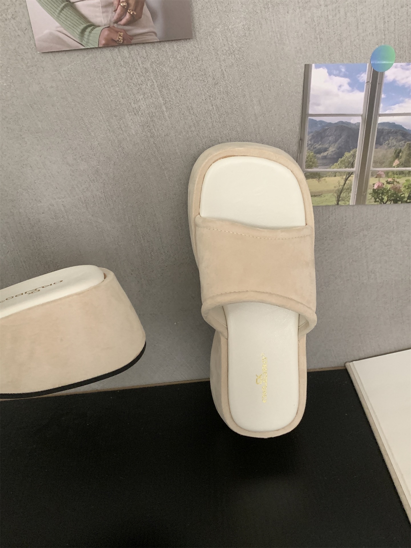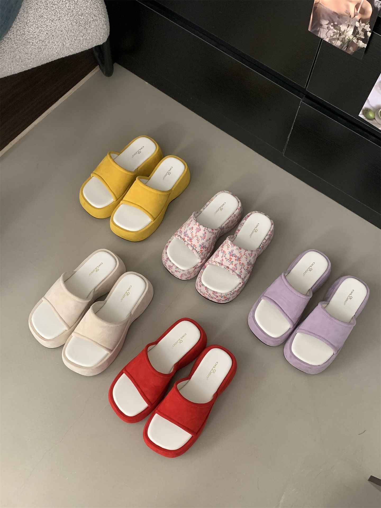 두꺼운 밑창의 플랫폼 오픈토 샌들, 외투용 페어리 슈즈, 2025 봄 여름 신상품, 키가 작은 사람들을 위한 스웨이드 슬리퍼스토어 가기