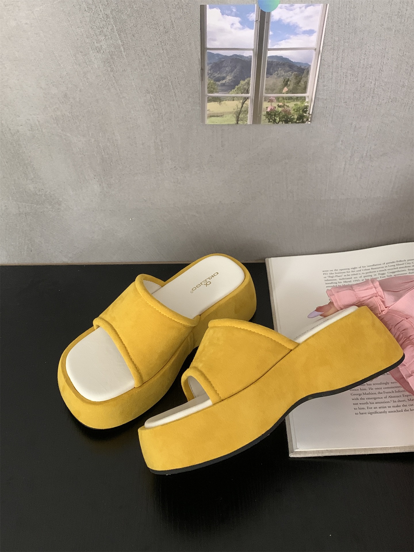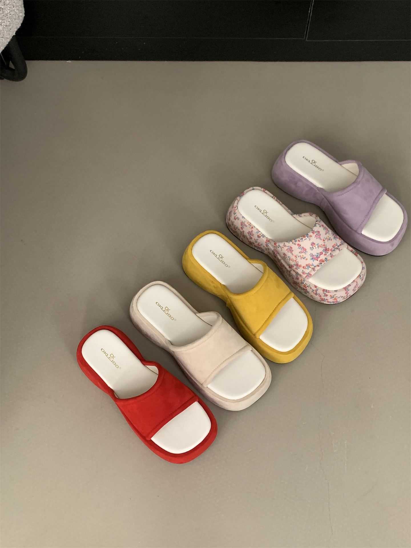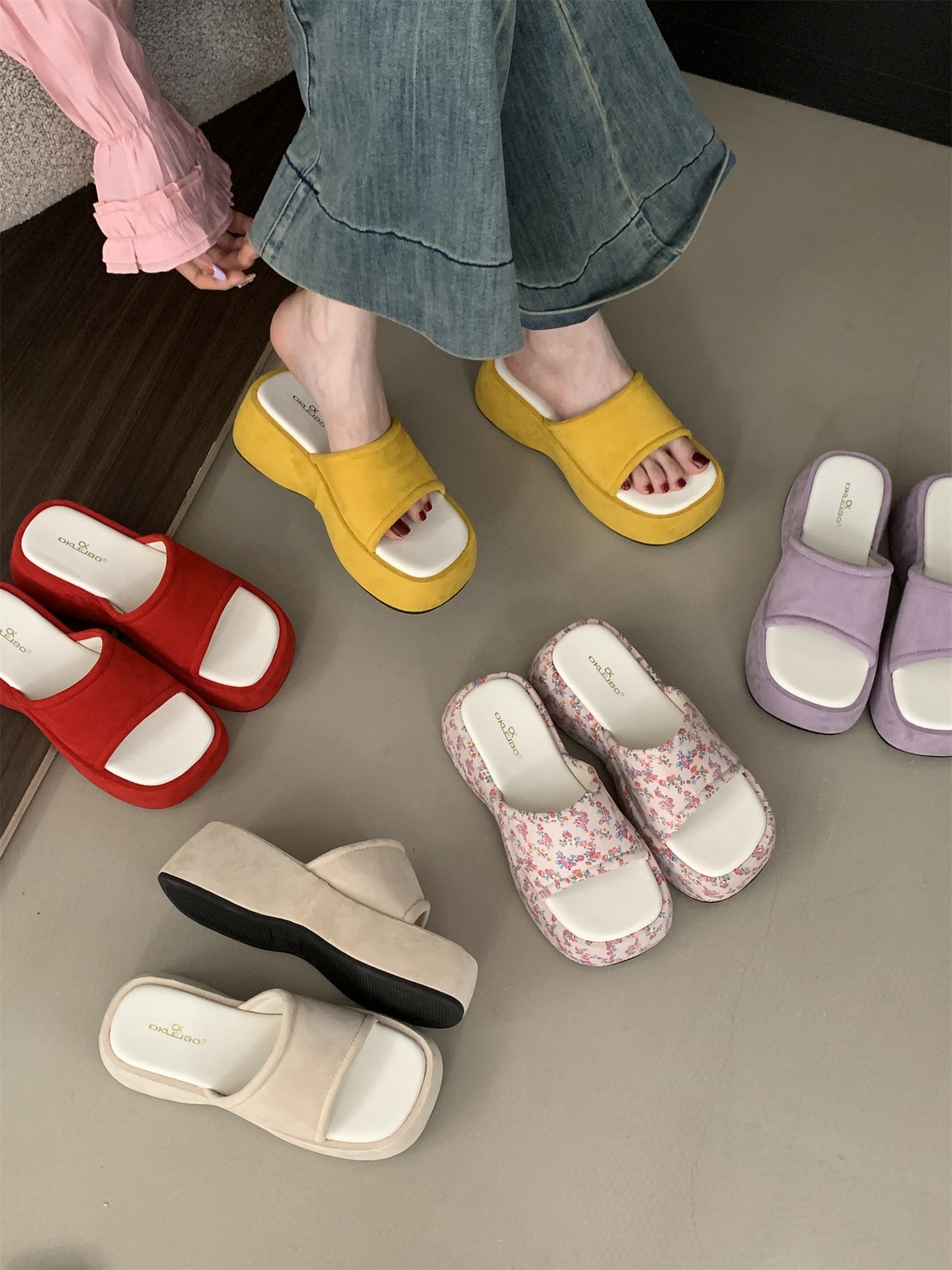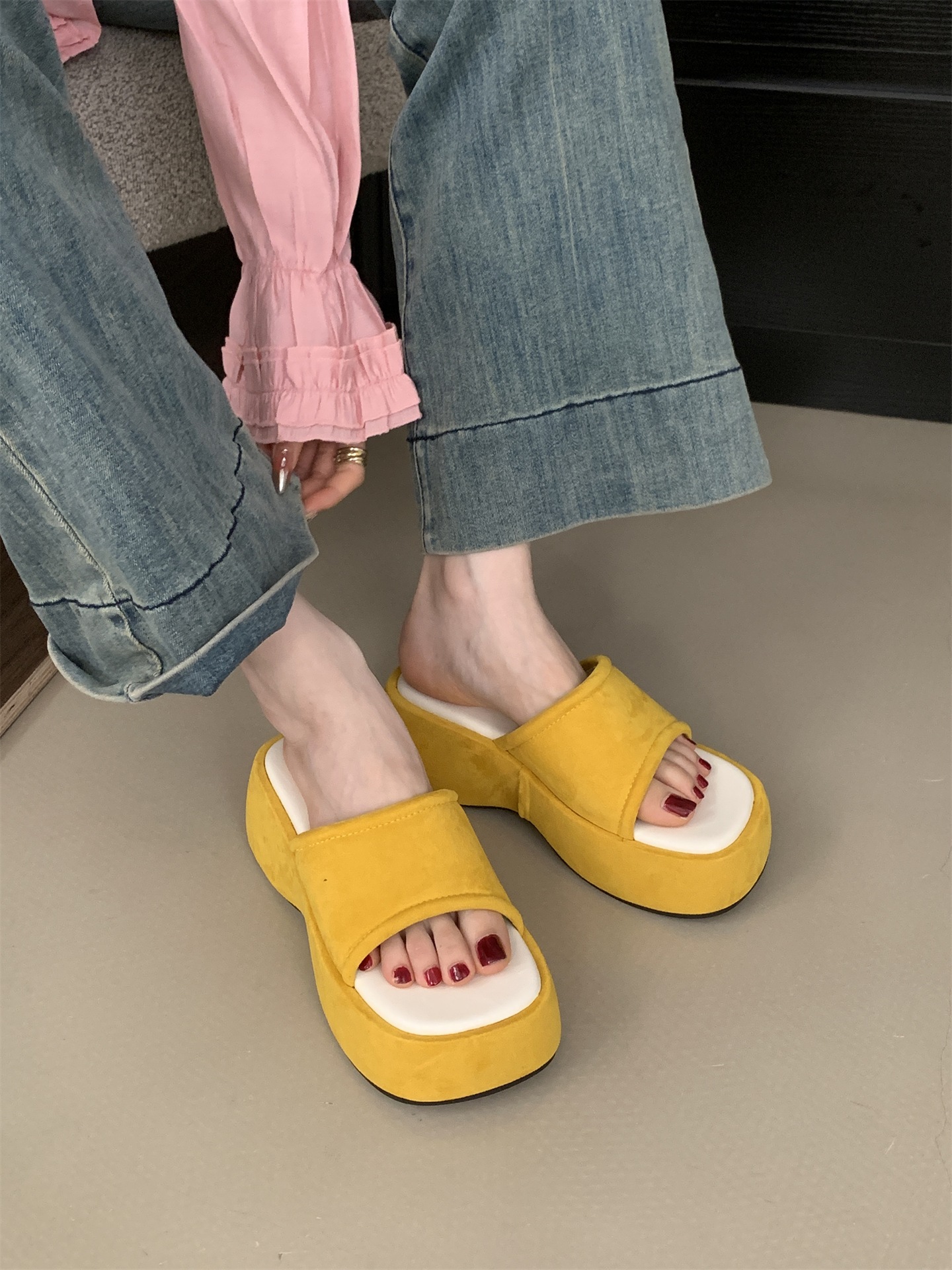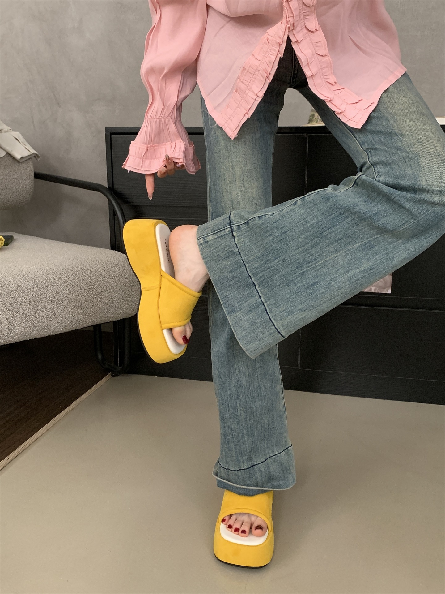 두꺼운 밑창의 플랫폼 오픈토 샌들, 외투용 페어리 슈즈, 2025 봄 여름 신상품, 키가 작은 사람들을 위한 스웨이드 슬리퍼스토어 가기