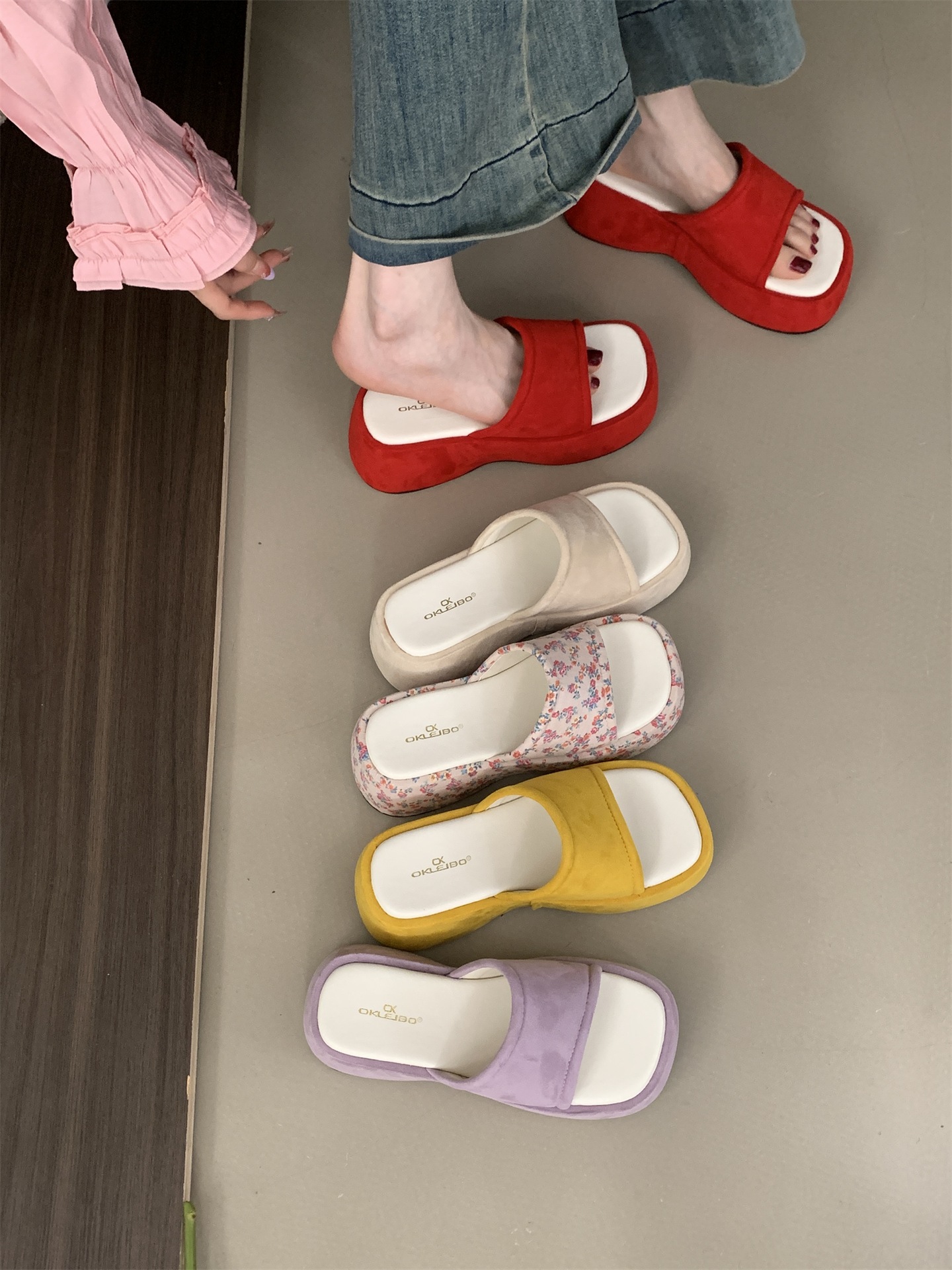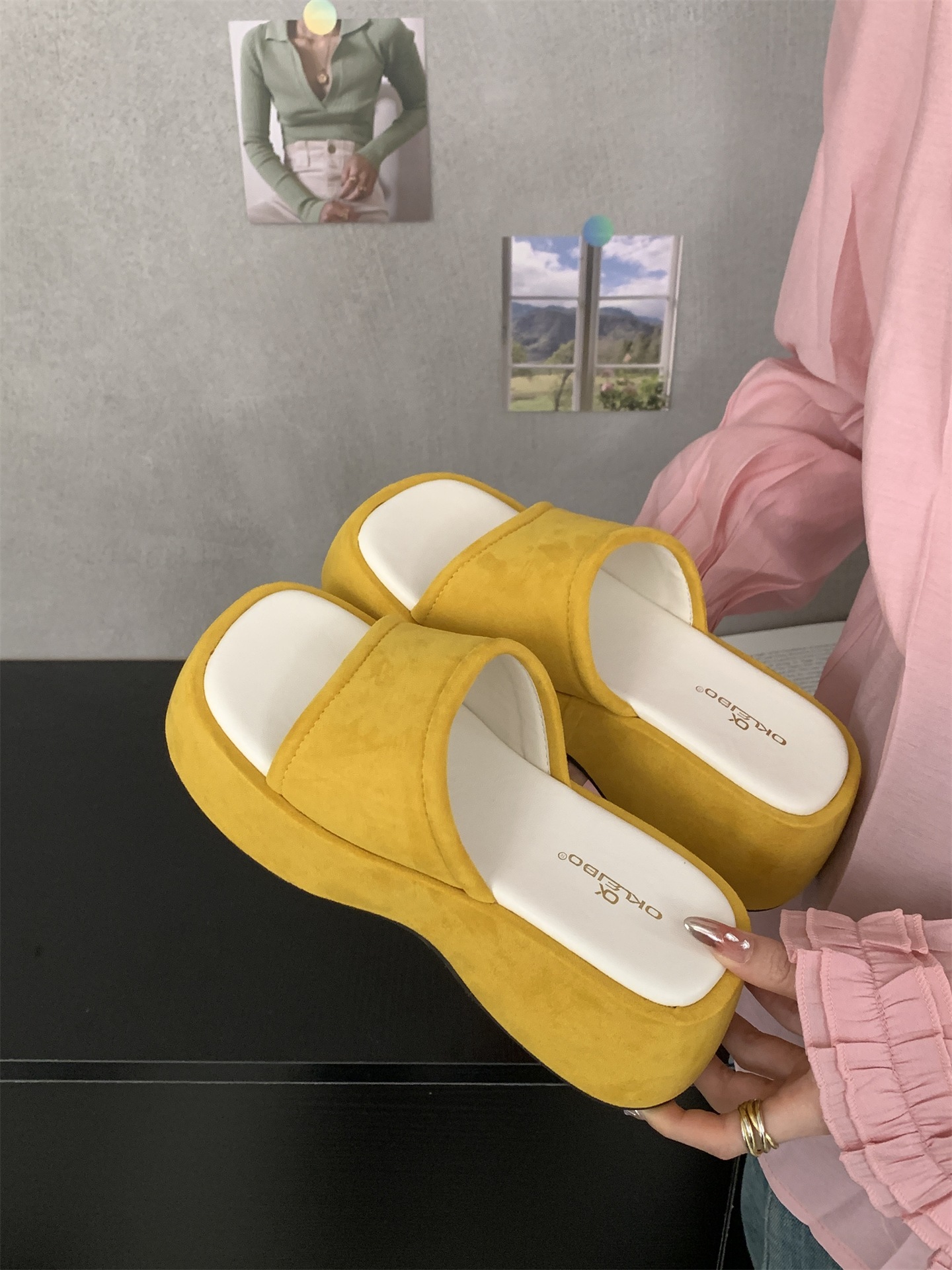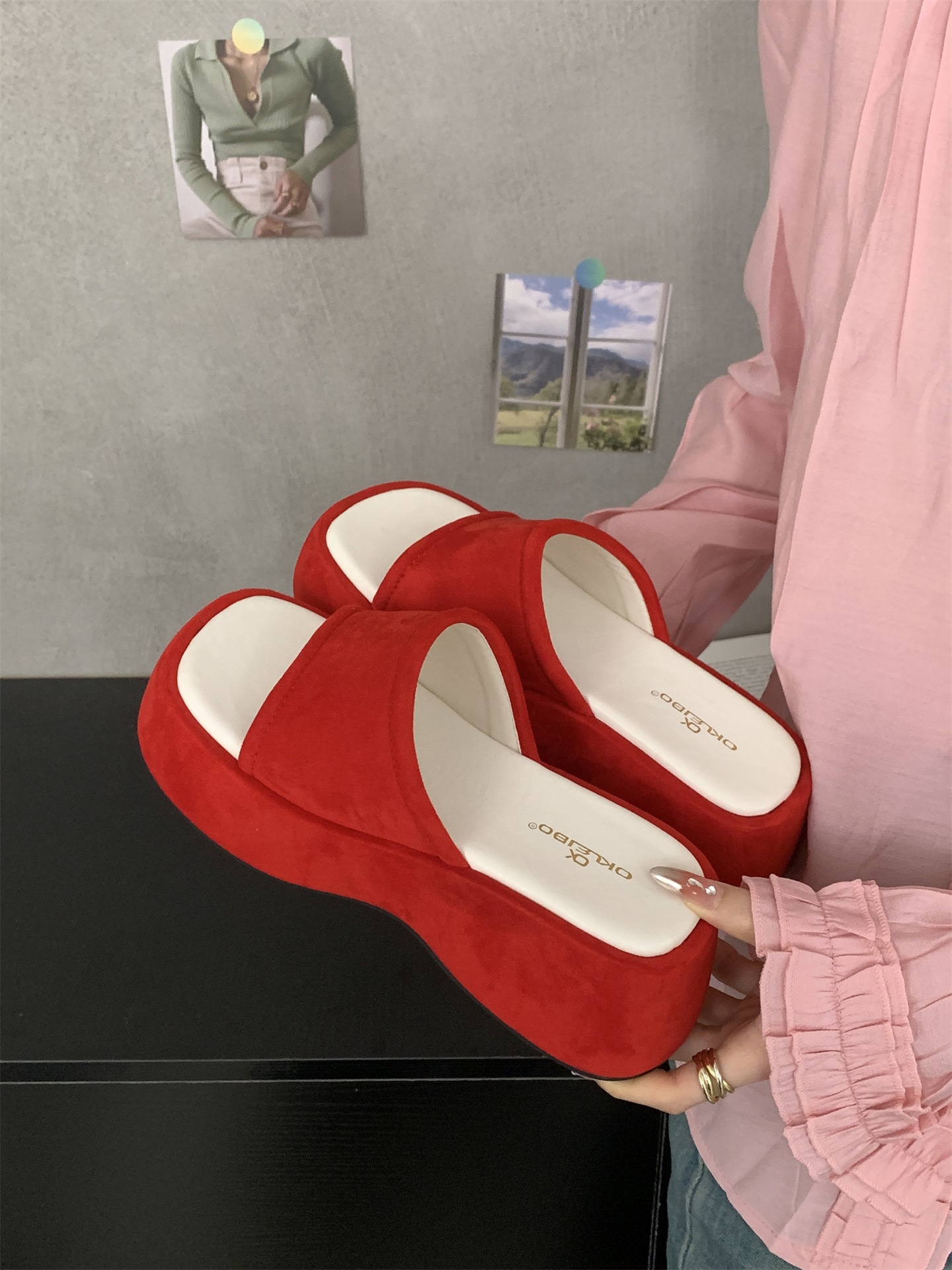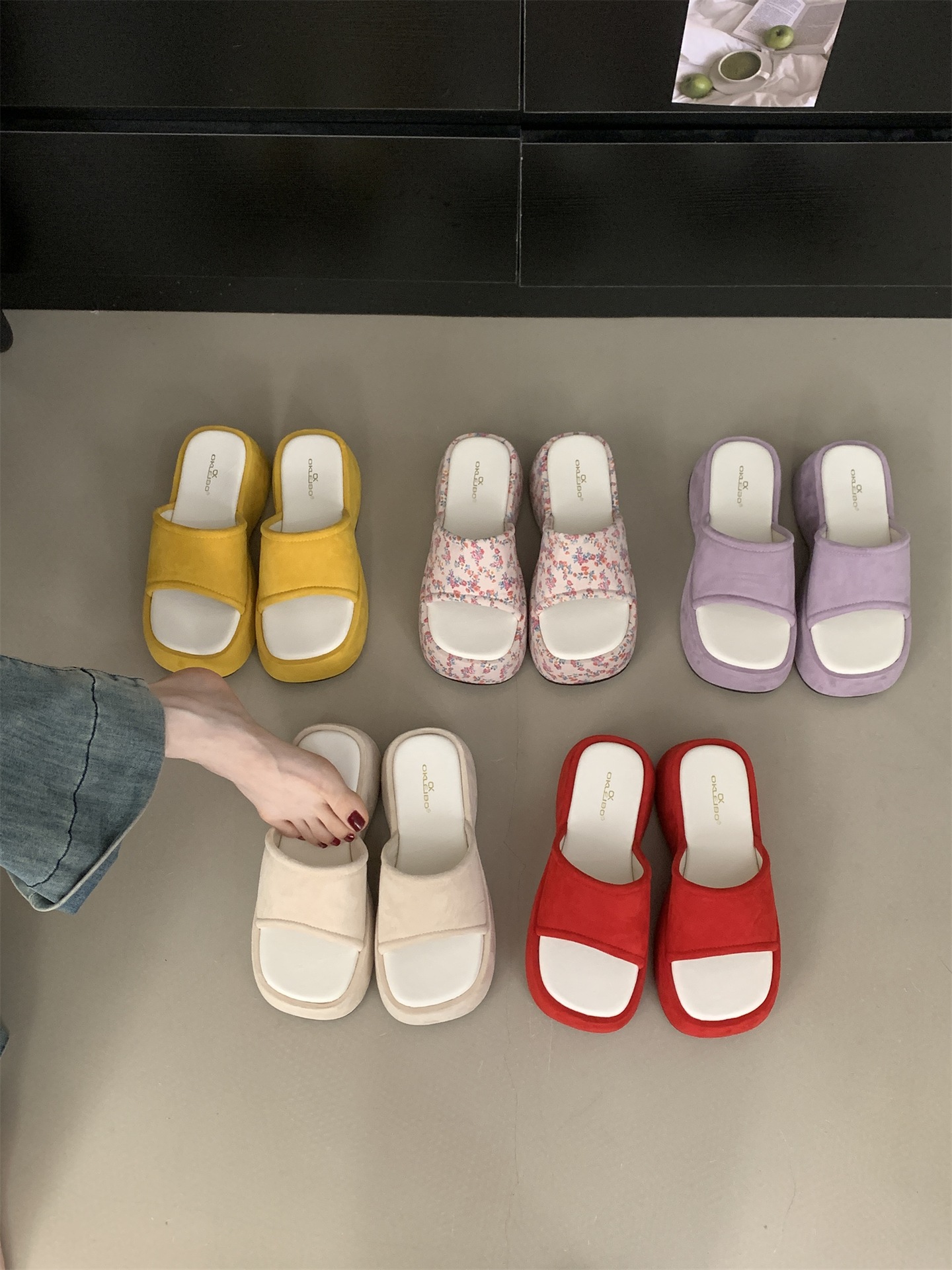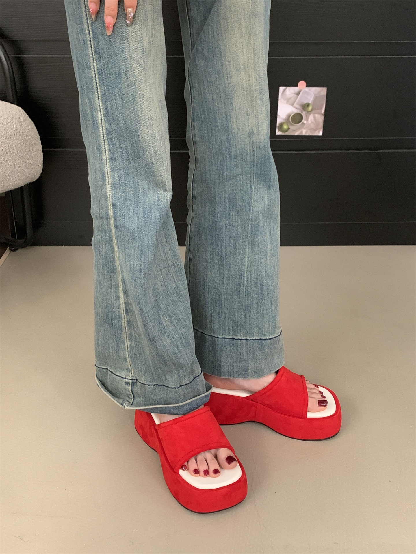 두꺼운 밑창의 플랫폼 오픈토 샌들, 외투용 페어리 슈즈, 2025 봄 여름 신상품, 키가 작은 사람들을 위한 스웨이드 슬리퍼스토어 가기