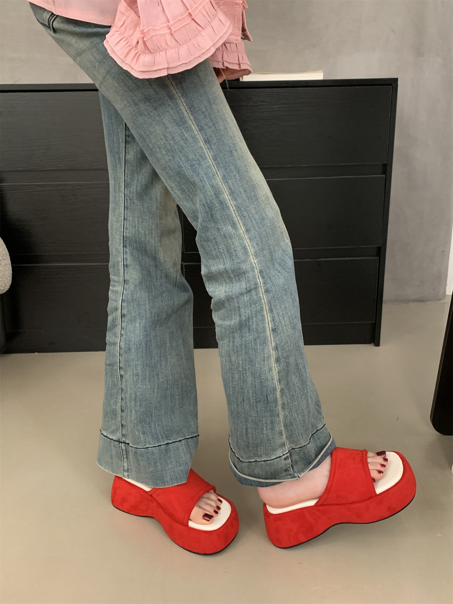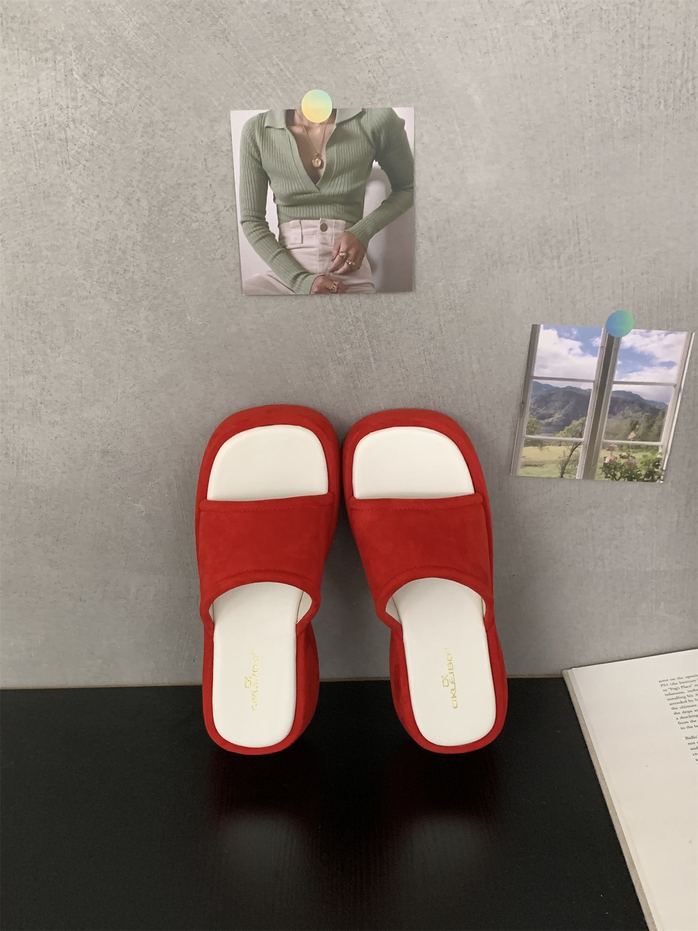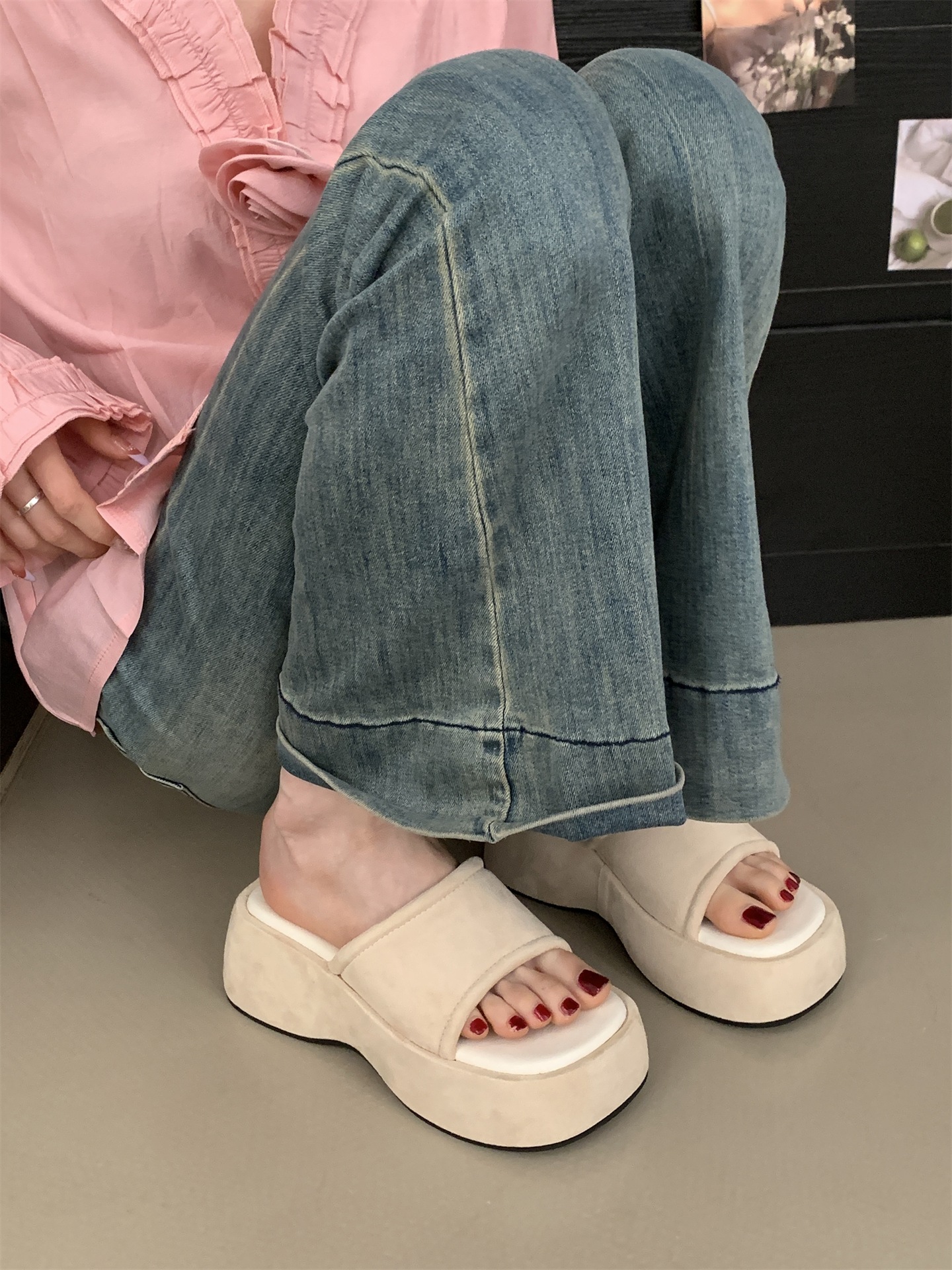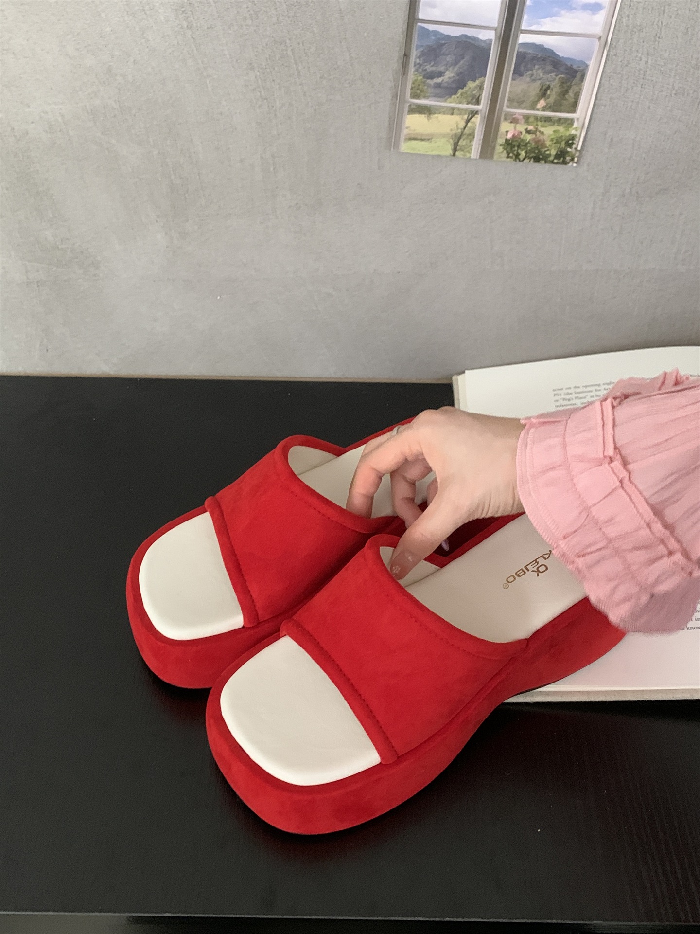 두꺼운 밑창의 플랫폼 오픈토 샌들, 외투용 페어리 슈즈, 2025 봄 여름 신상품, 키가 작은 사람들을 위한 스웨이드 슬리퍼스토어 가기
