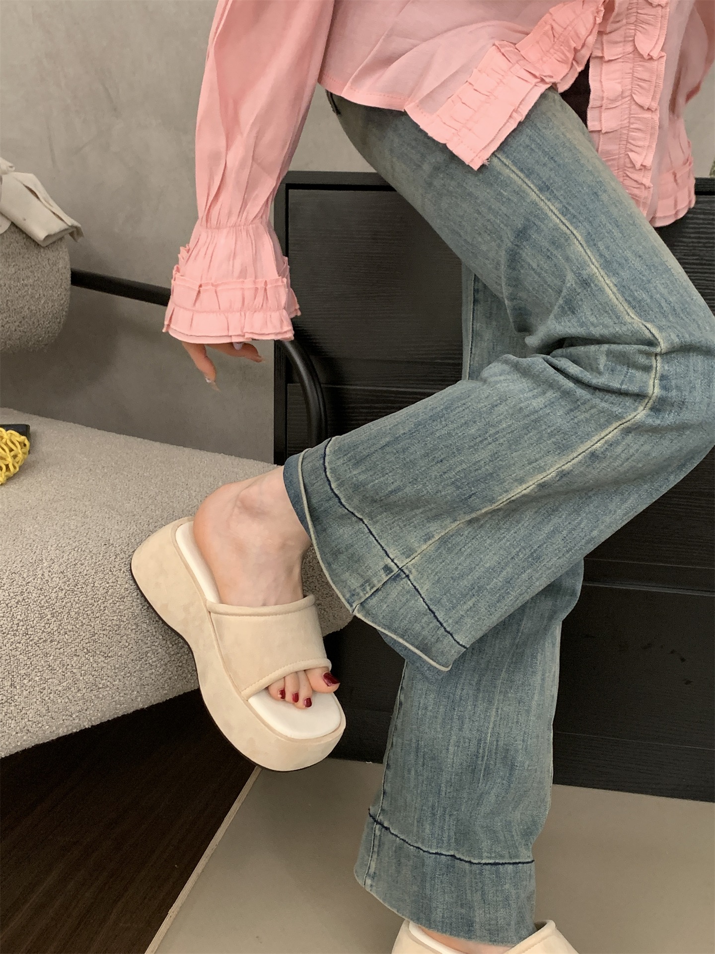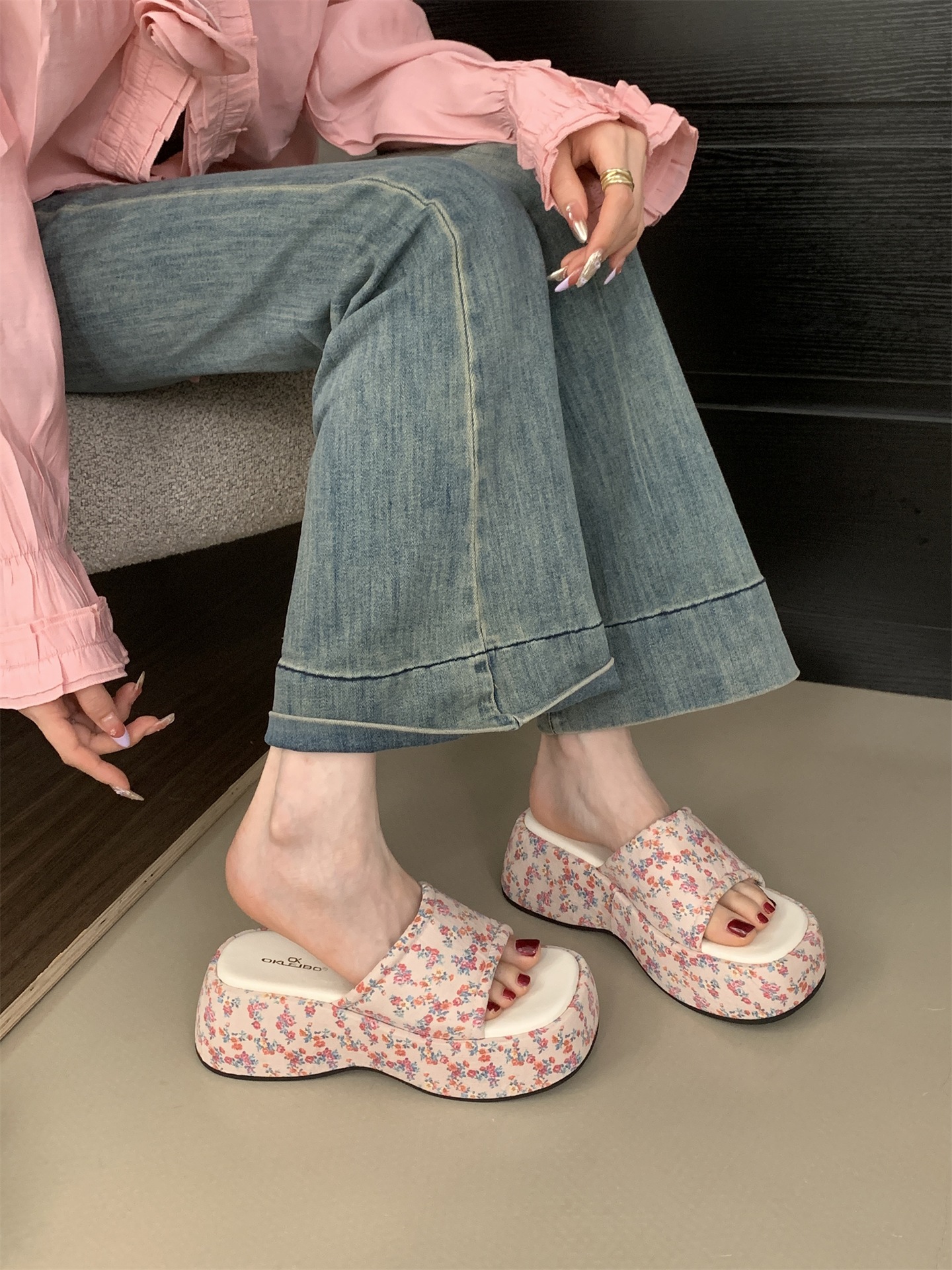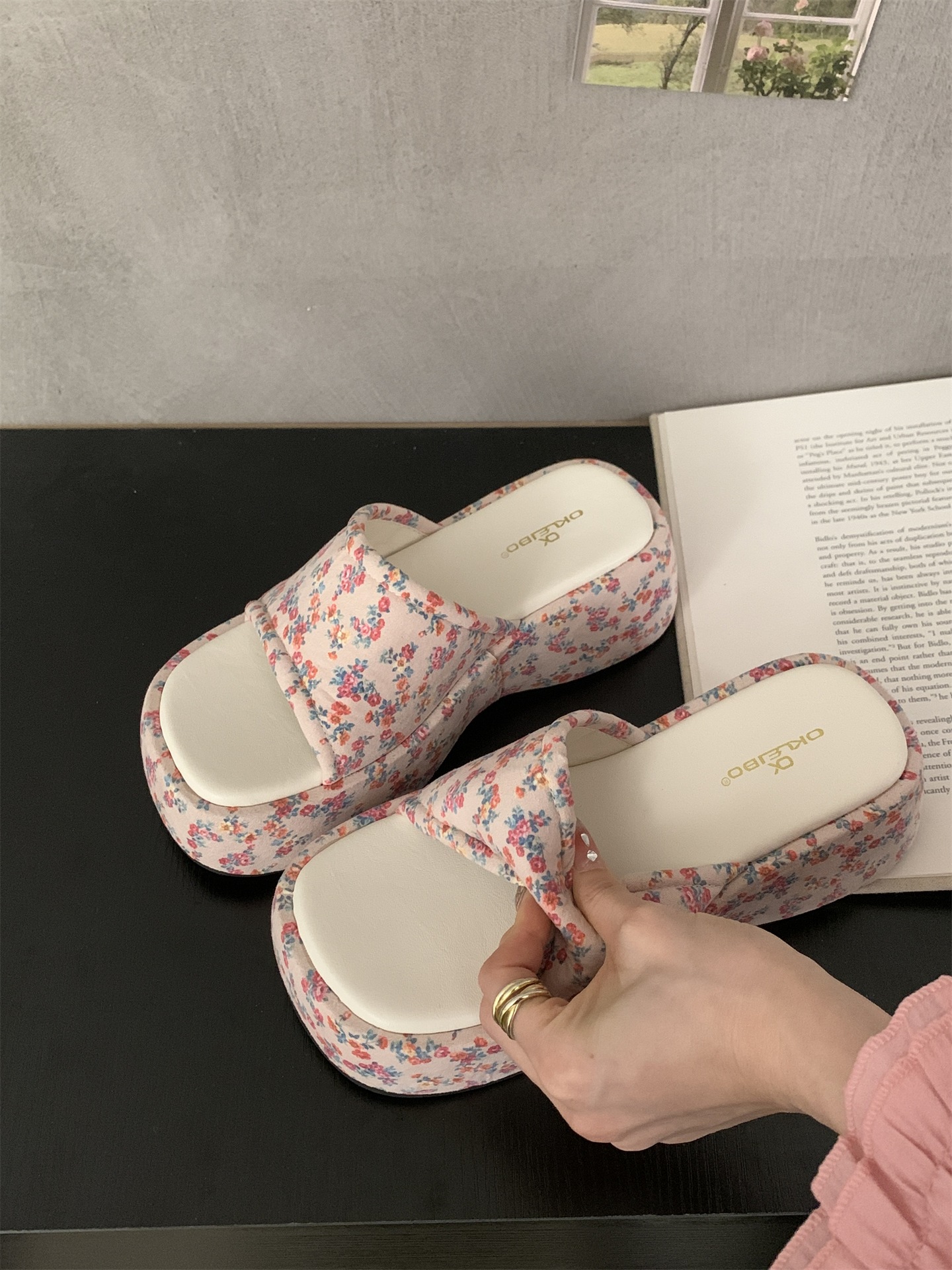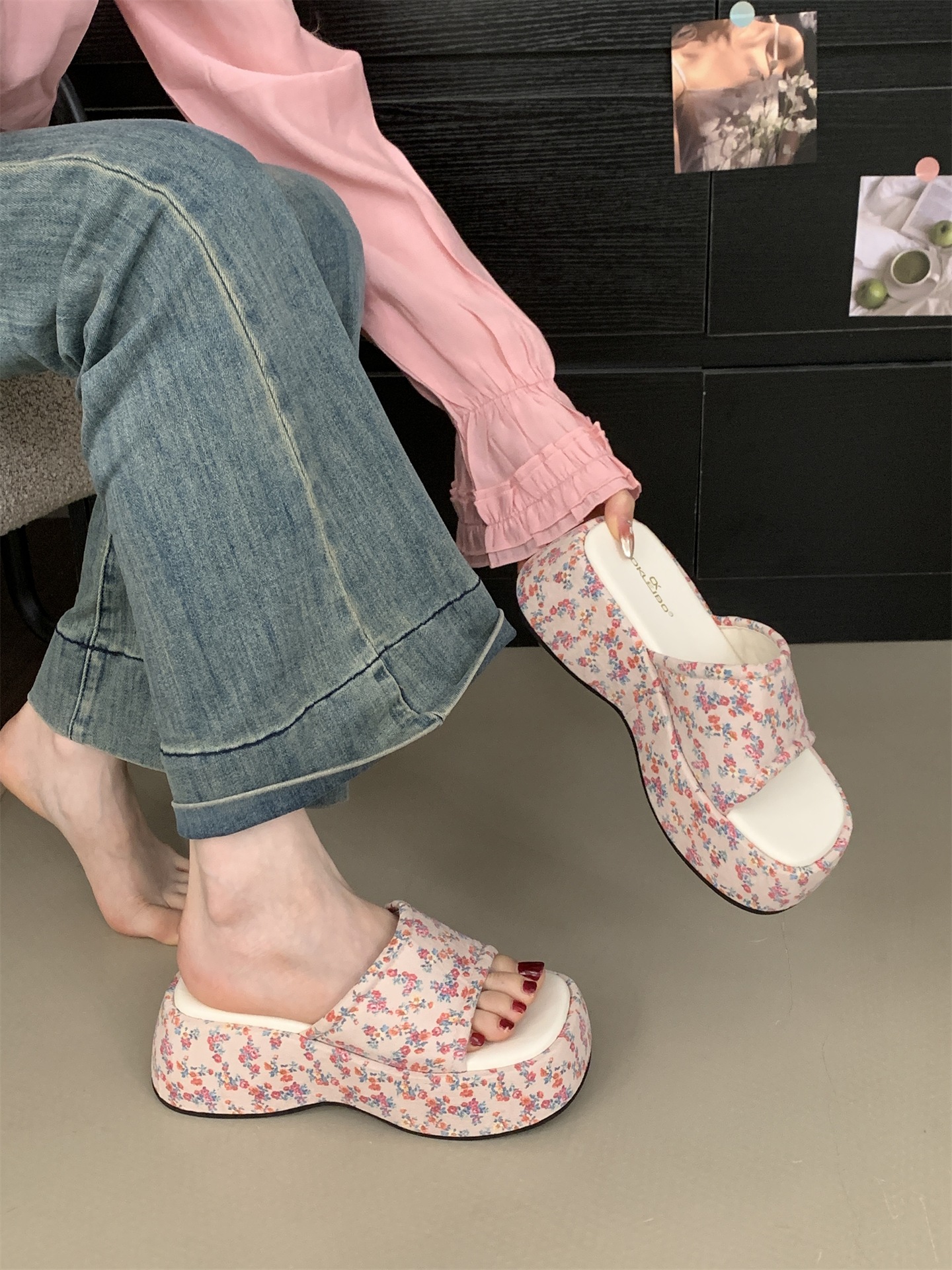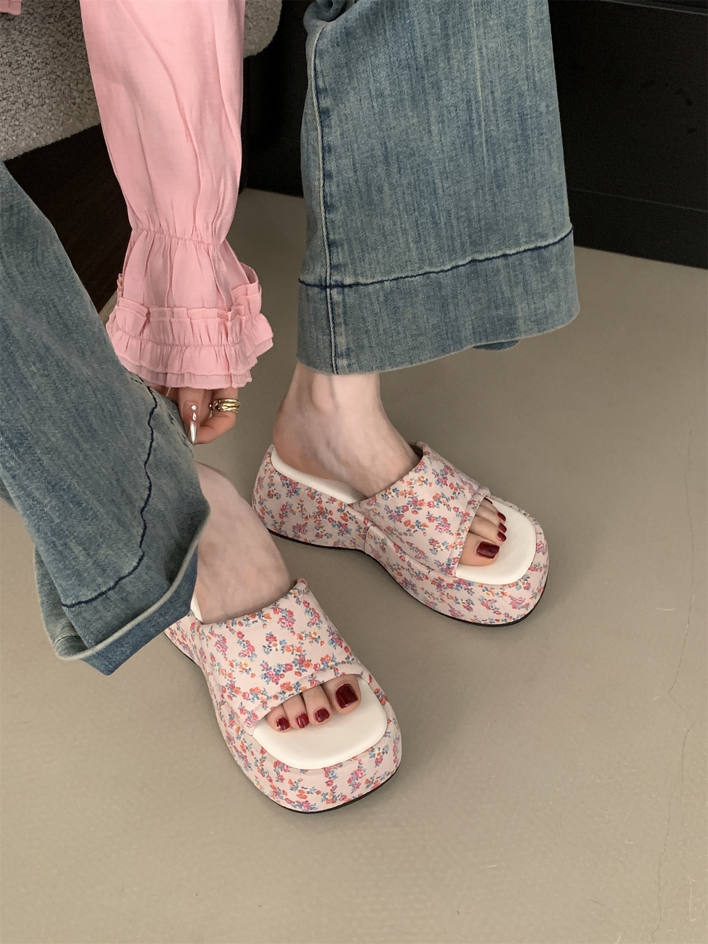 두꺼운 밑창의 플랫폼 오픈토 샌들, 외투용 페어리 슈즈, 2025 봄 여름 신상품, 키가 작은 사람들을 위한 스웨이드 슬리퍼스토어 가기