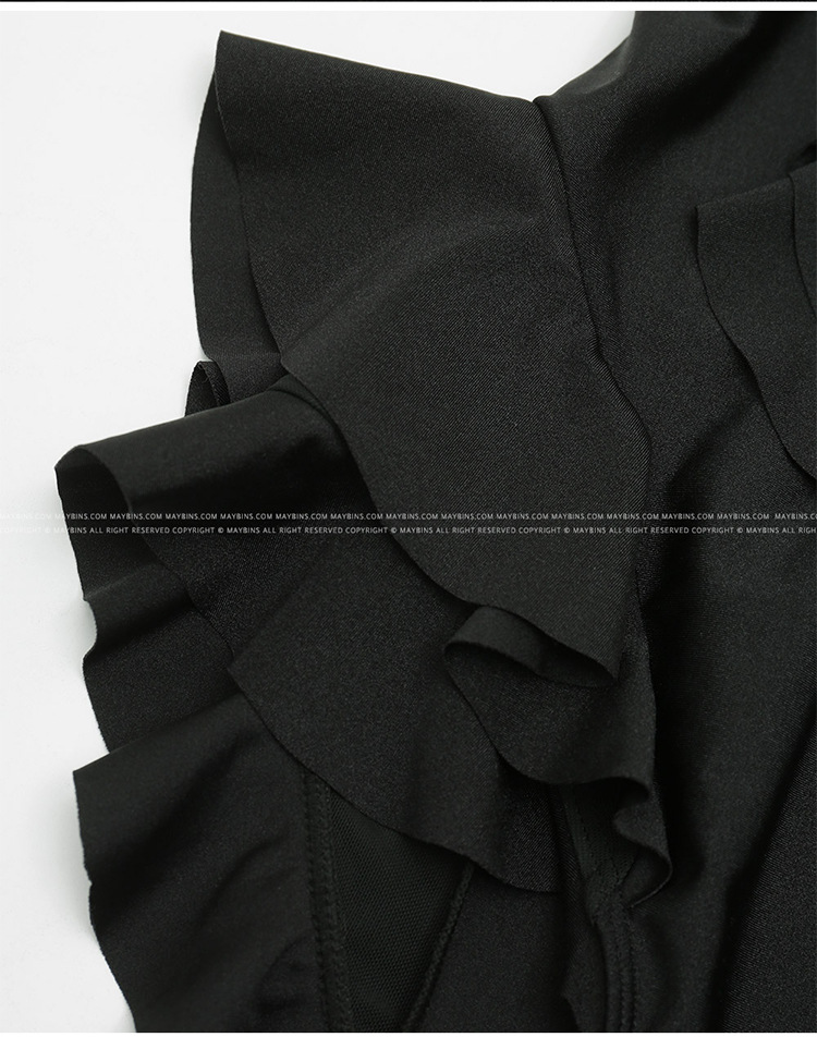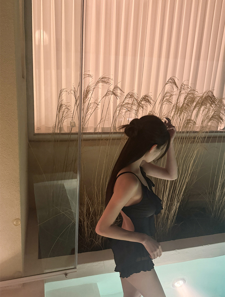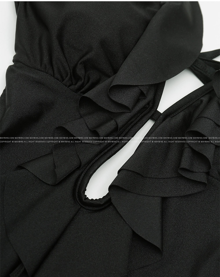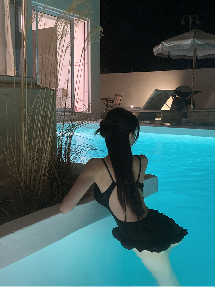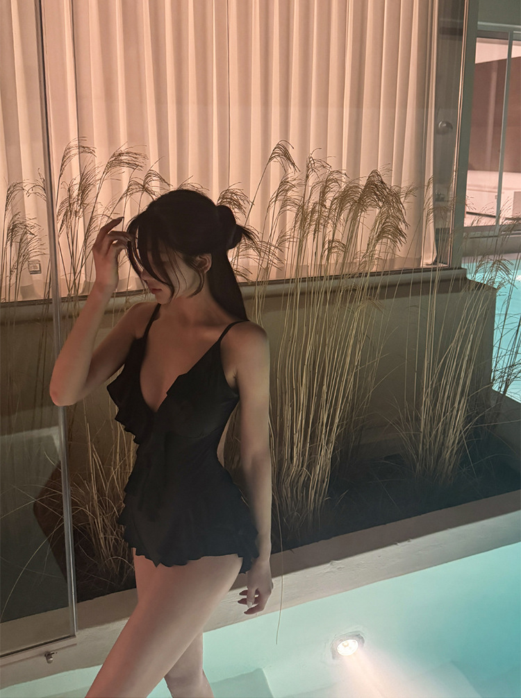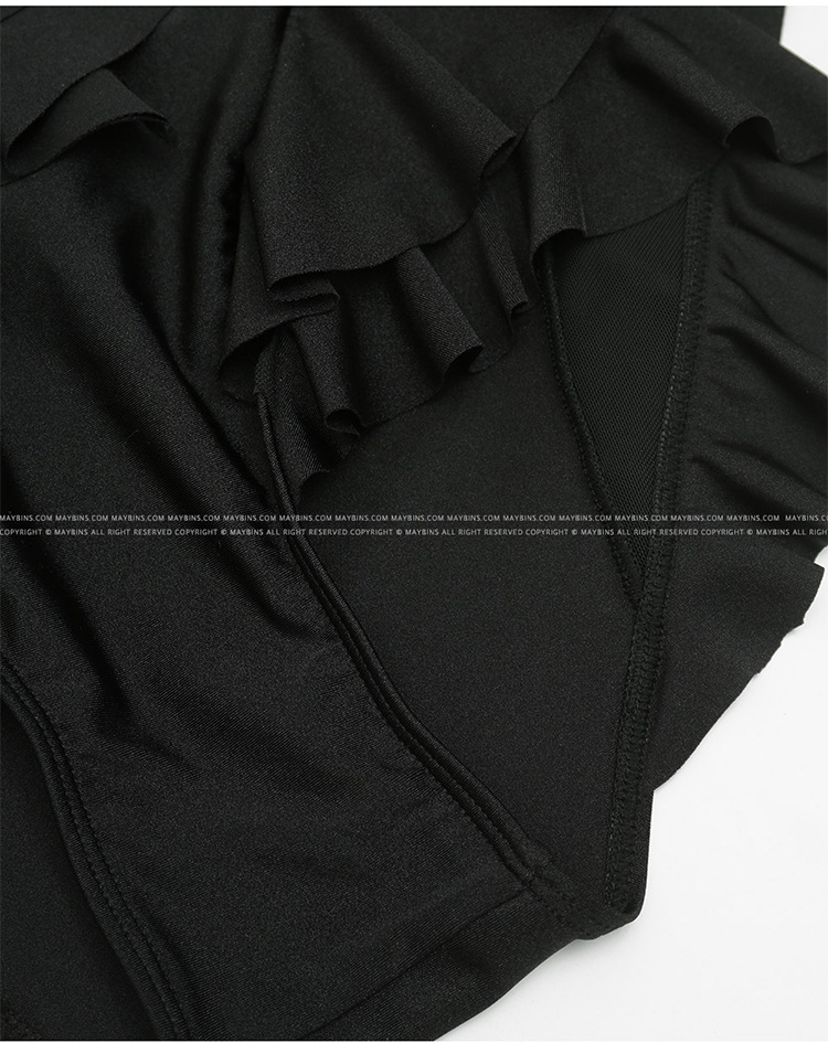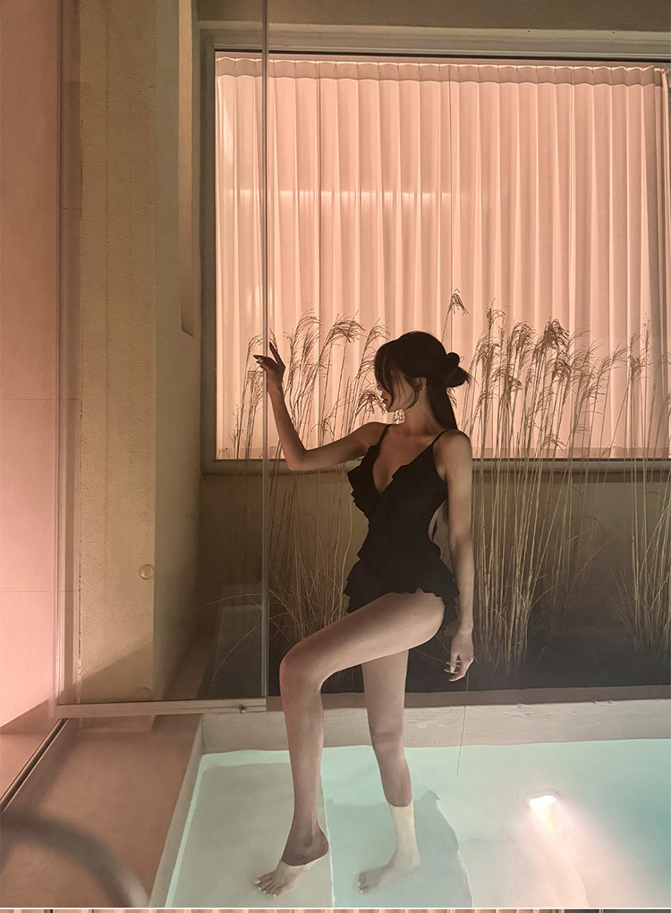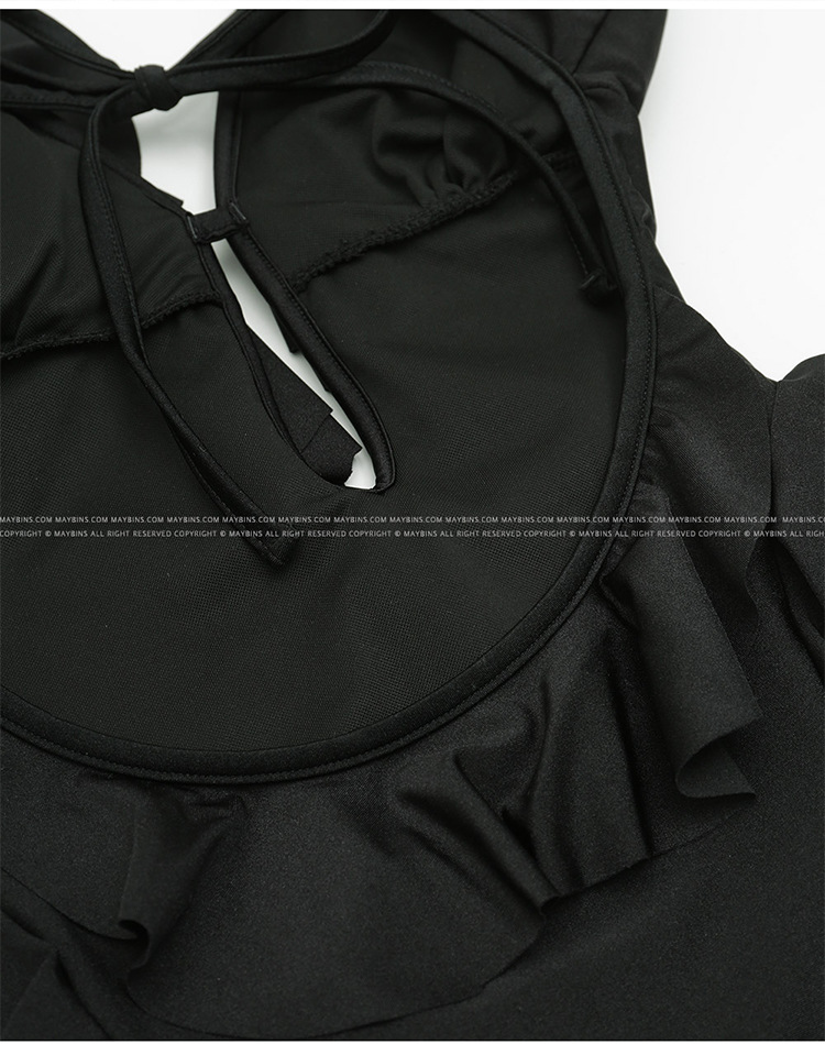 동대문 2025 한국 새로운 온천 백리스 멀티 레이어 솔리드 러플 V 칼라 스커트 수영복스토어 가기