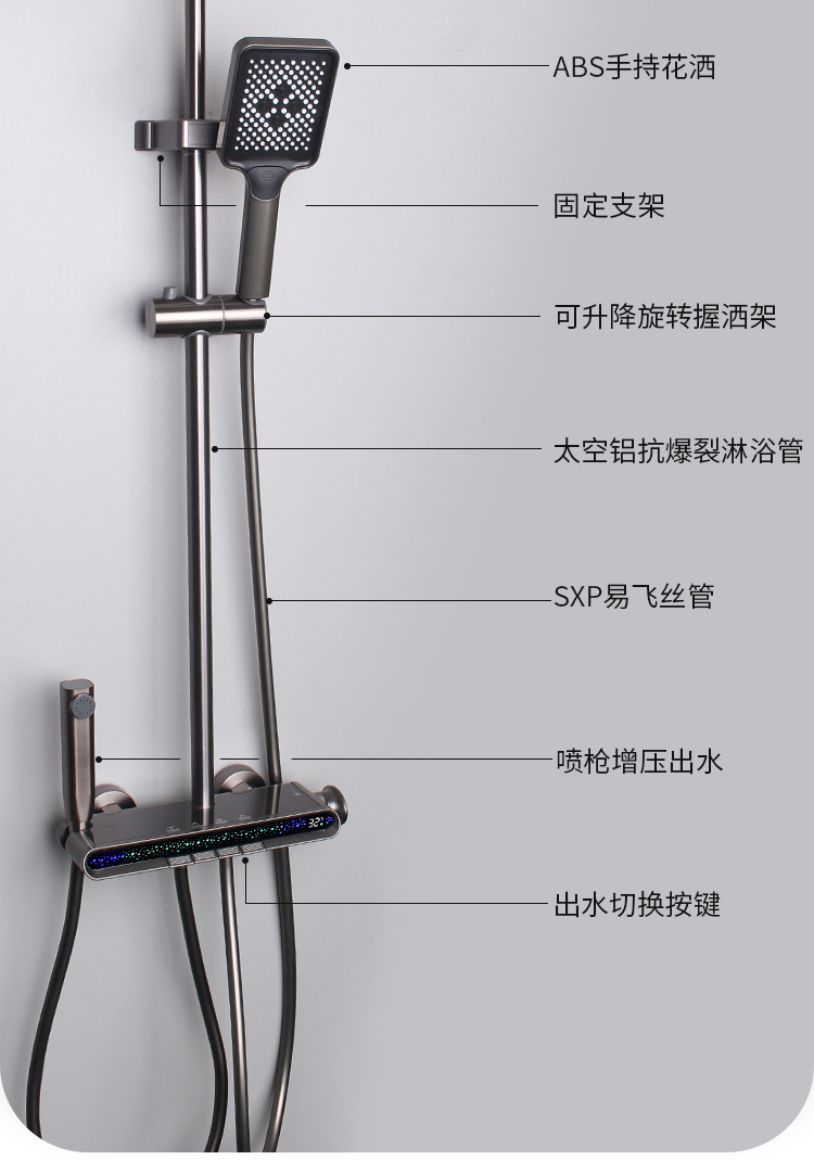 LED 스마트 디지털 디스플레이 샤워 세트 주변 조명 샤워 욕실 욕실 홈 샤워 부스터 샤워 세트