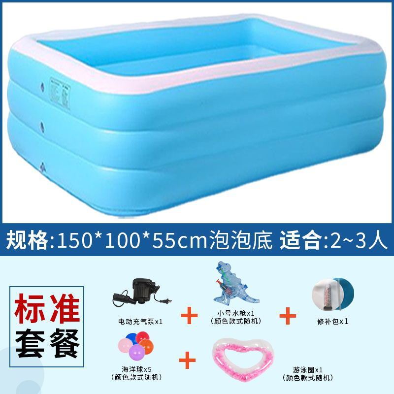 • 전동 펌프 세트 [전동 펌프 급속 공기 주입] - 1.5m 블루 & 화이트 3단 버블 바닥 풀 --- 필수 구매템
