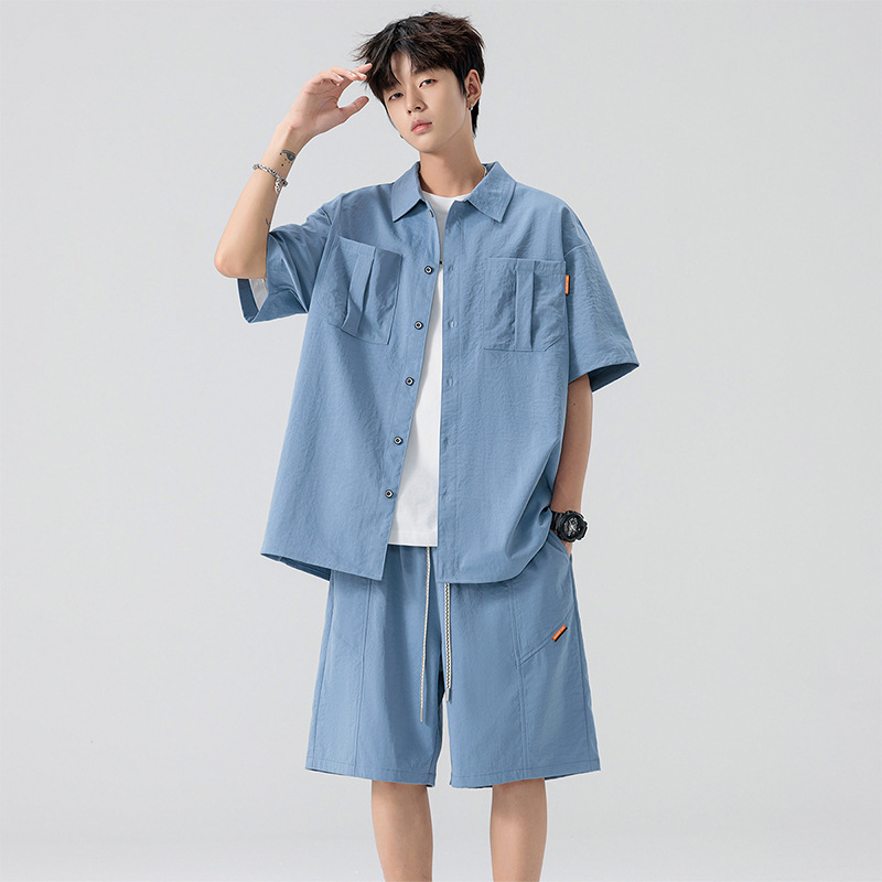 아이스 실크 셔츠 세트 남성 여름 패션 브랜드 남성 느슨한 플러스 사이즈 남성 의류 캐주얼 스포츠 세트 남성 패션스토어 가기