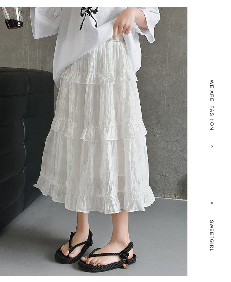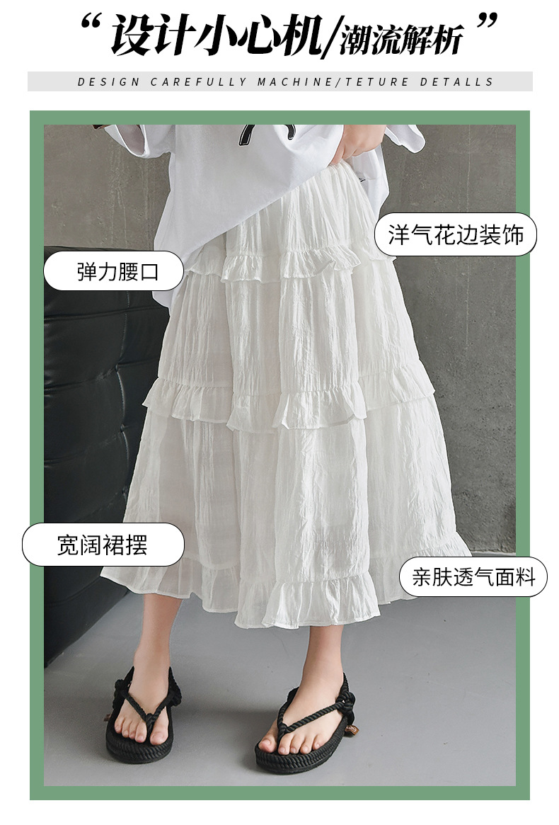 여자 흰 치마 여름 새로운 큰 어린이 긴 치마 여자 코튼 얇은 주름 케이크 스커트 한국 스타일
