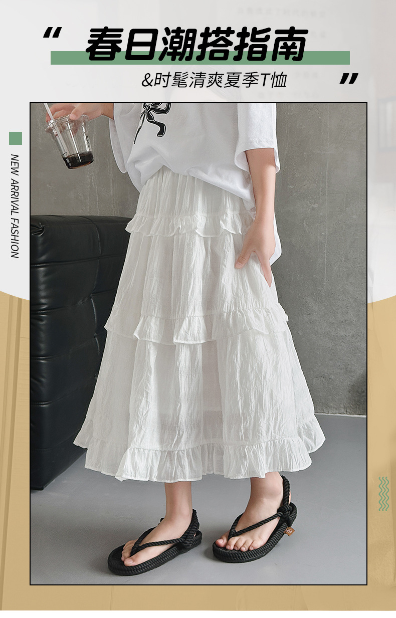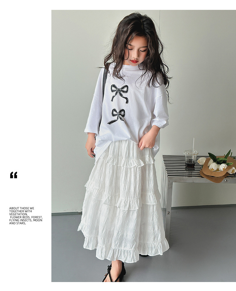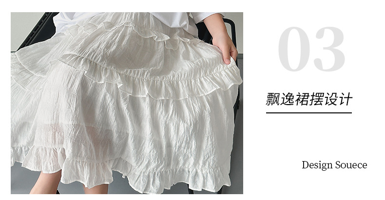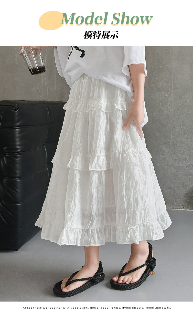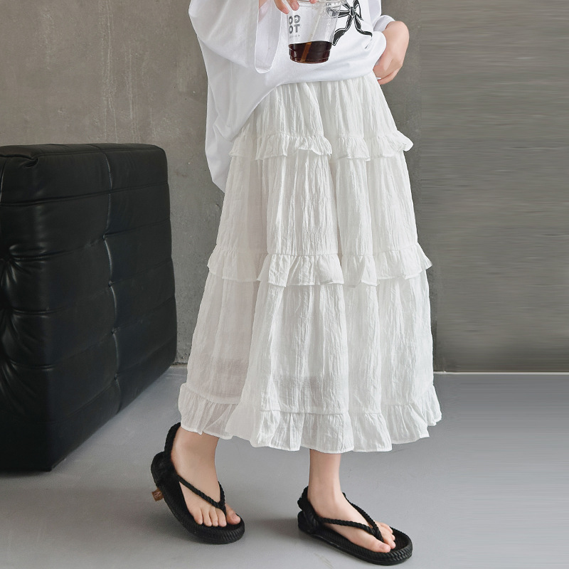 여자 흰 치마 여름 새로운 큰 어린이 긴 치마 여자 코튼 얇은 주름 케이크 스커트 한국 스타일스토어 가기