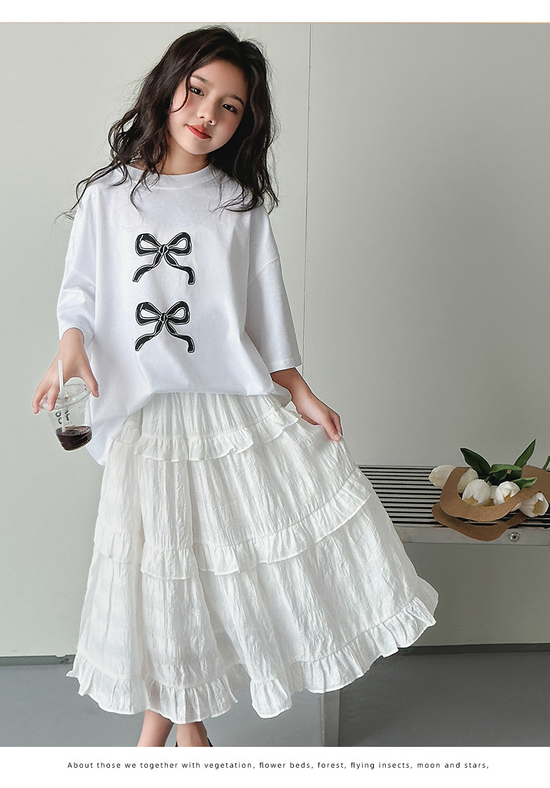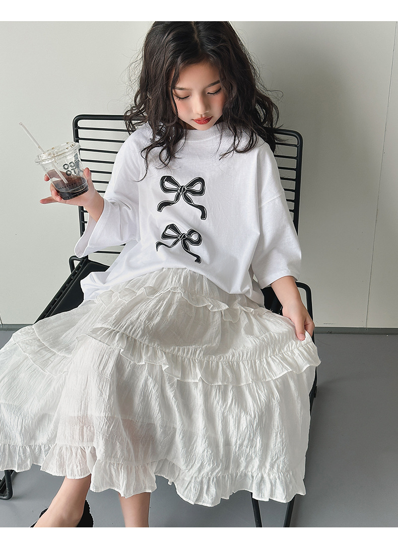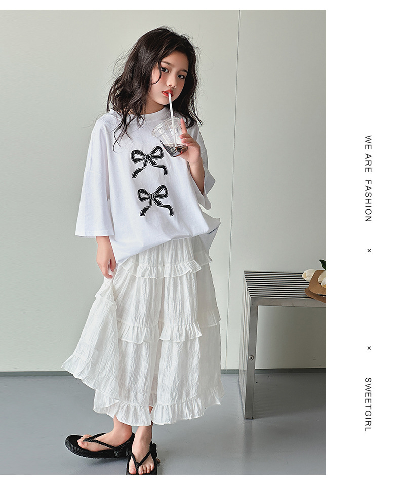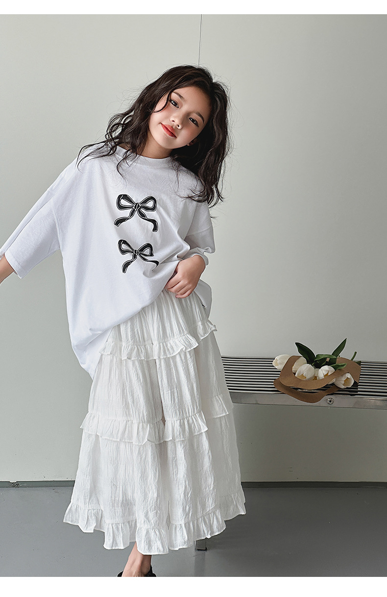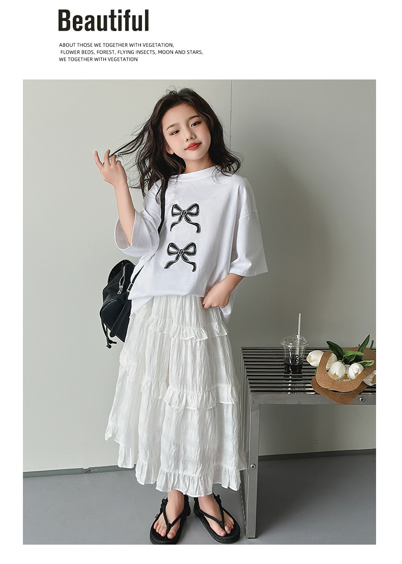 여자 흰 치마 여름 새로운 큰 어린이 긴 치마 여자 코튼 얇은 주름 케이크 스커트 한국 스타일스토어 가기