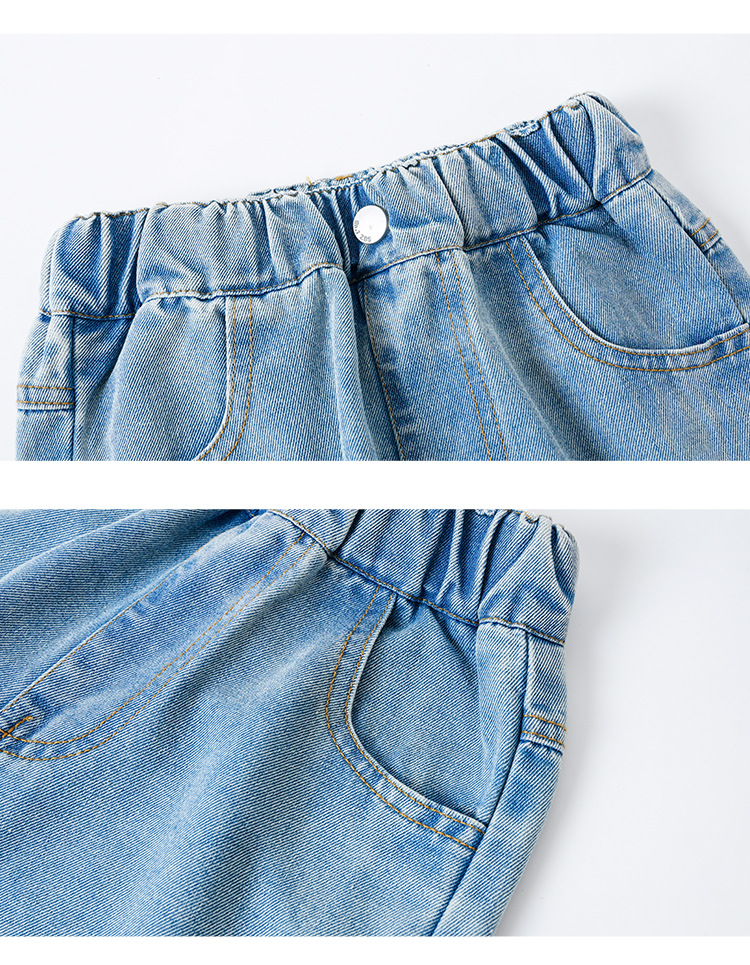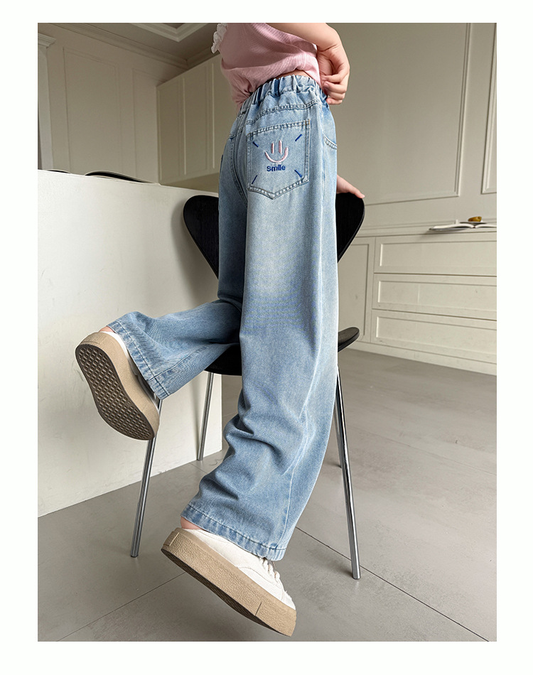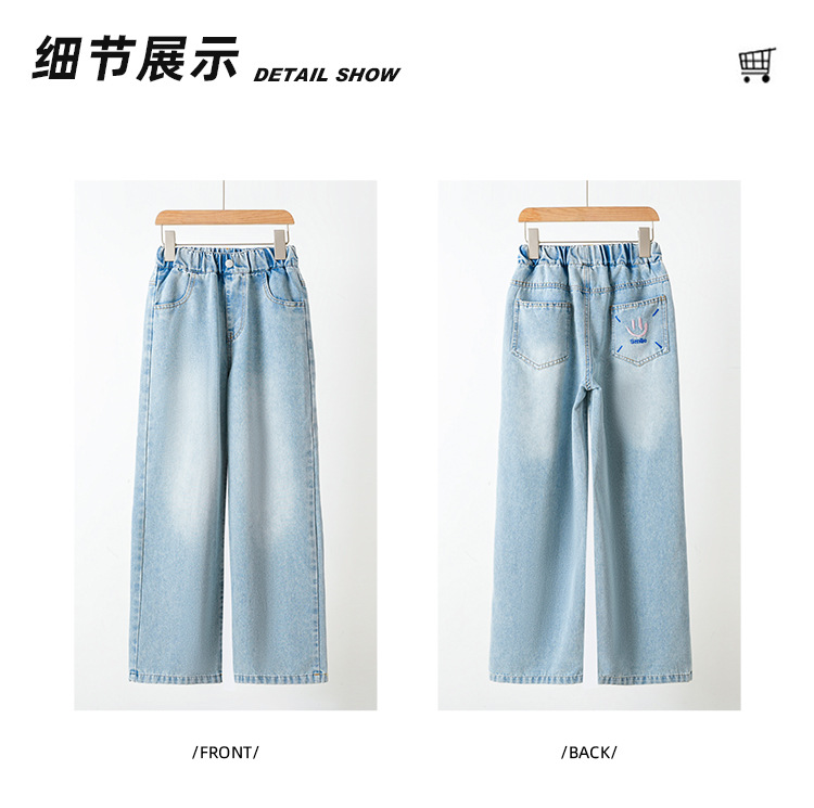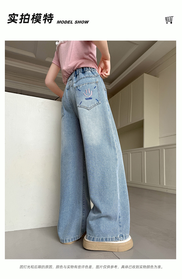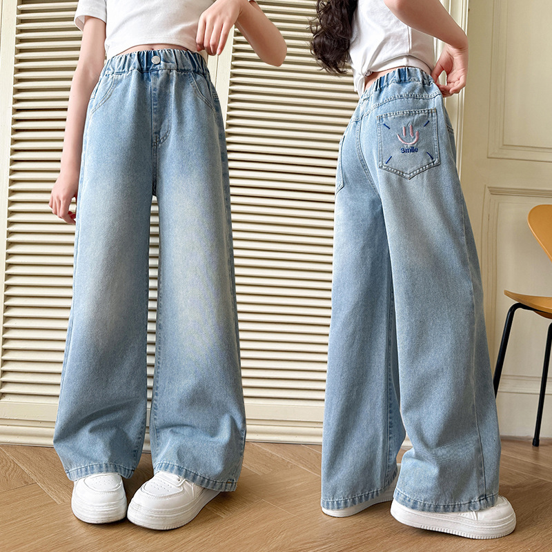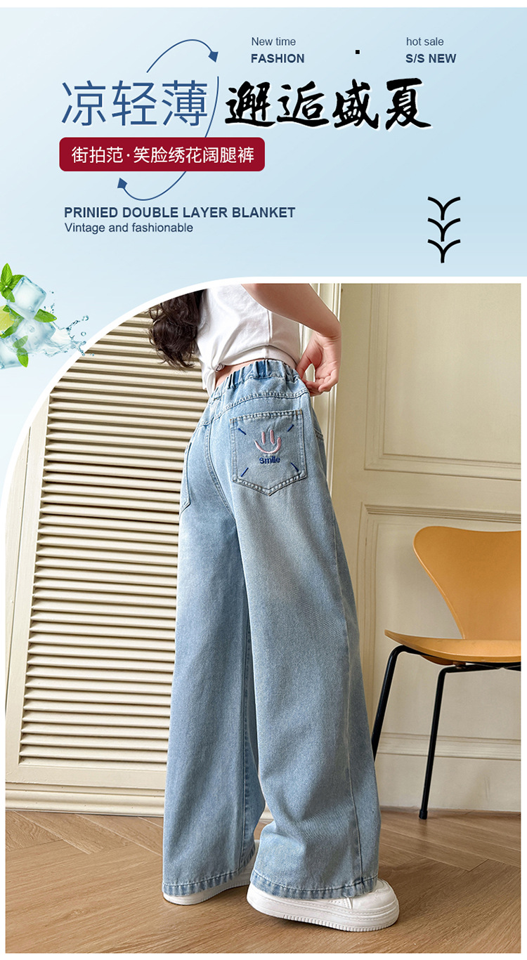 소녀 청바지 여름 얇은 2025 새로운 여자 넓은 다리 바지 여름 안티 모기 바지 여름 어린이 바지스토어 가기