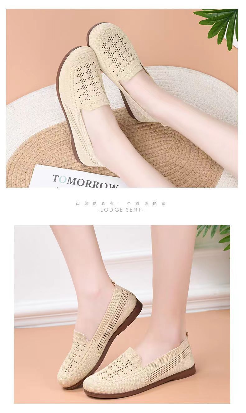 노인용 여성용 여름용 미끄럼 방지 신발, 매우 부드럽고 내마모성이 뛰어나고 가벼운 할머니 신발, 로우탑 플라이 니트 메쉬 올드 베이징 신발, 중공