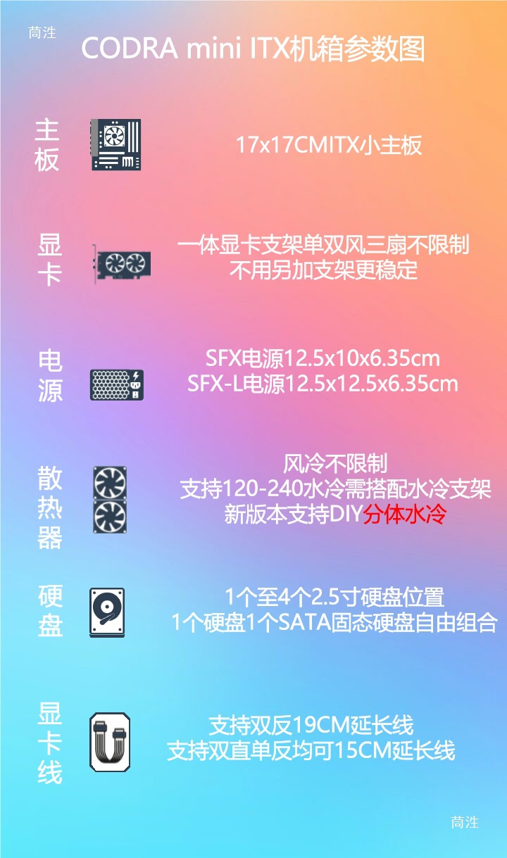 • SFX 검정색 itx 마더보드 버전 - 섀시 + 핸들 + 수냉식 랙