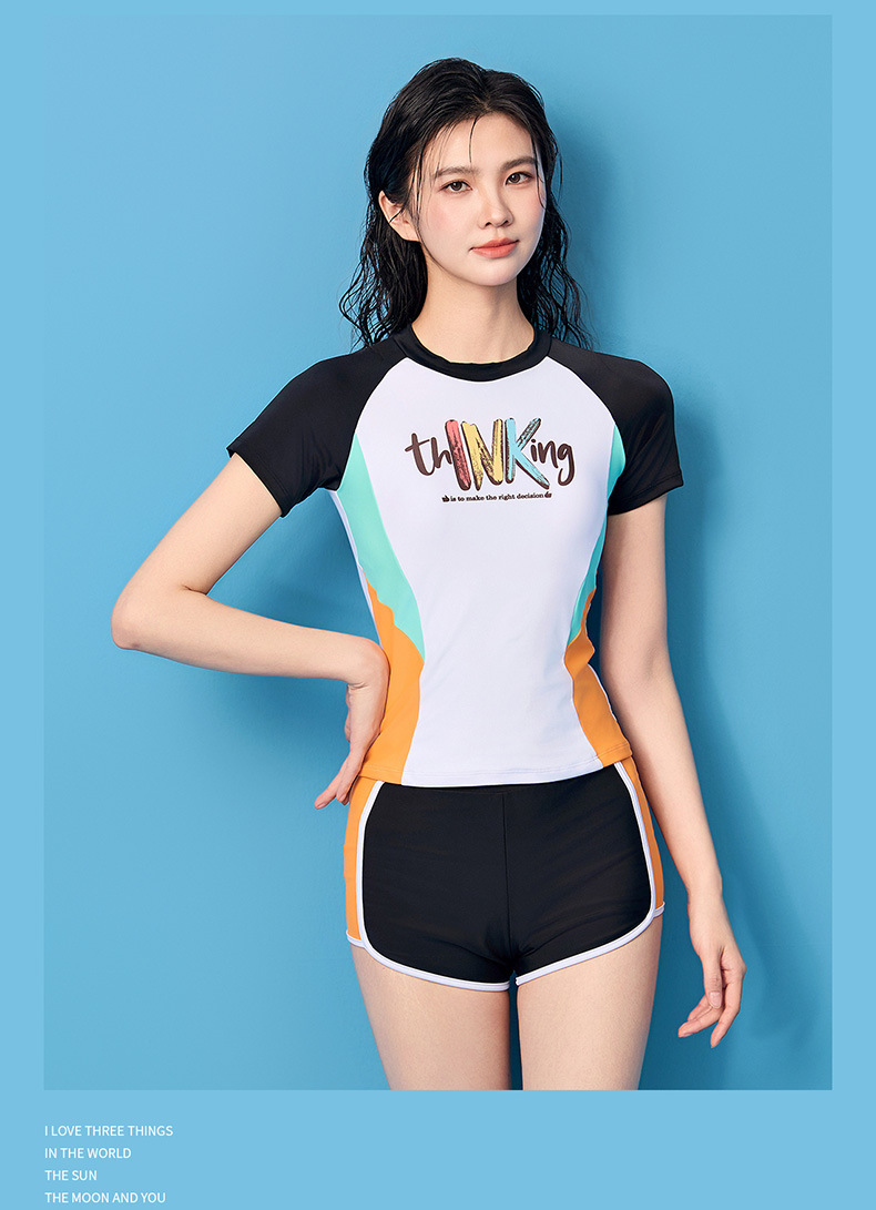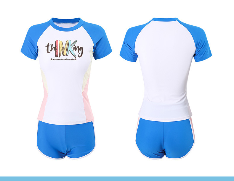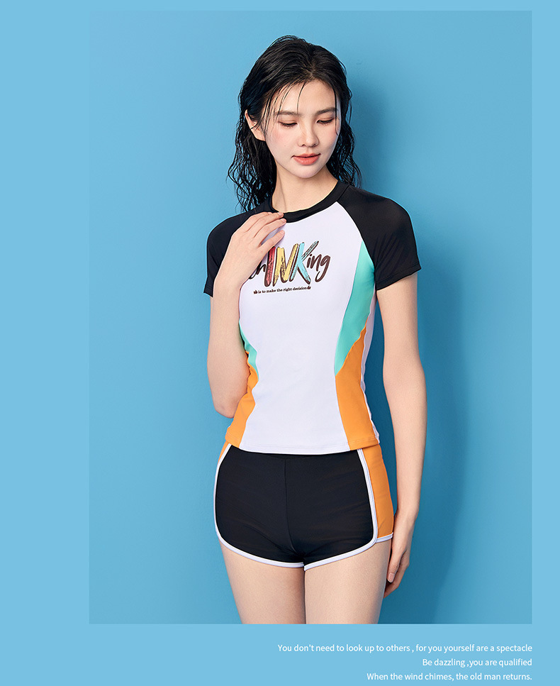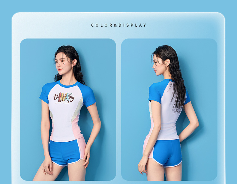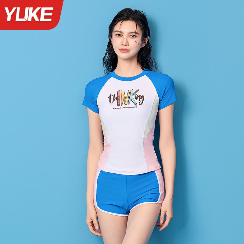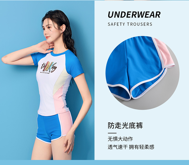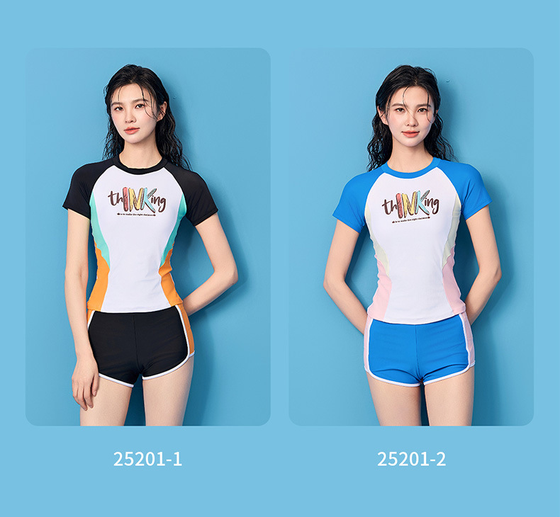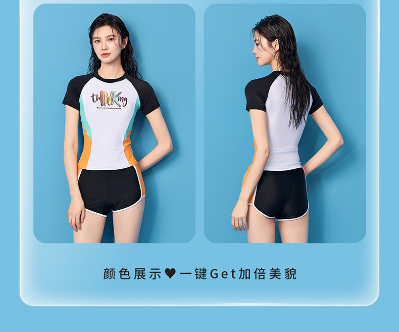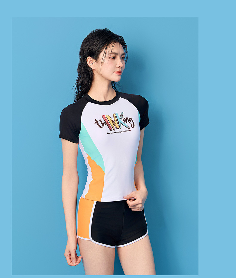 여성용 스포츠 스플릿 수영복, 자외선 차단, 속건성, 꽉 끼는 보수적인 잠수복, 성인 여성을 위한 온천 휴가 반팔 수영복스토어 가기