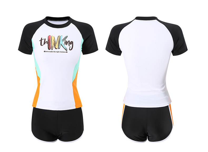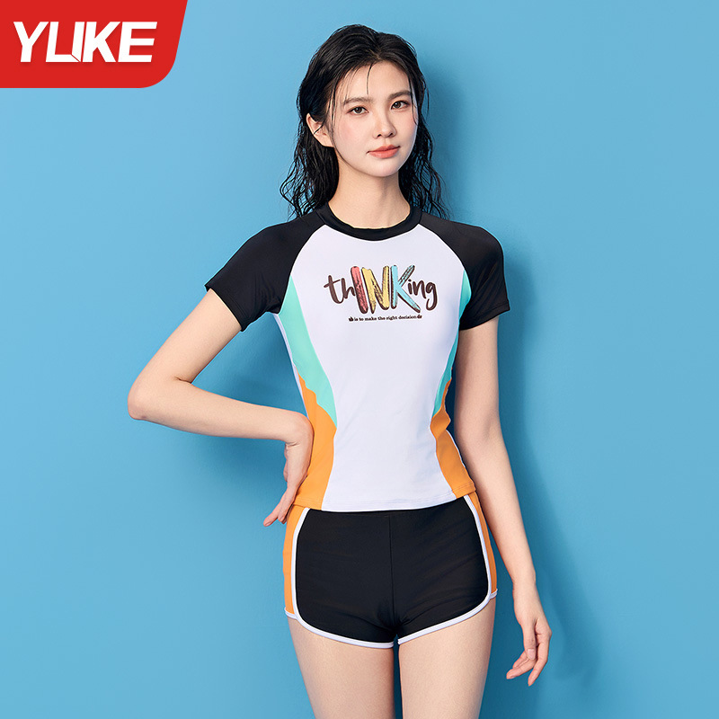 여성용 스포츠 스플릿 수영복, 자외선 차단, 속건성, 꽉 끼는 보수적인 잠수복, 성인 여성을 위한 온천 휴가 반팔 수영복