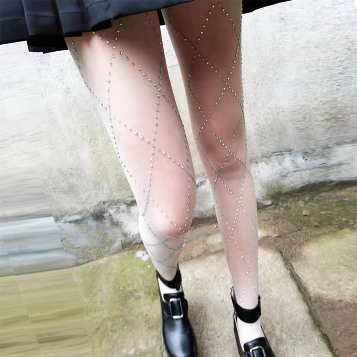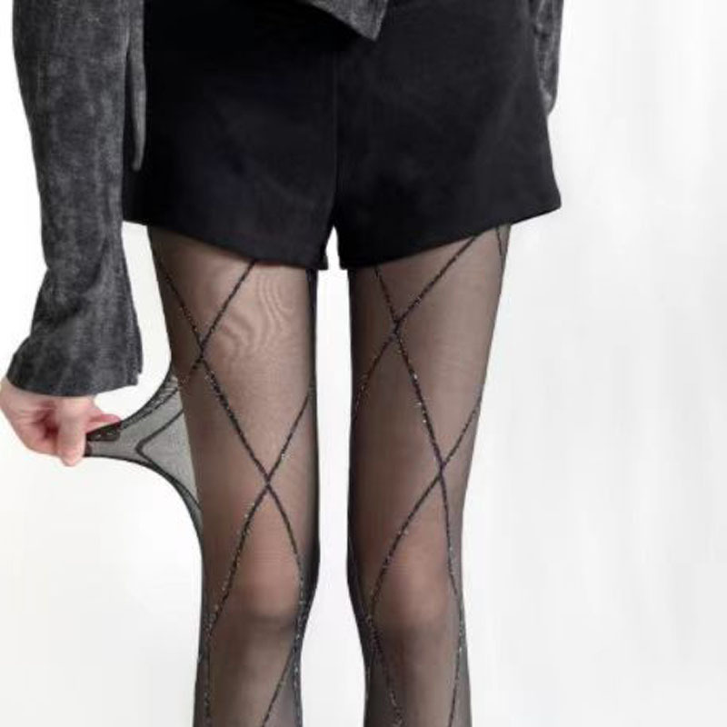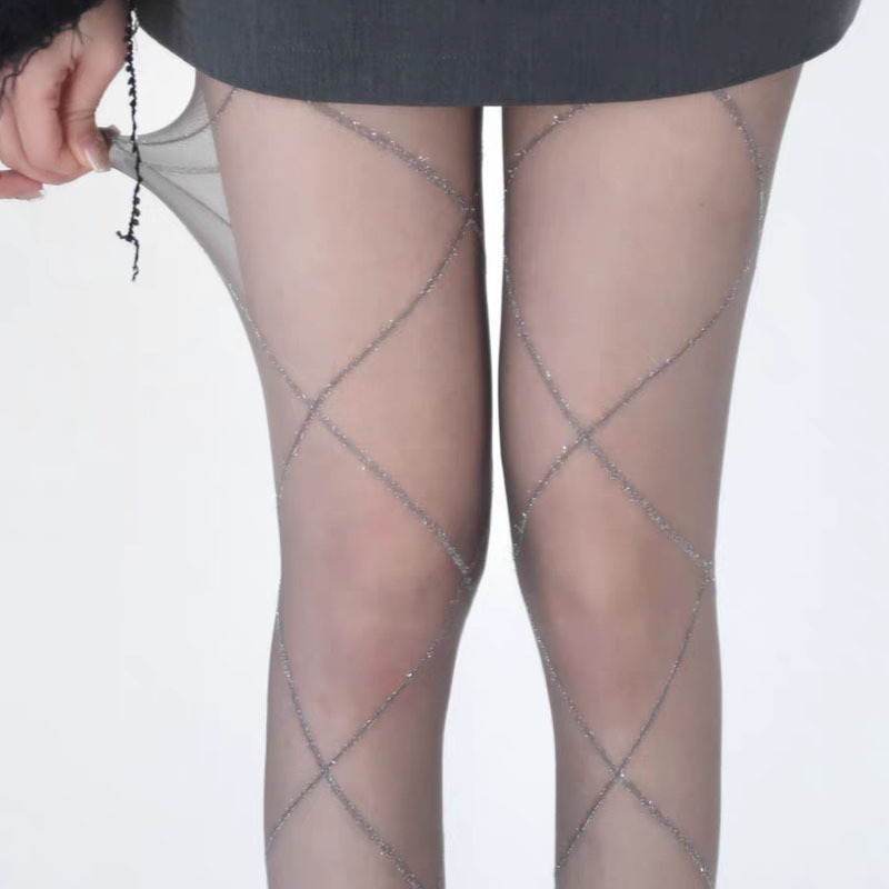 그레이 실버 크로스 마름모 블랙 실크 디자인 라인 스트라이프 섹시한 바닥 팬티 스타킹 여성용 얇은 스타일스토어 가기