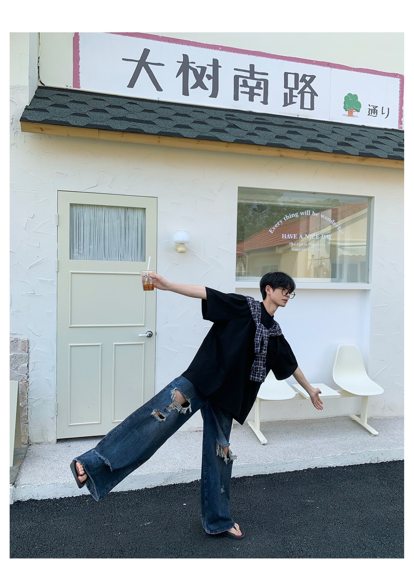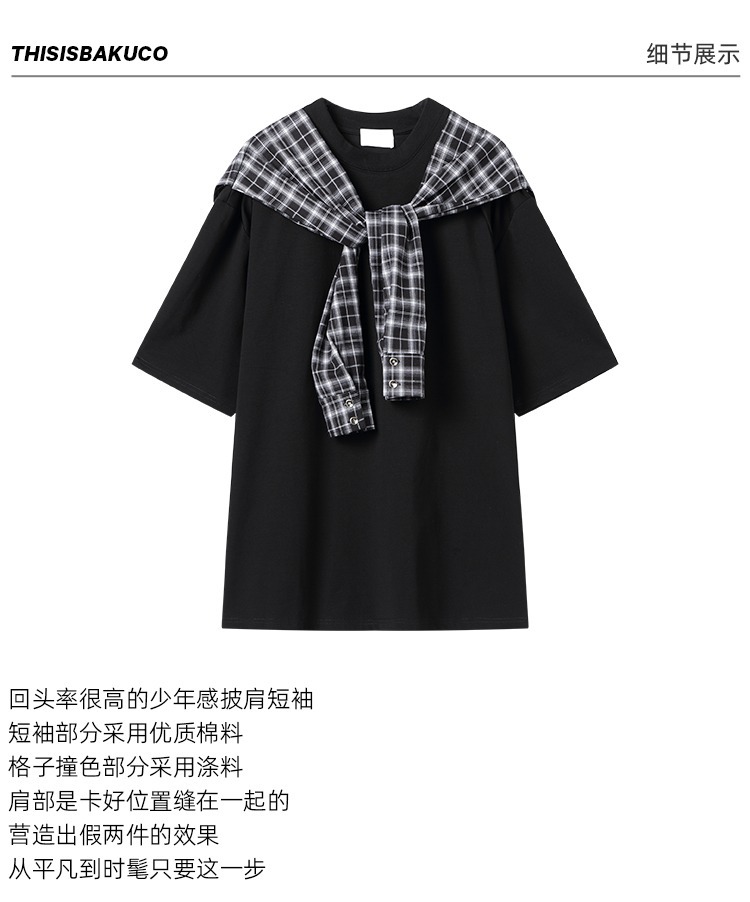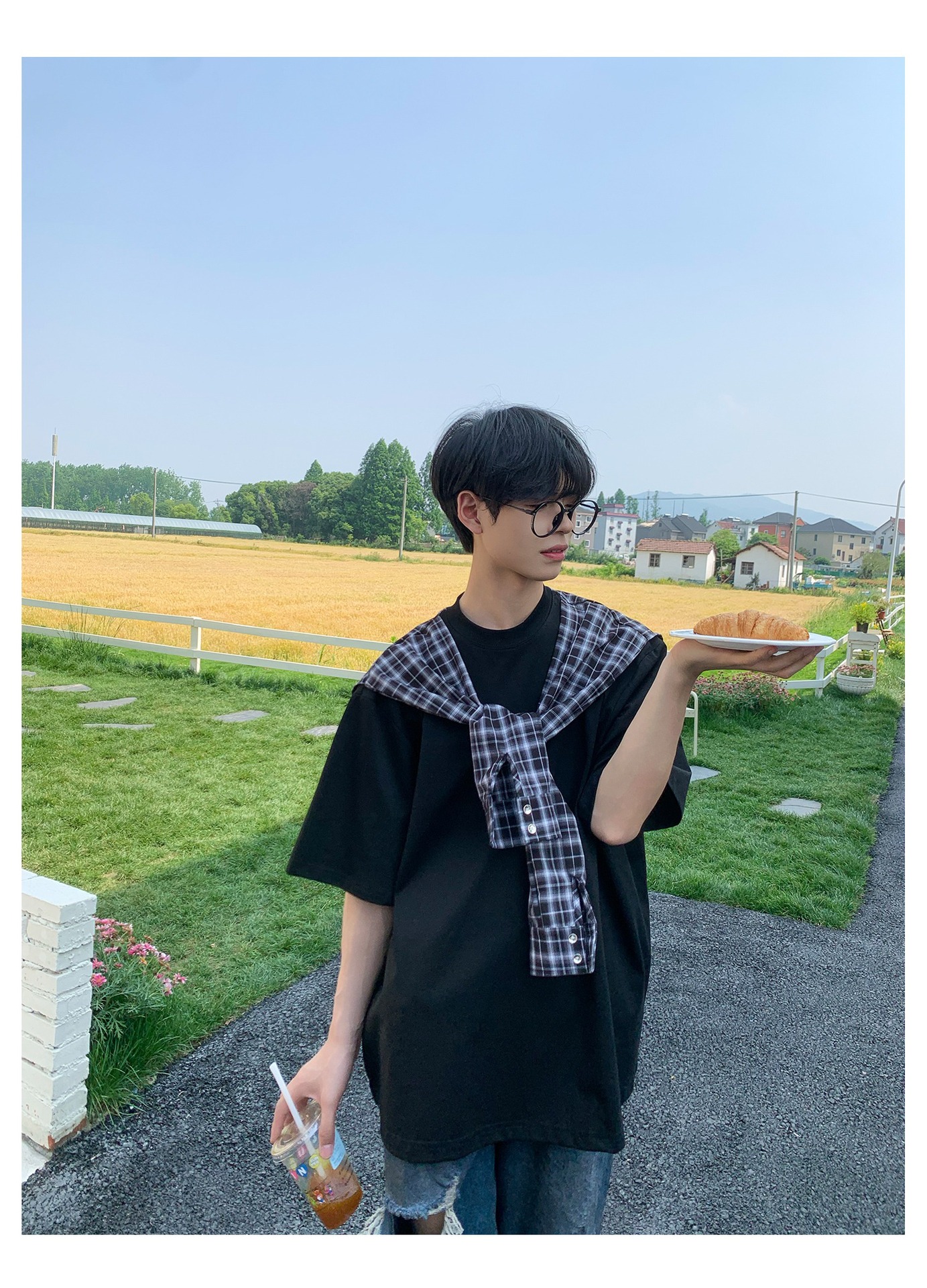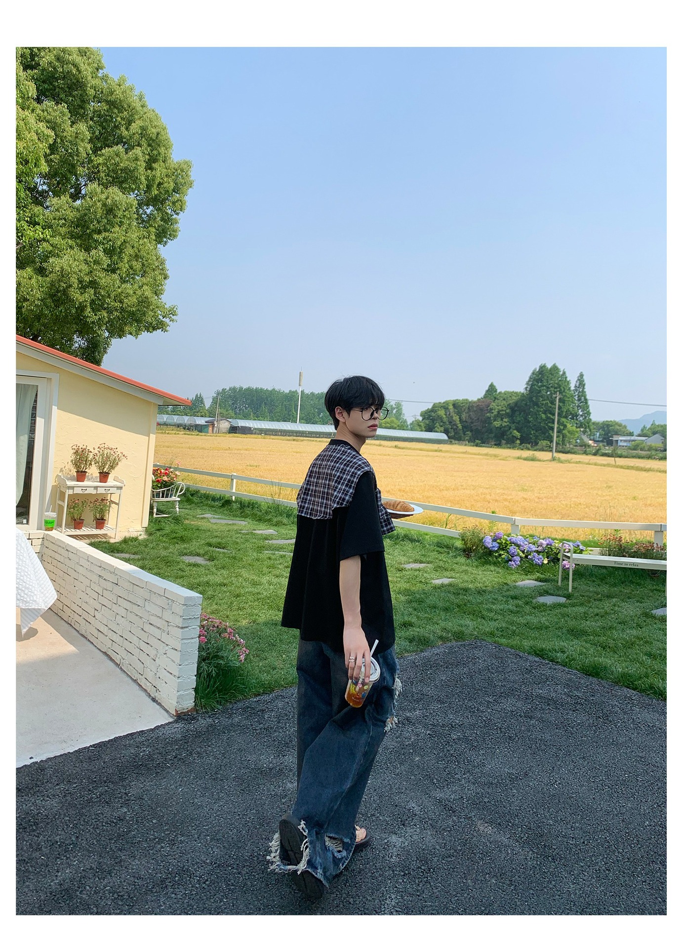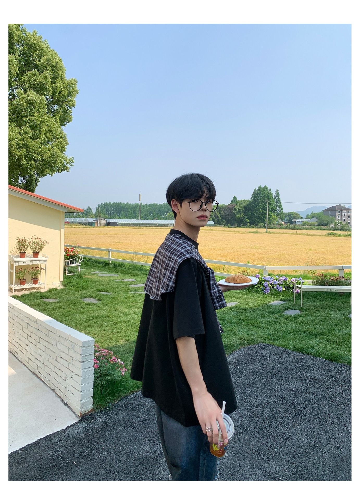 아메리칸 스타일 유행 브랜드 클렌핏 반팔 티셔츠 남성 여름 새로운 느슨한 유행 틈새 가짜 투피스 디자인 탑스토어 가기