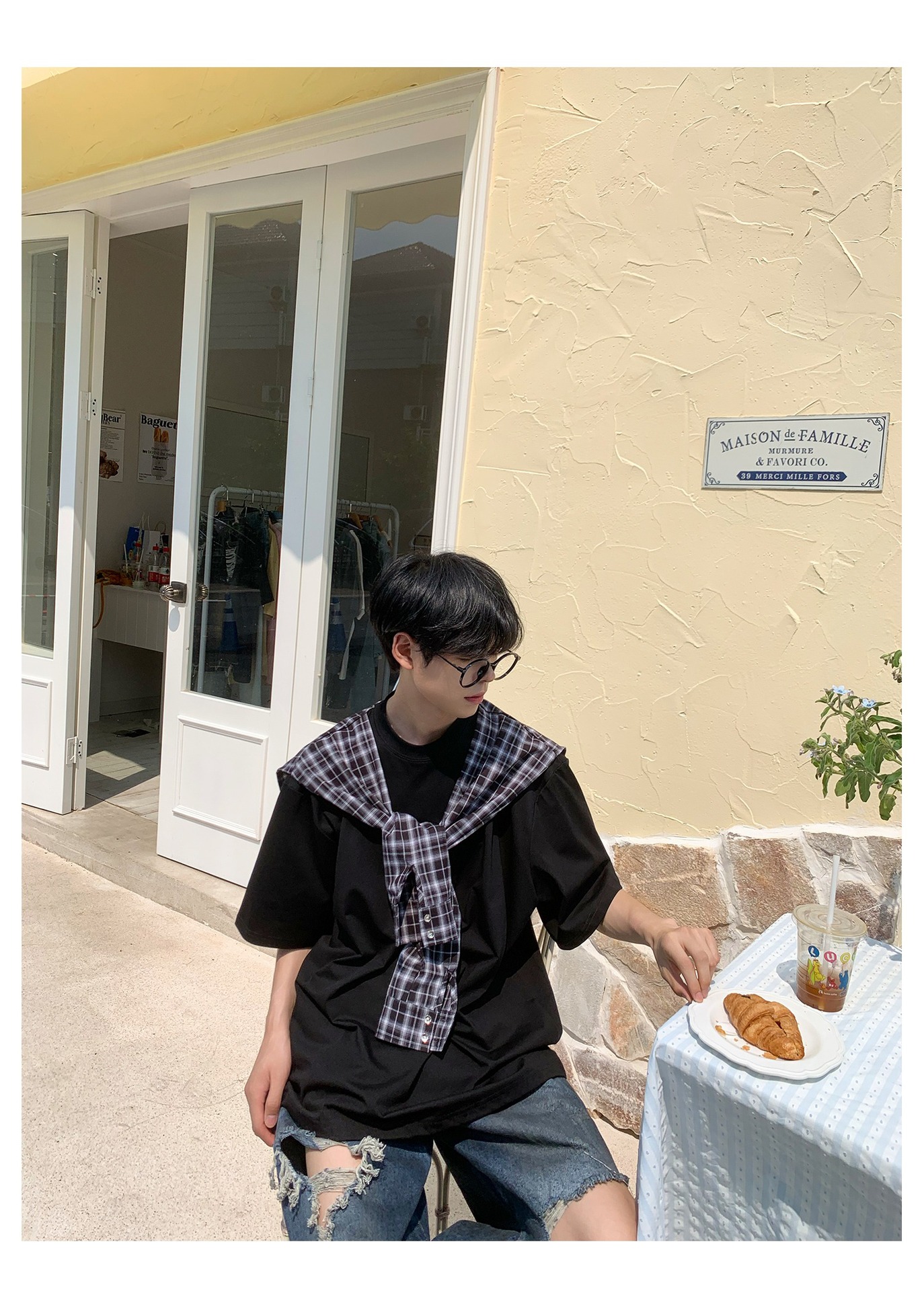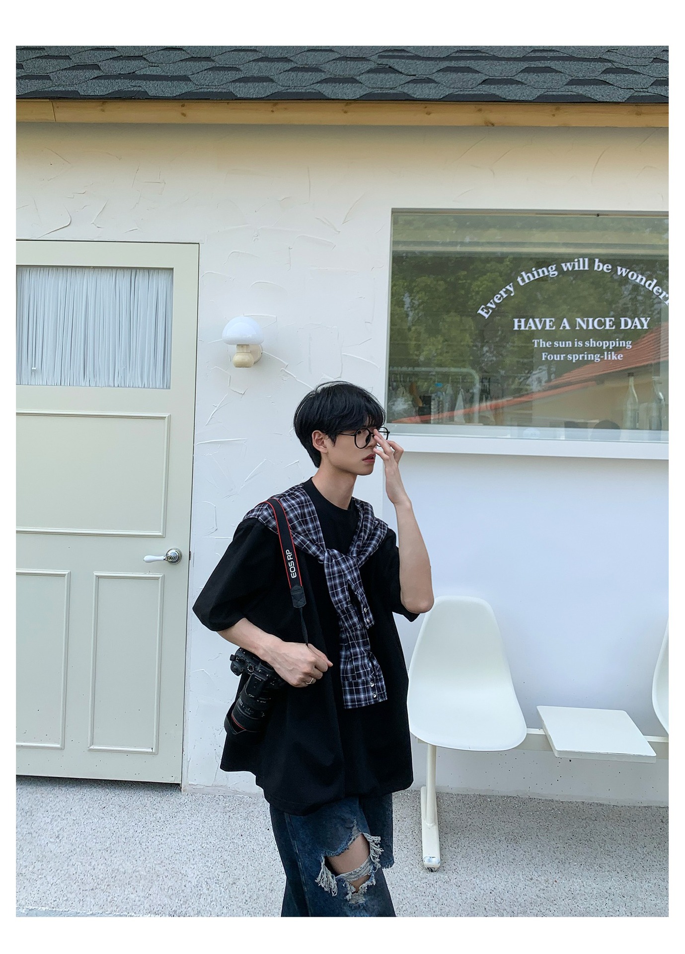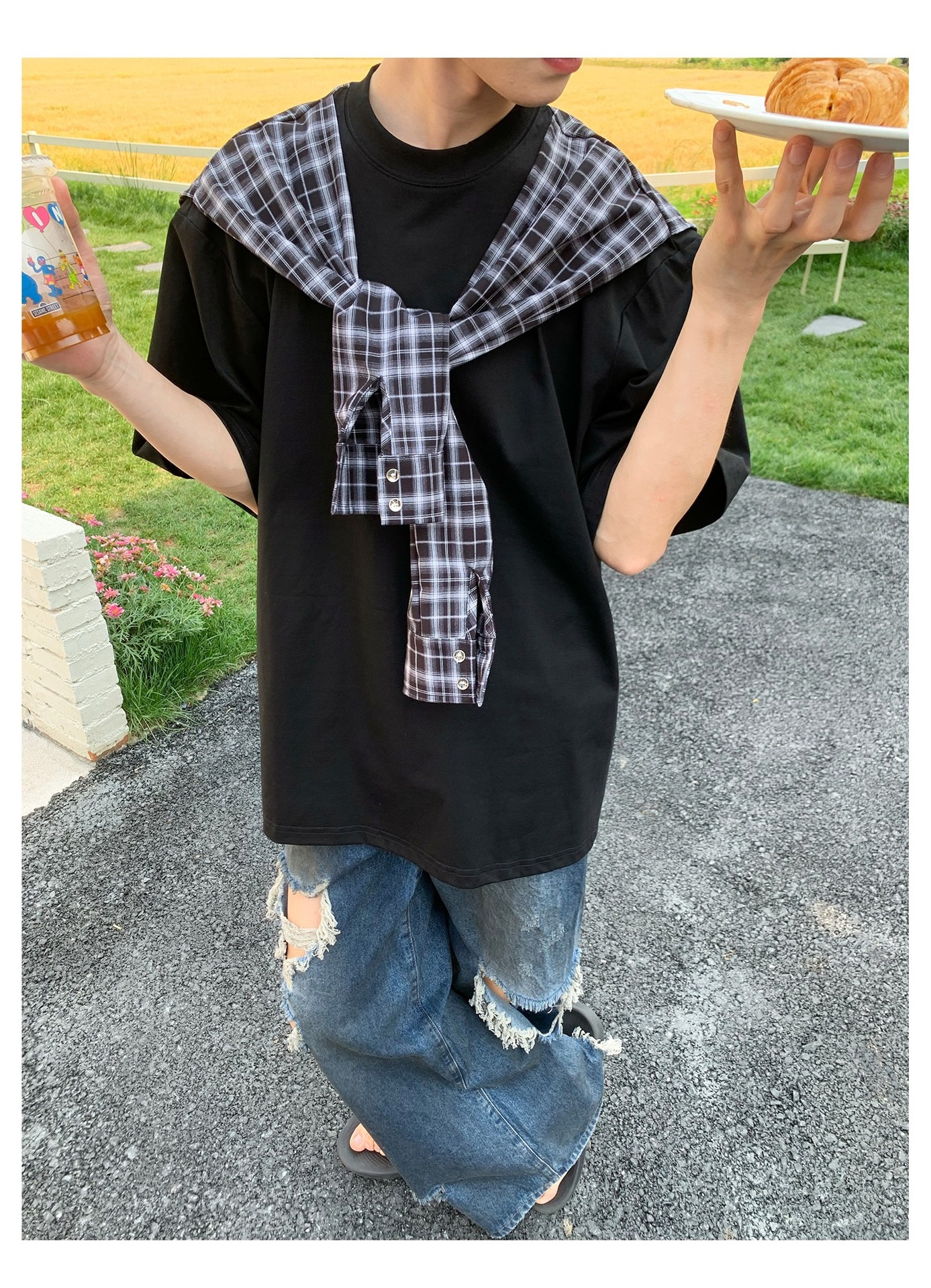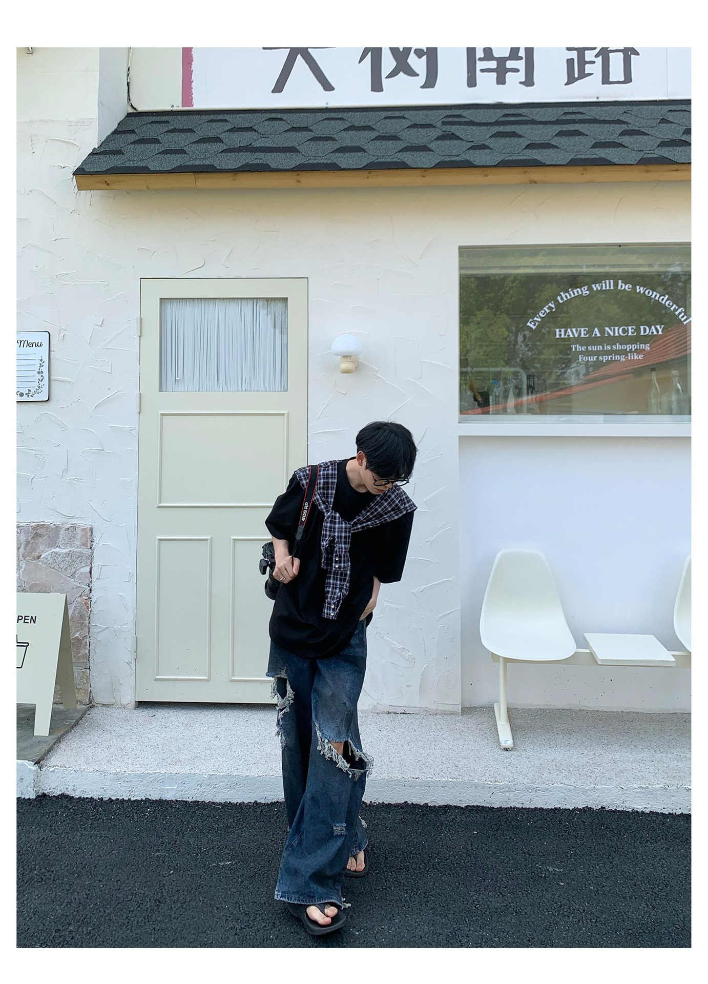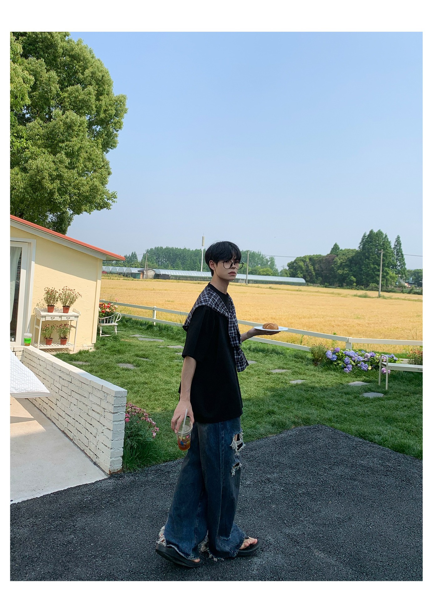 아메리칸 스타일 유행 브랜드 클렌핏 반팔 티셔츠 남성 여름 새로운 느슨한 유행 틈새 가짜 투피스 디자인 탑스토어 가기
