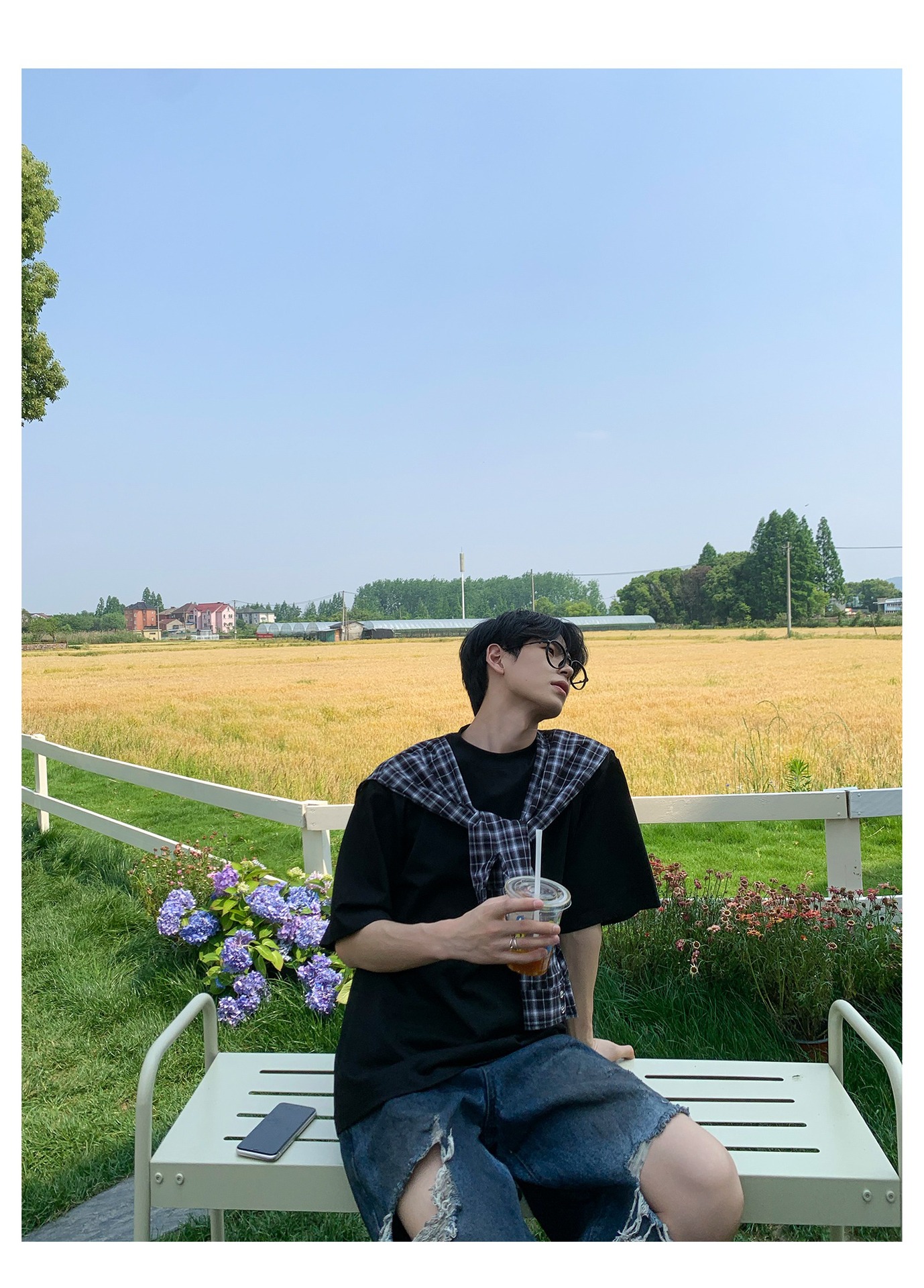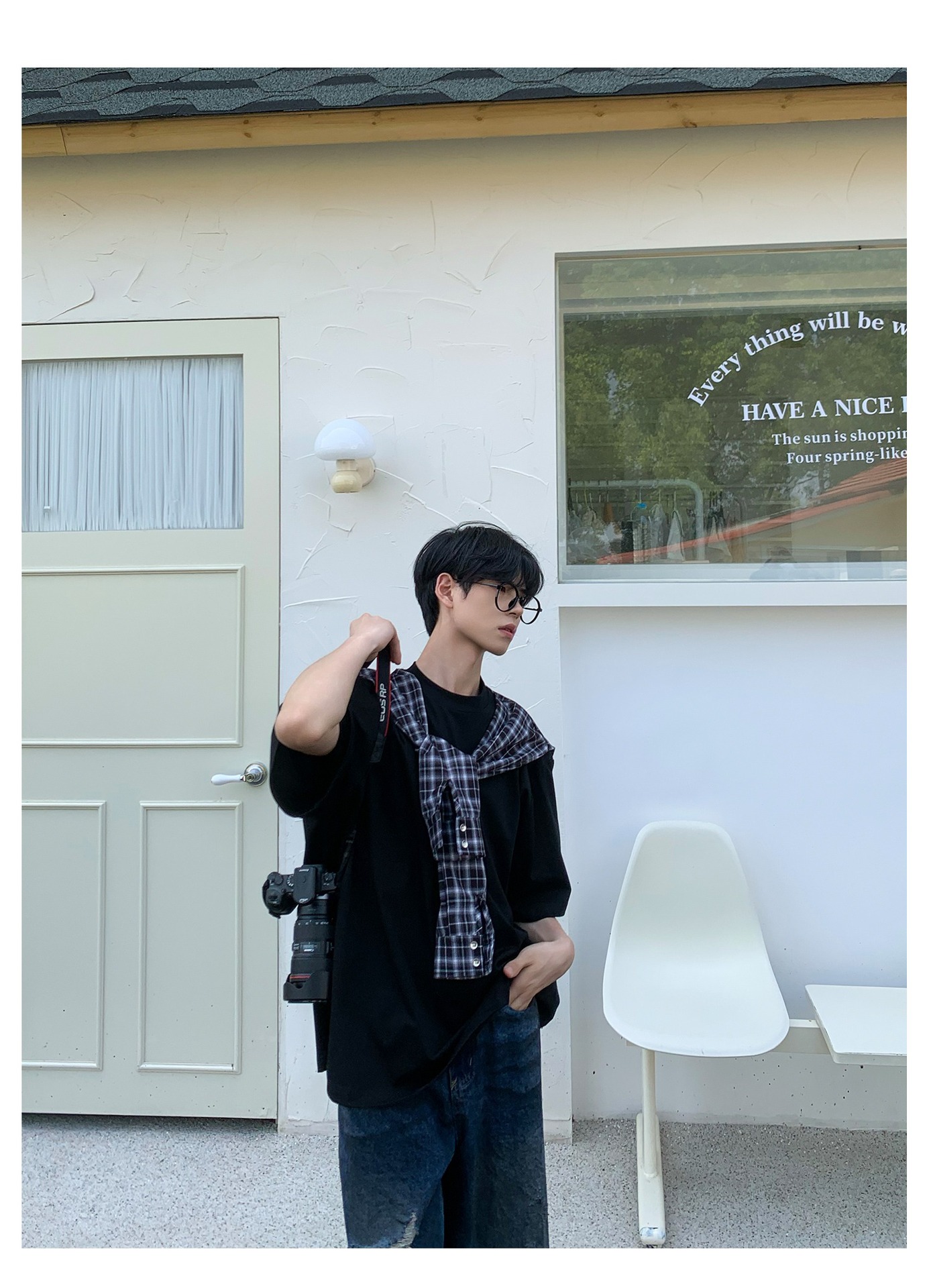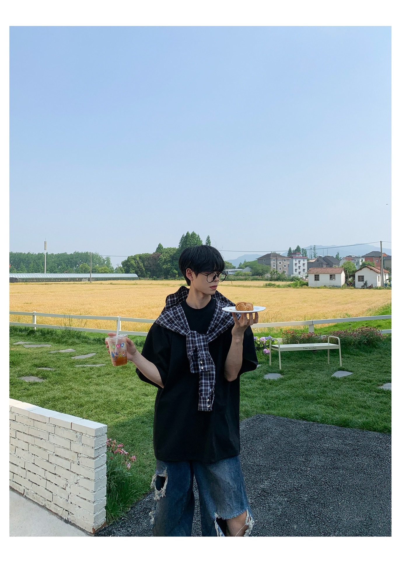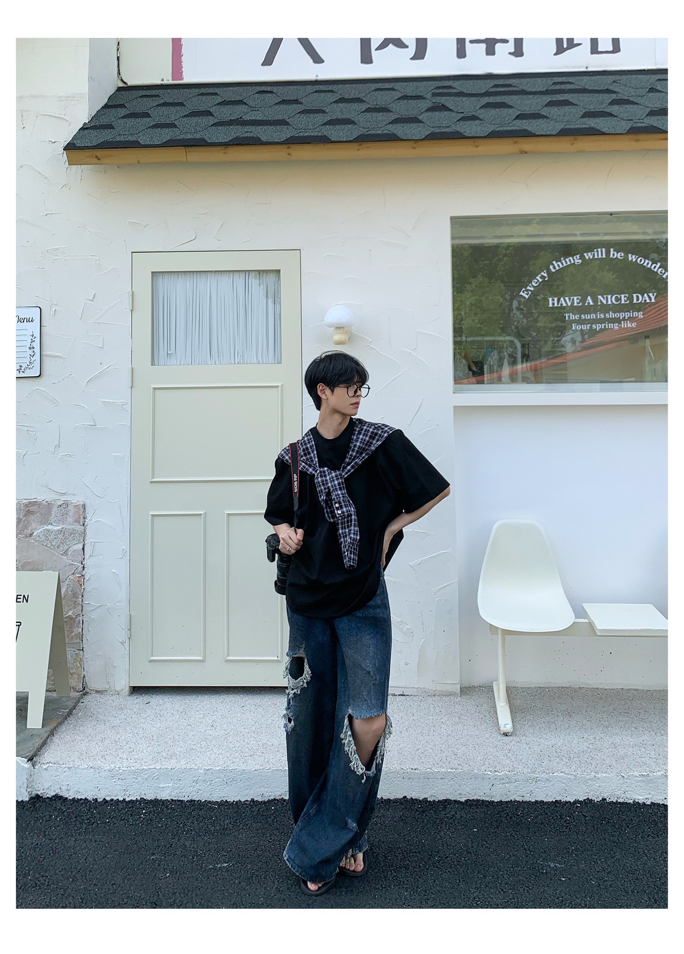 아메리칸 스타일 유행 브랜드 클렌핏 반팔 티셔츠 남성 여름 새로운 느슨한 유행 틈새 가짜 투피스 디자인 탑스토어 가기