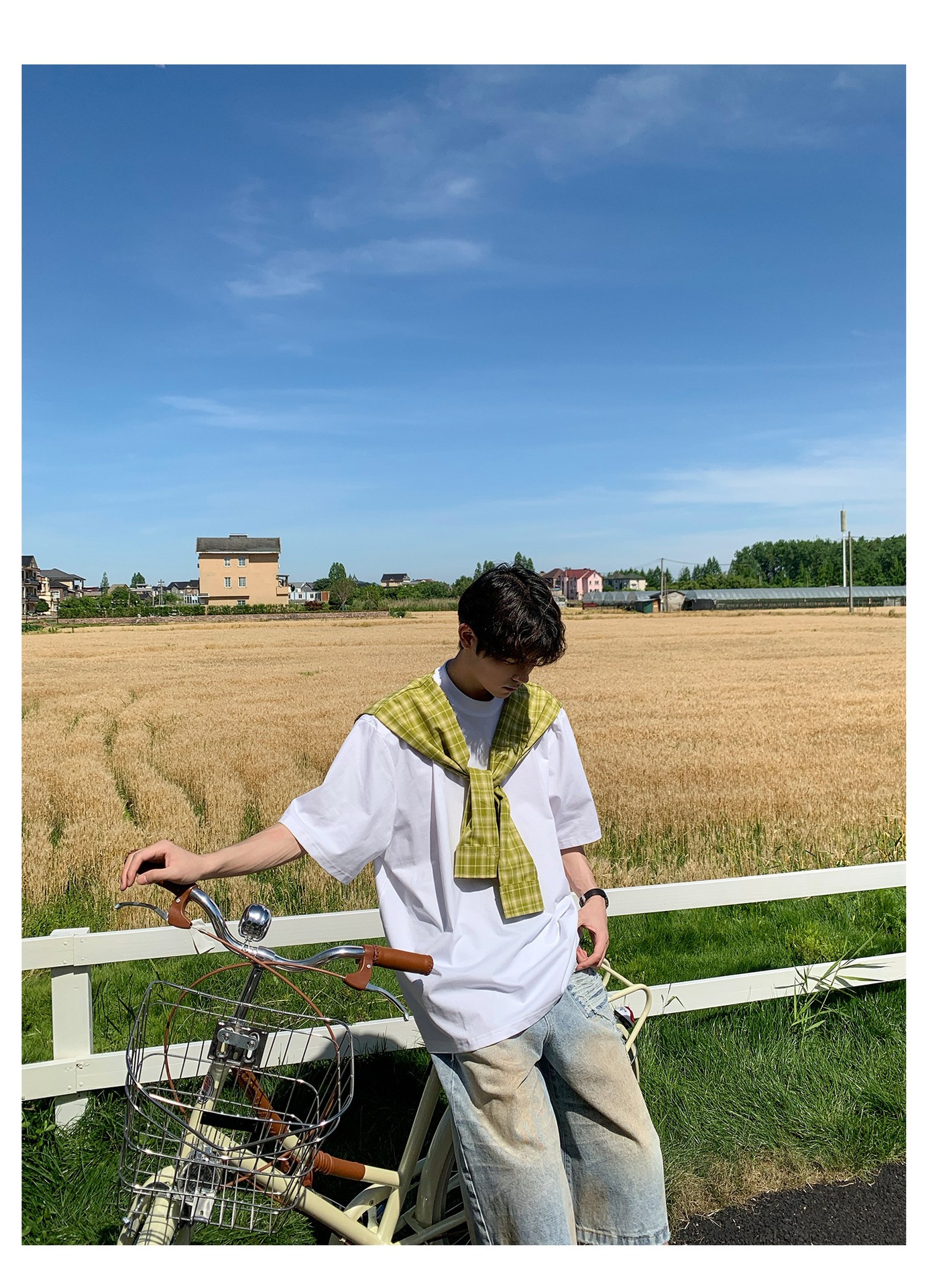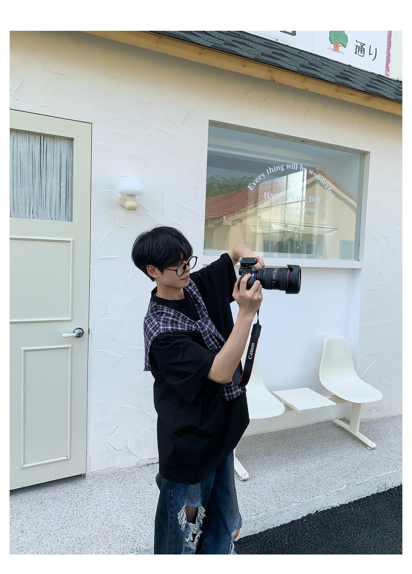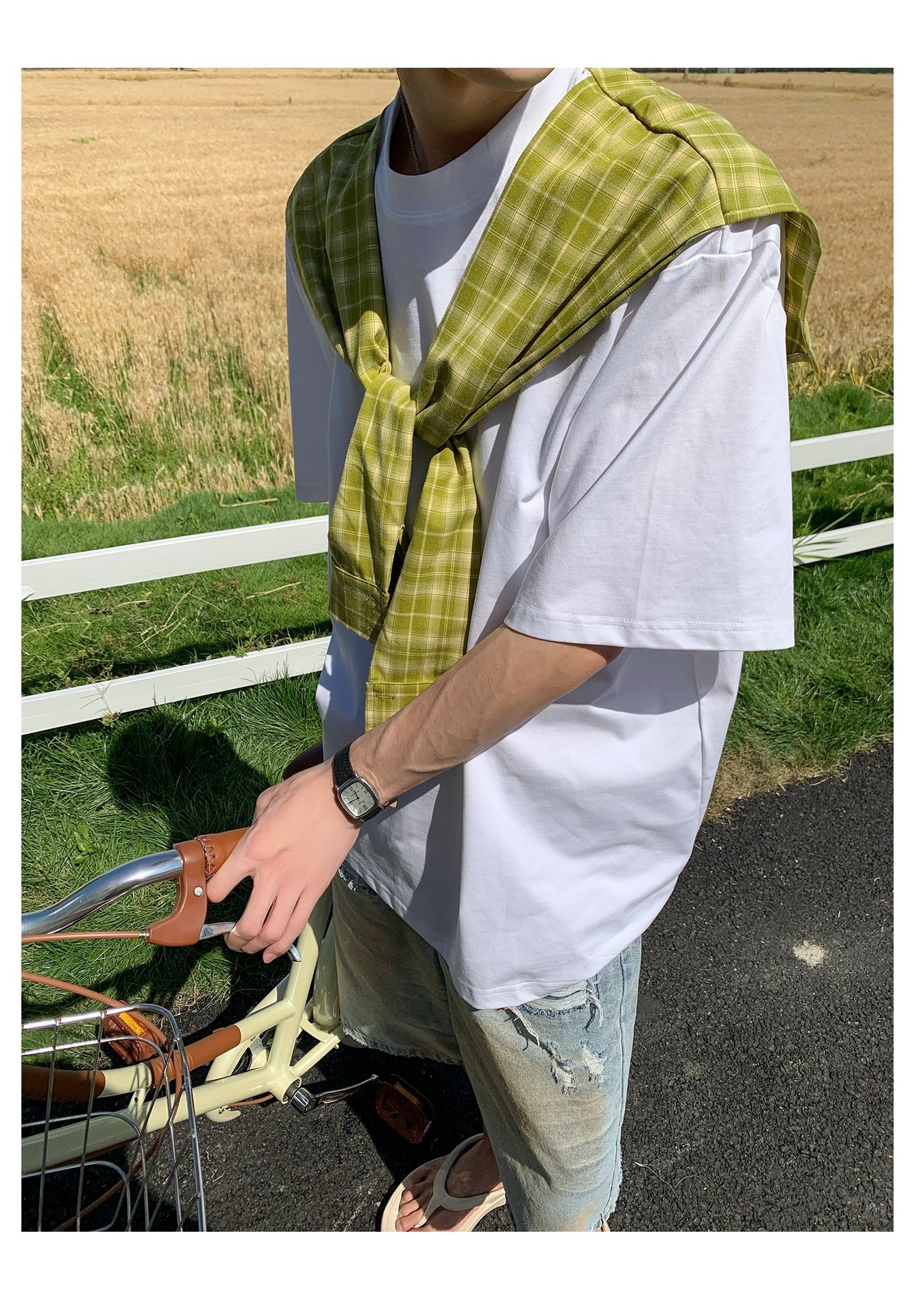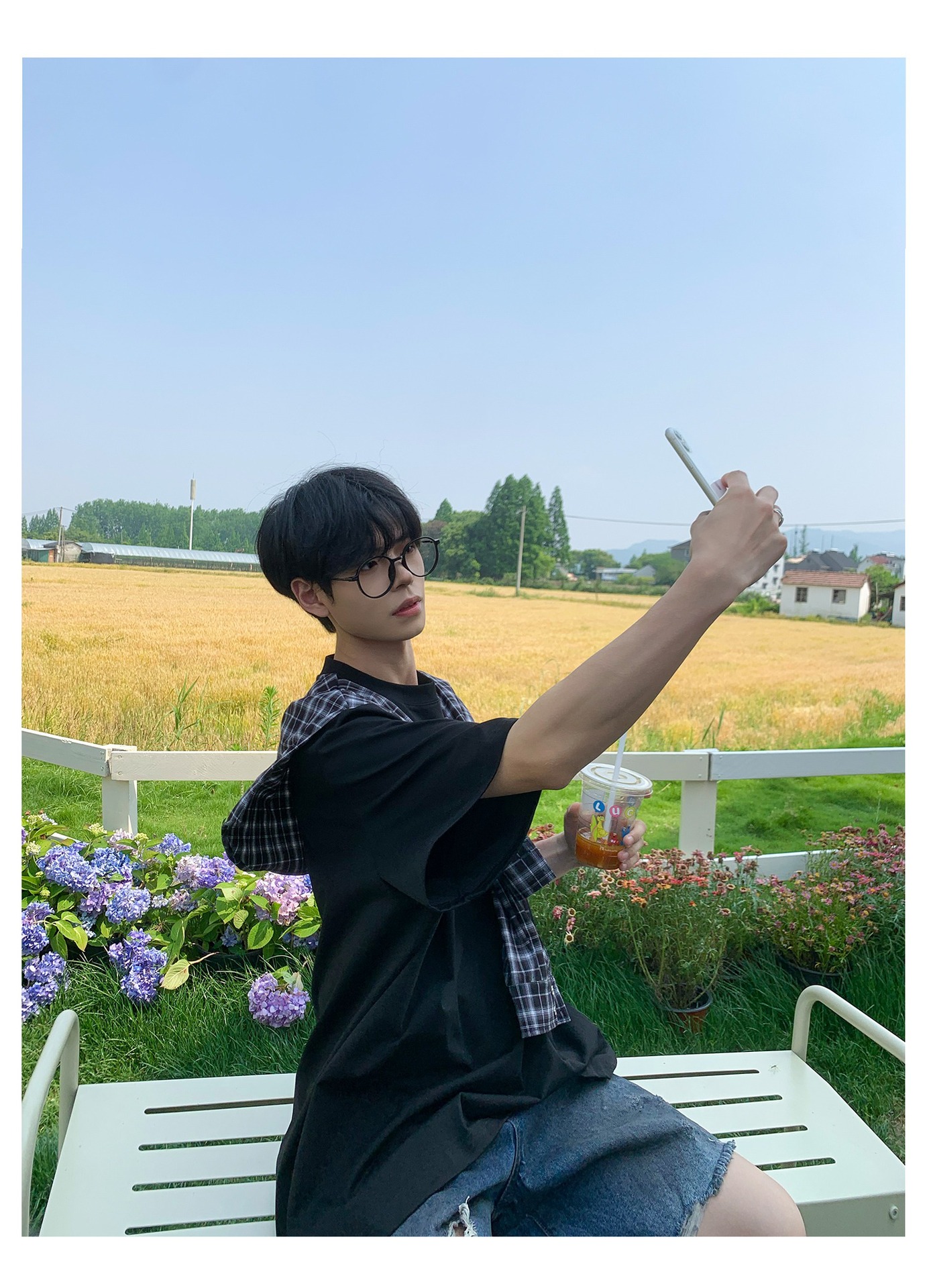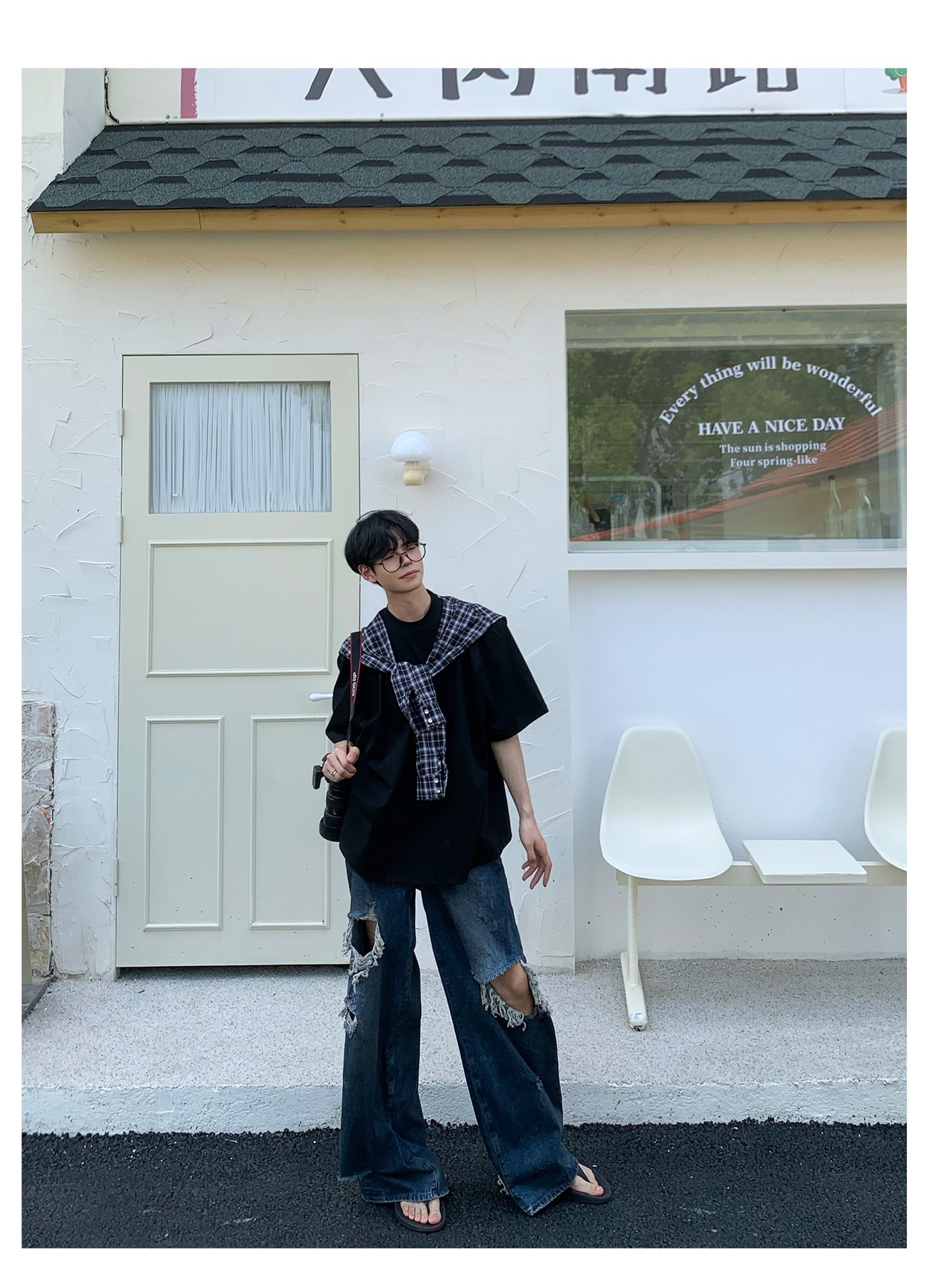 아메리칸 스타일 유행 브랜드 클렌핏 반팔 티셔츠 남성 여름 새로운 느슨한 유행 틈새 가짜 투피스 디자인 탑스토어 가기