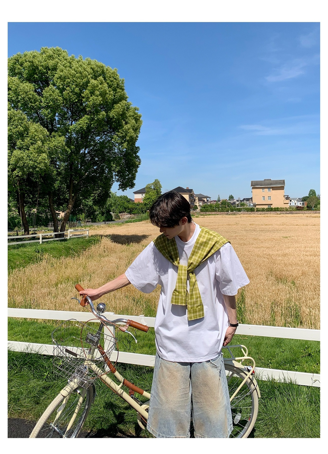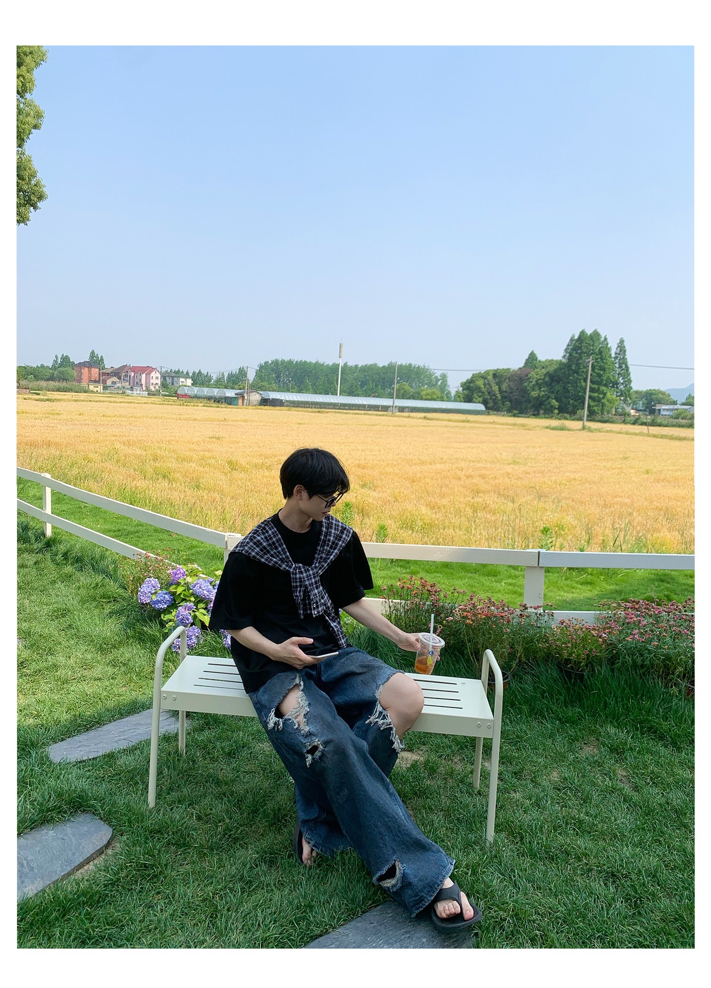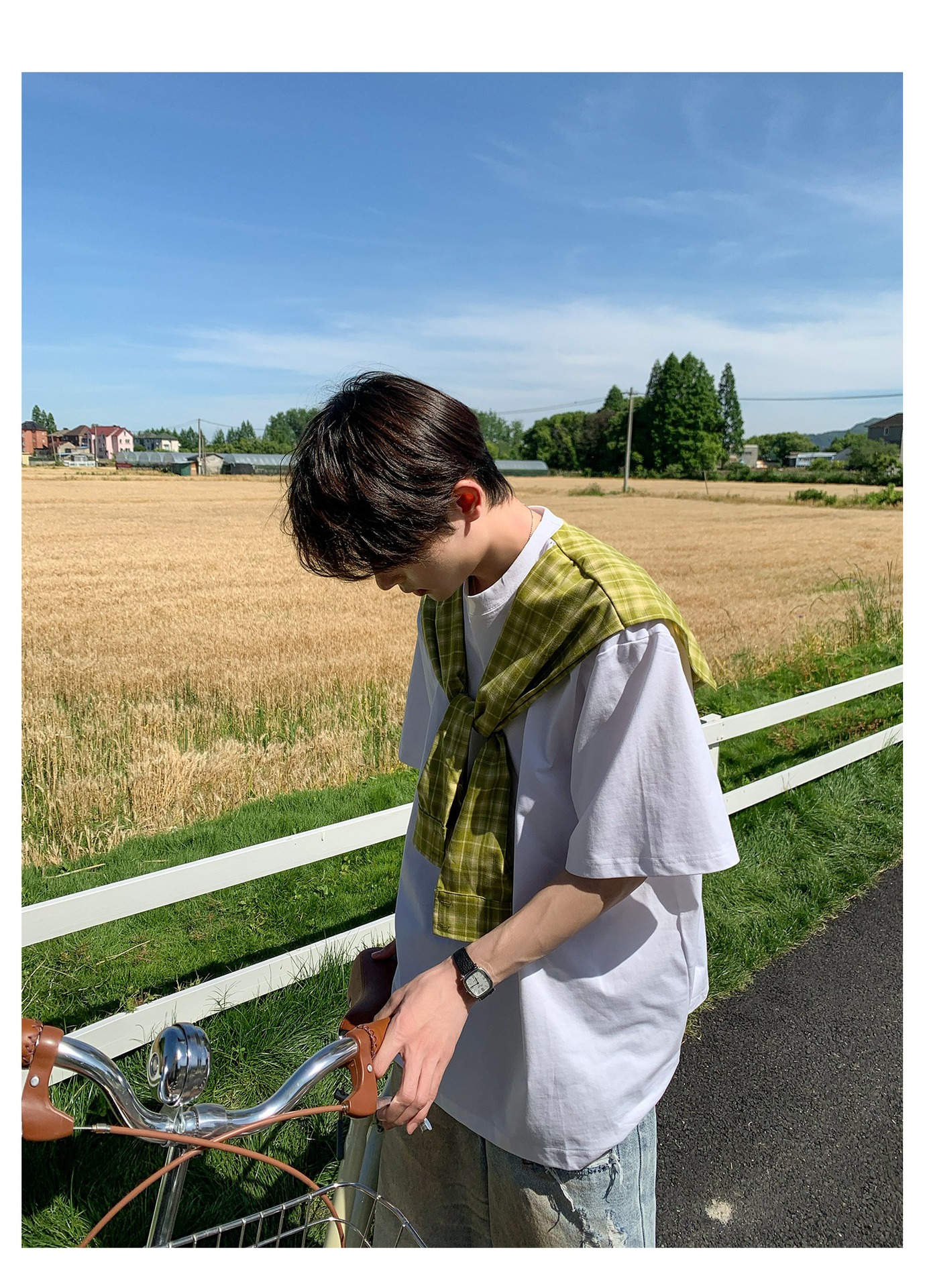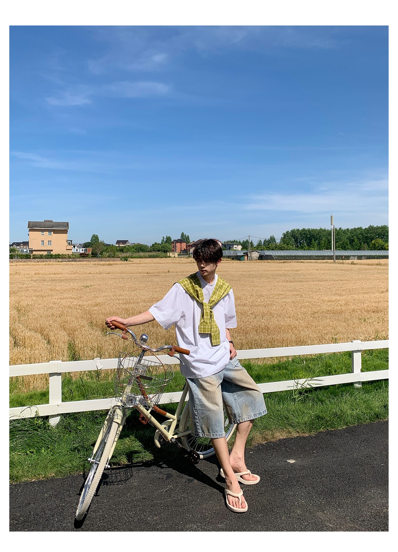 아메리칸 스타일 유행 브랜드 클렌핏 반팔 티셔츠 남성 여름 새로운 느슨한 유행 틈새 가짜 투피스 디자인 탑스토어 가기