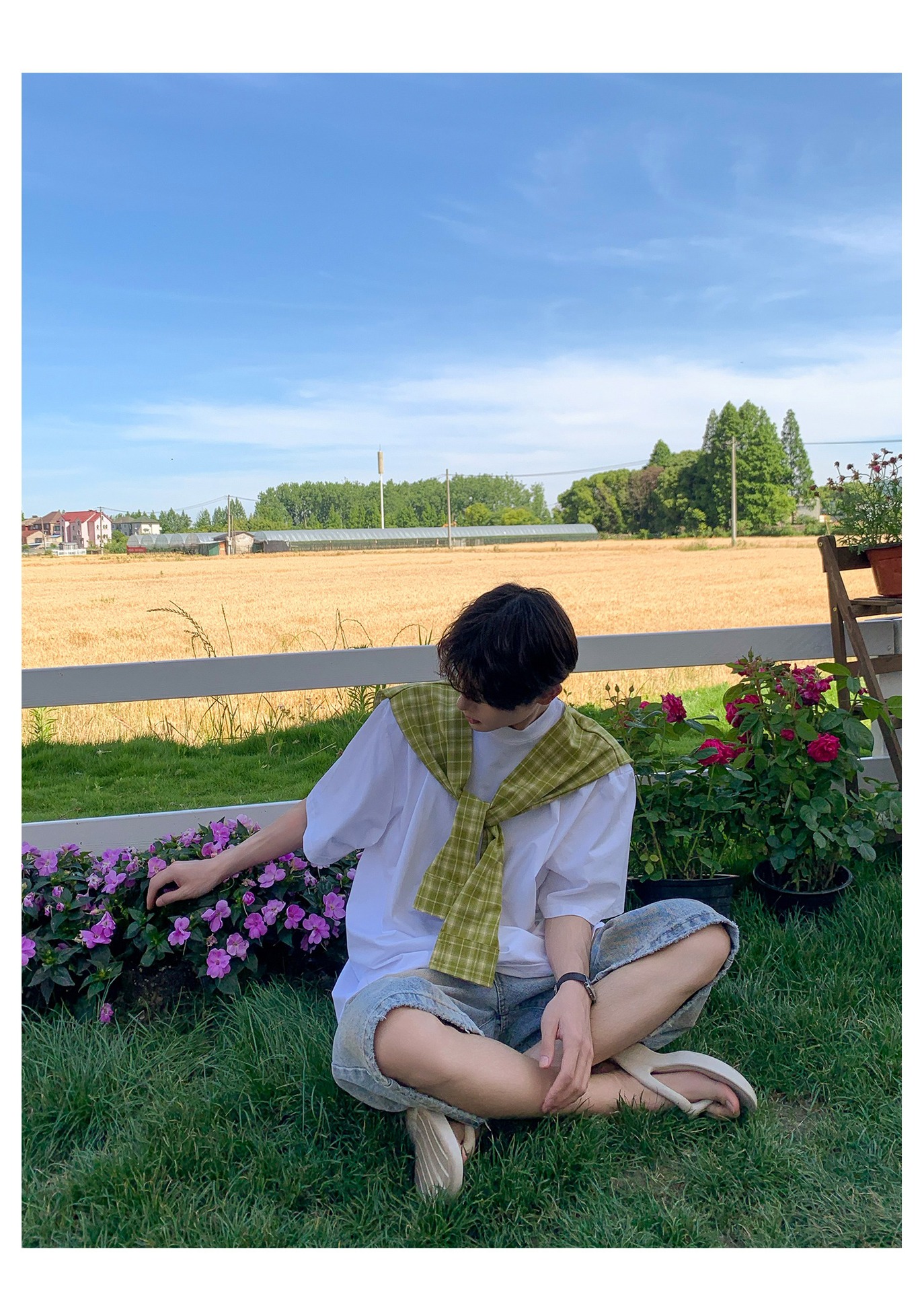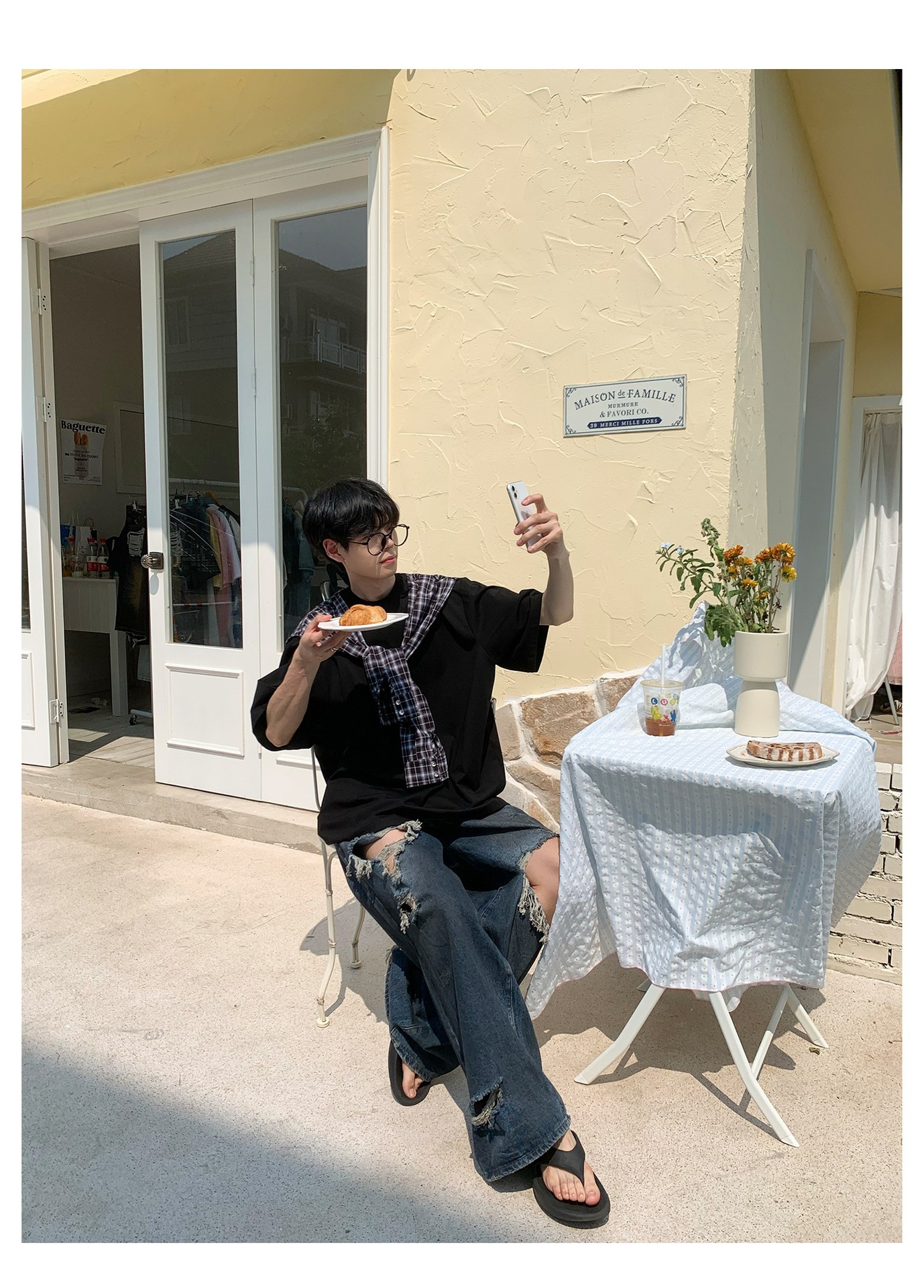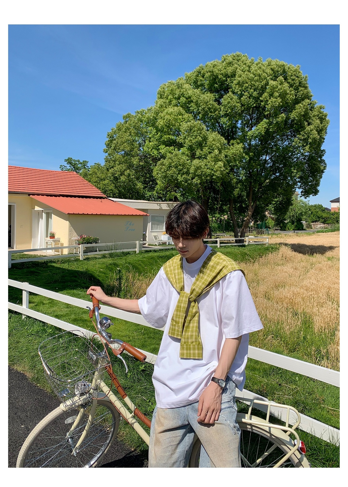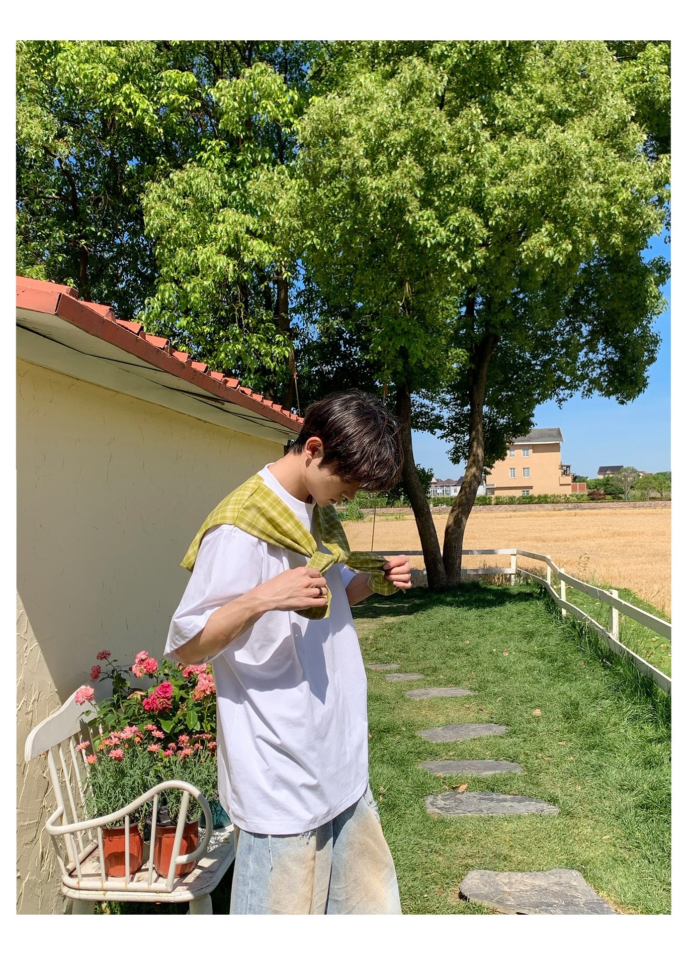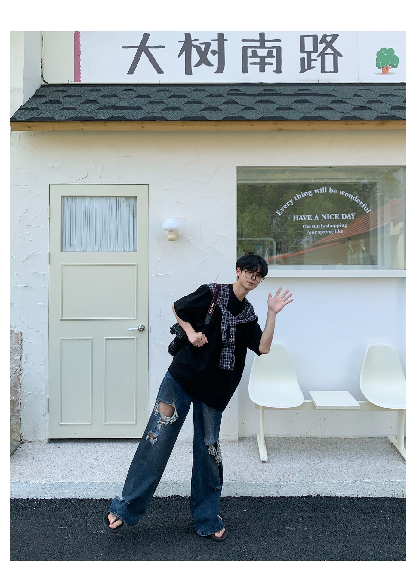 아메리칸 스타일 유행 브랜드 클렌핏 반팔 티셔츠 남성 여름 새로운 느슨한 유행 틈새 가짜 투피스 디자인 탑스토어 가기