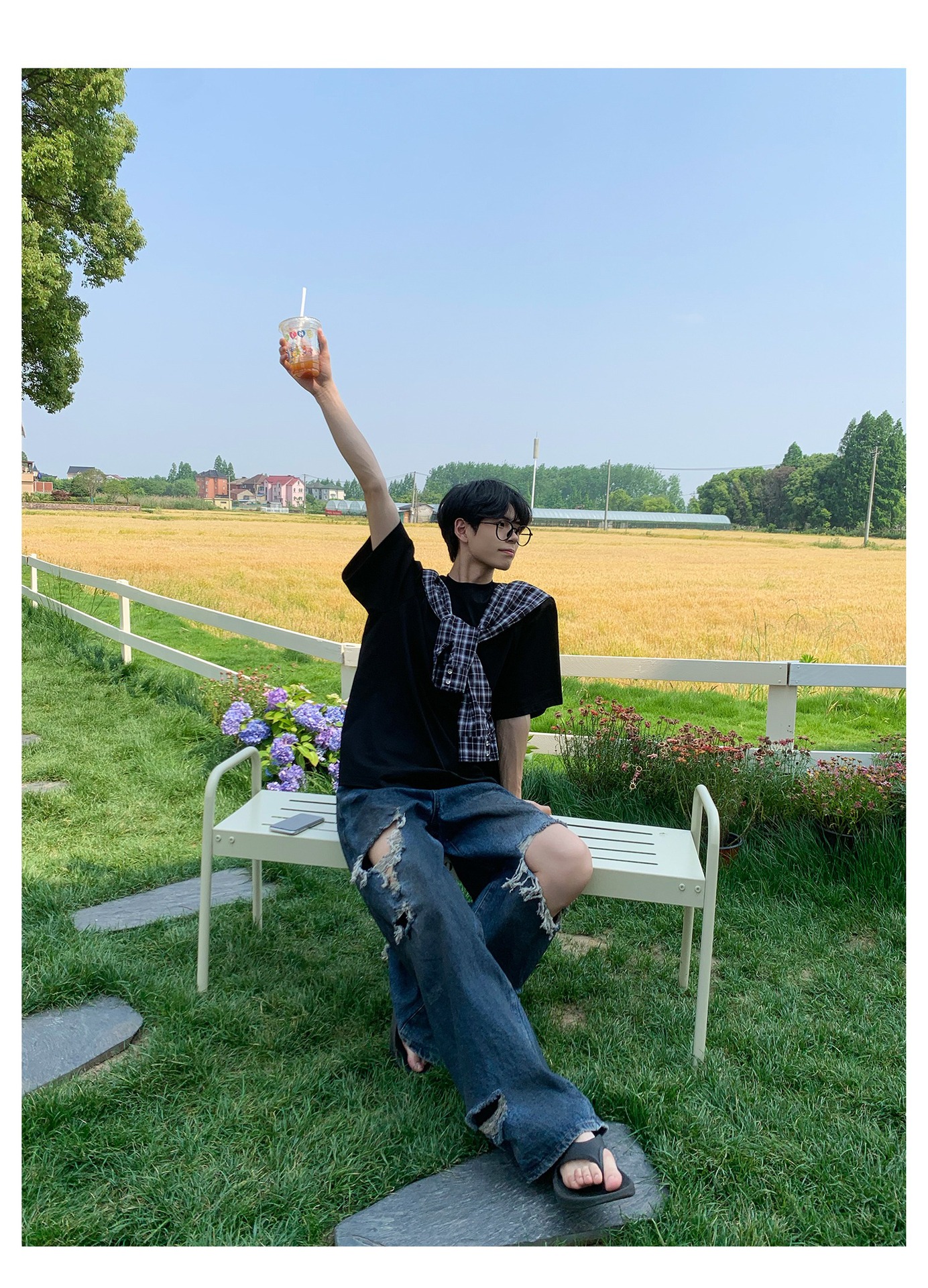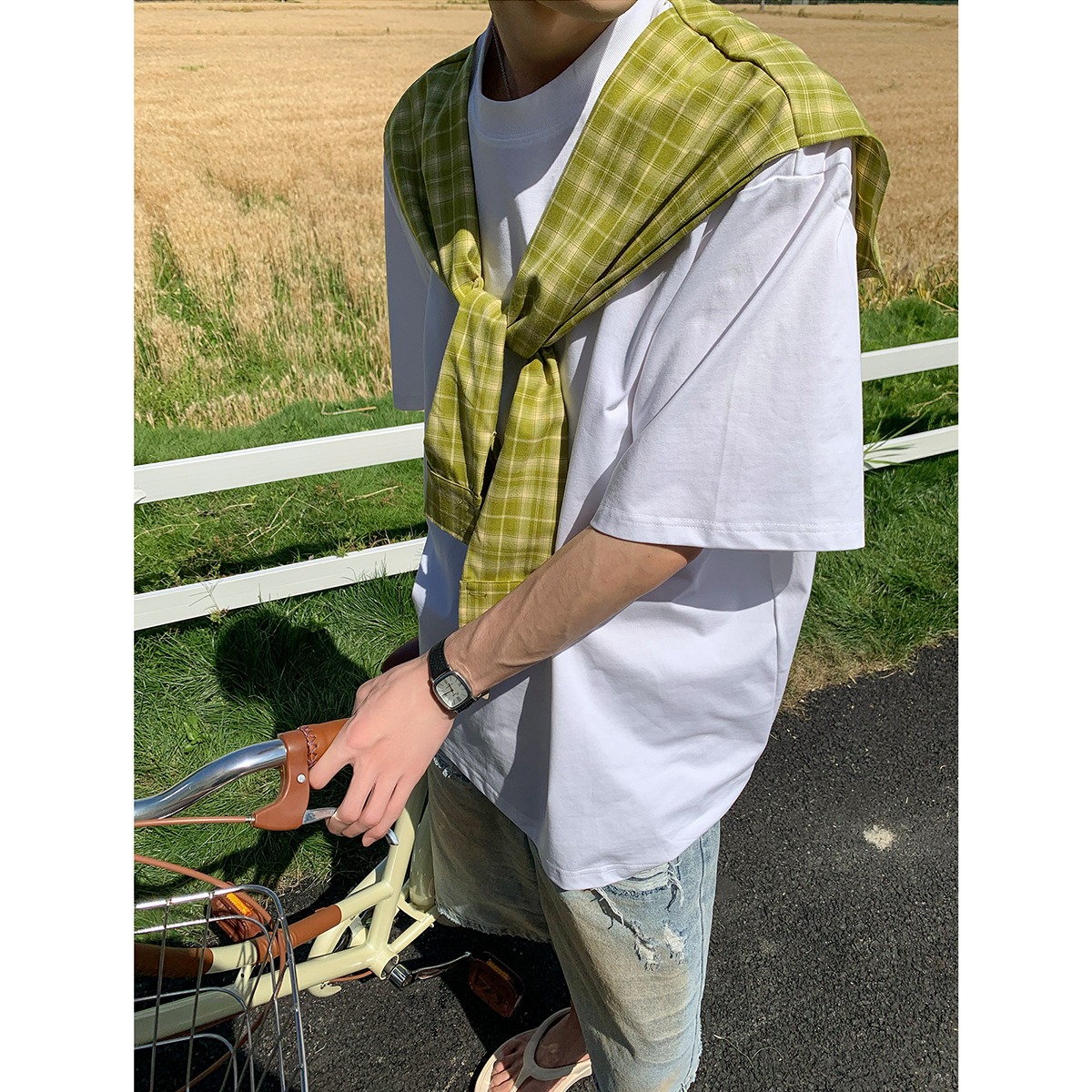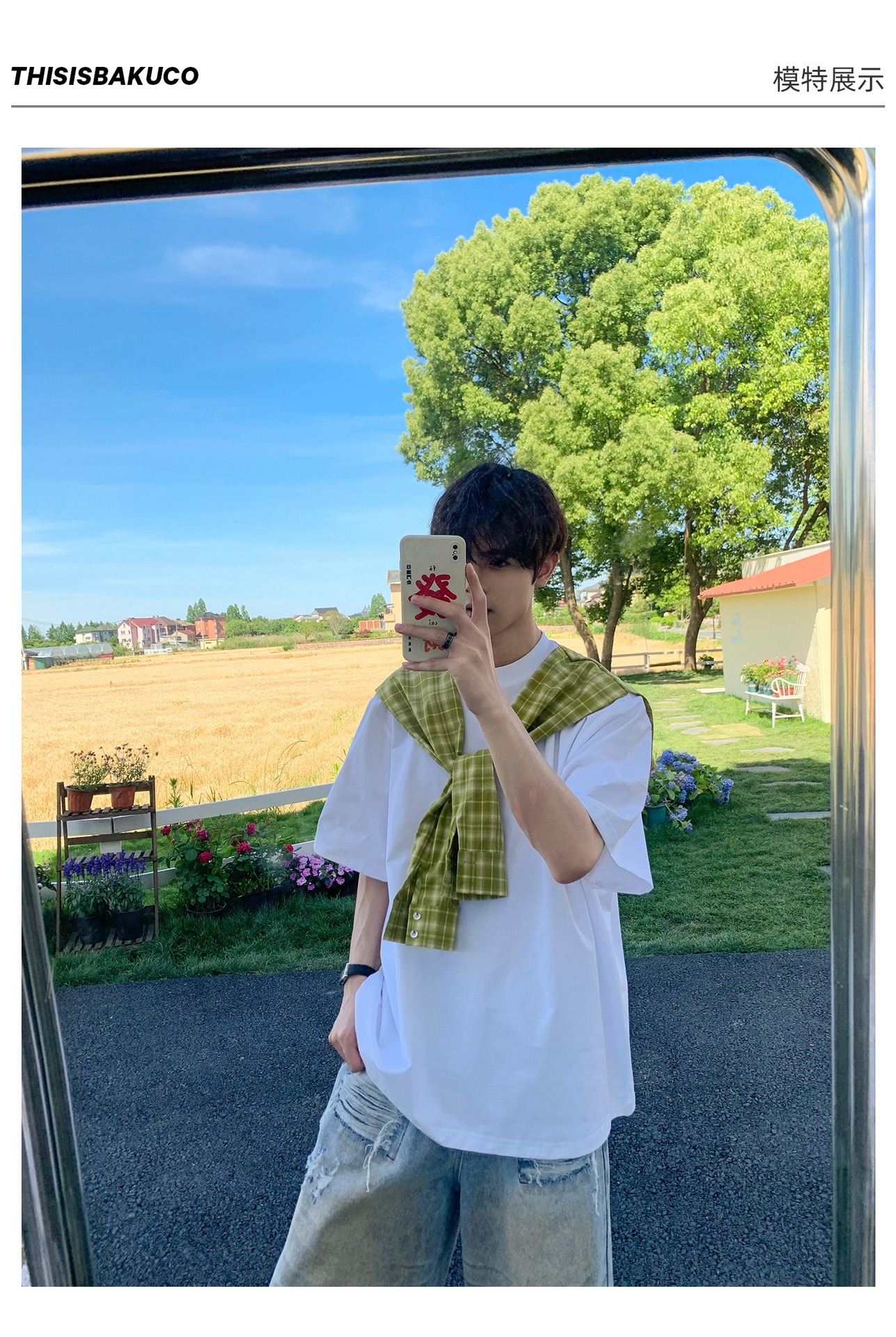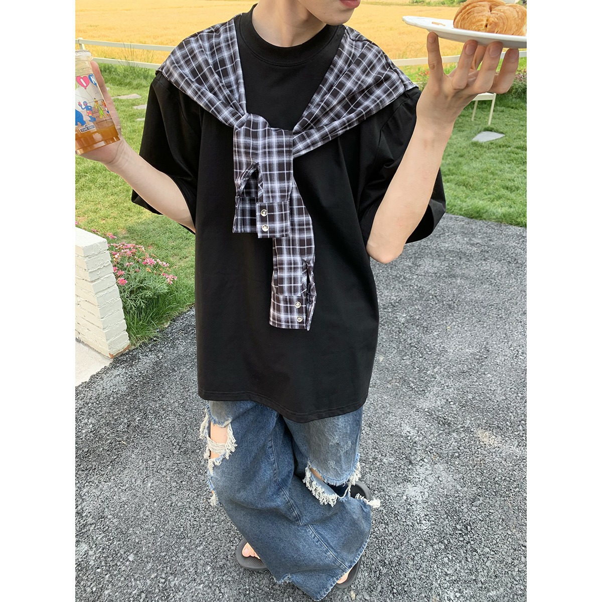 아메리칸 스타일 유행 브랜드 클렌핏 반팔 티셔츠 남성 여름 새로운 느슨한 유행 틈새 가짜 투피스 디자인 탑
