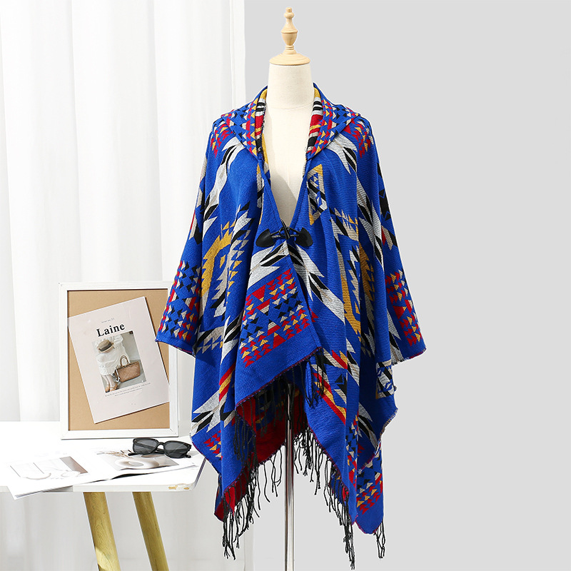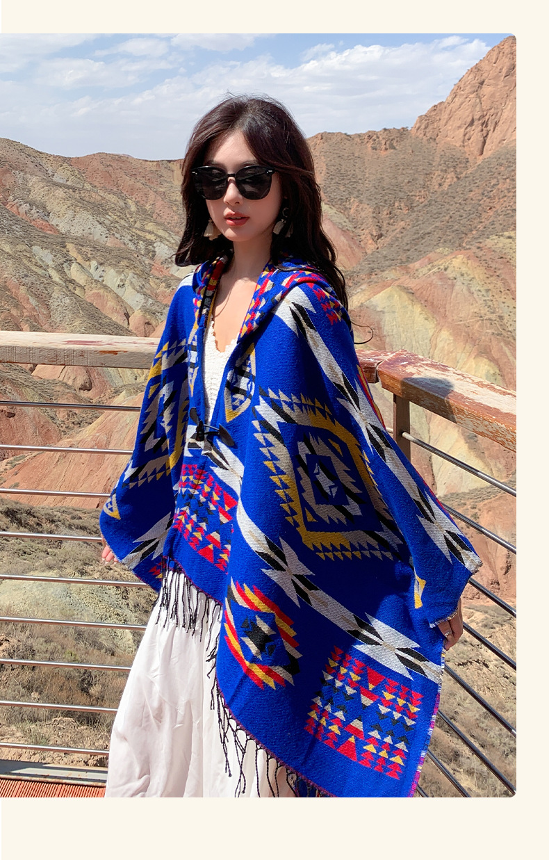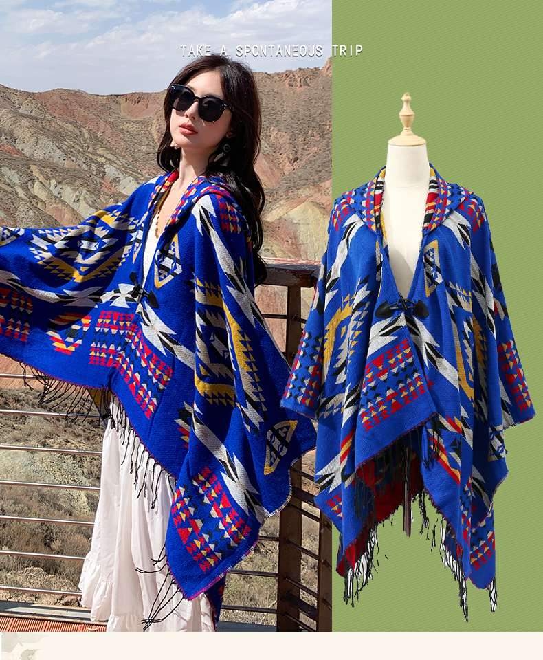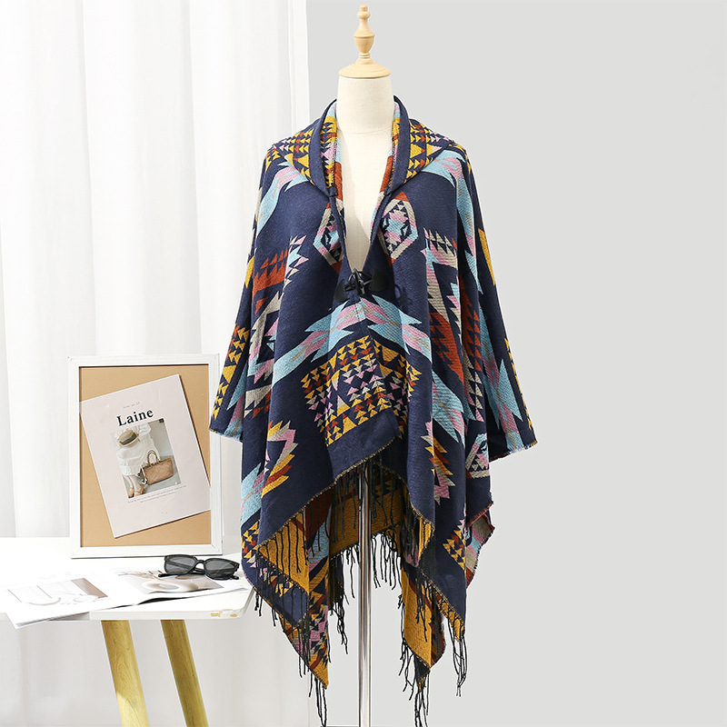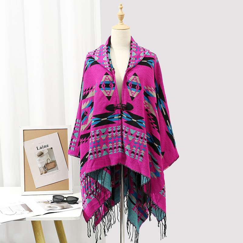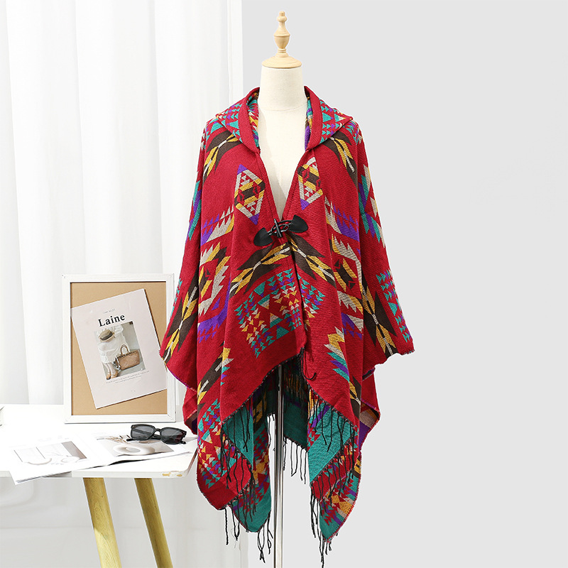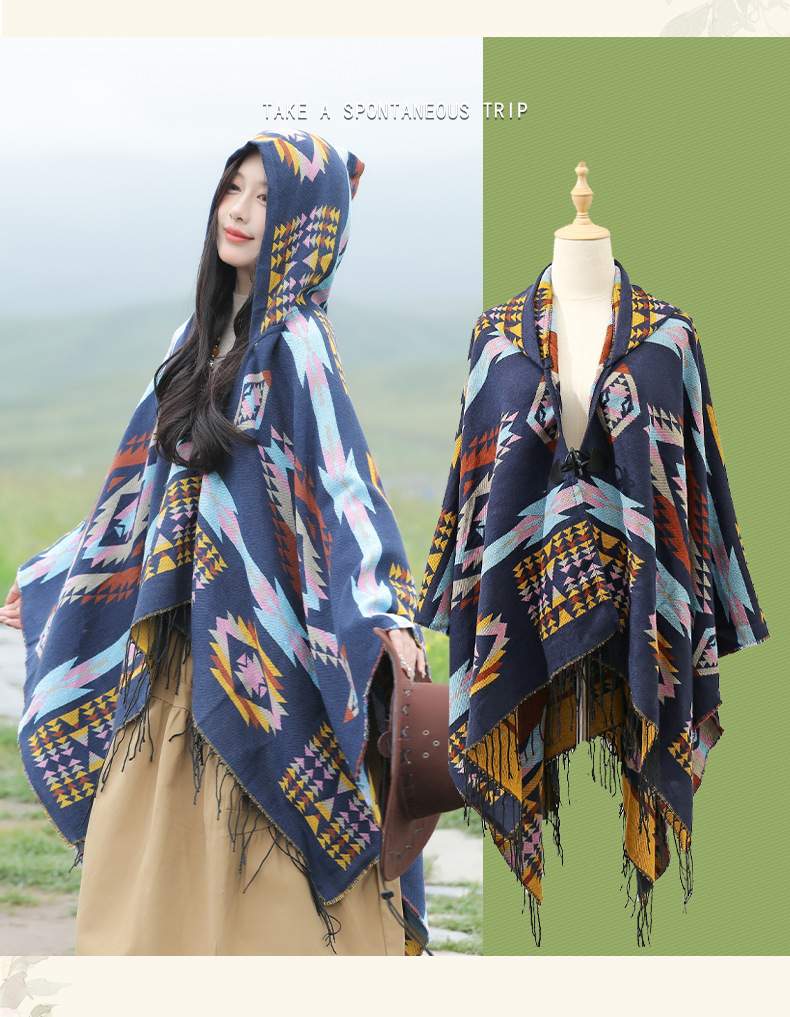 봄 다목적 맞춤형 기하학 민족 스타일 버클 케이프 편안한 통기성 따뜻한 프린지 후드 숄 케이프