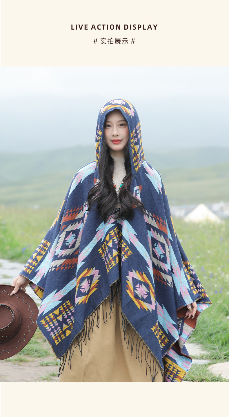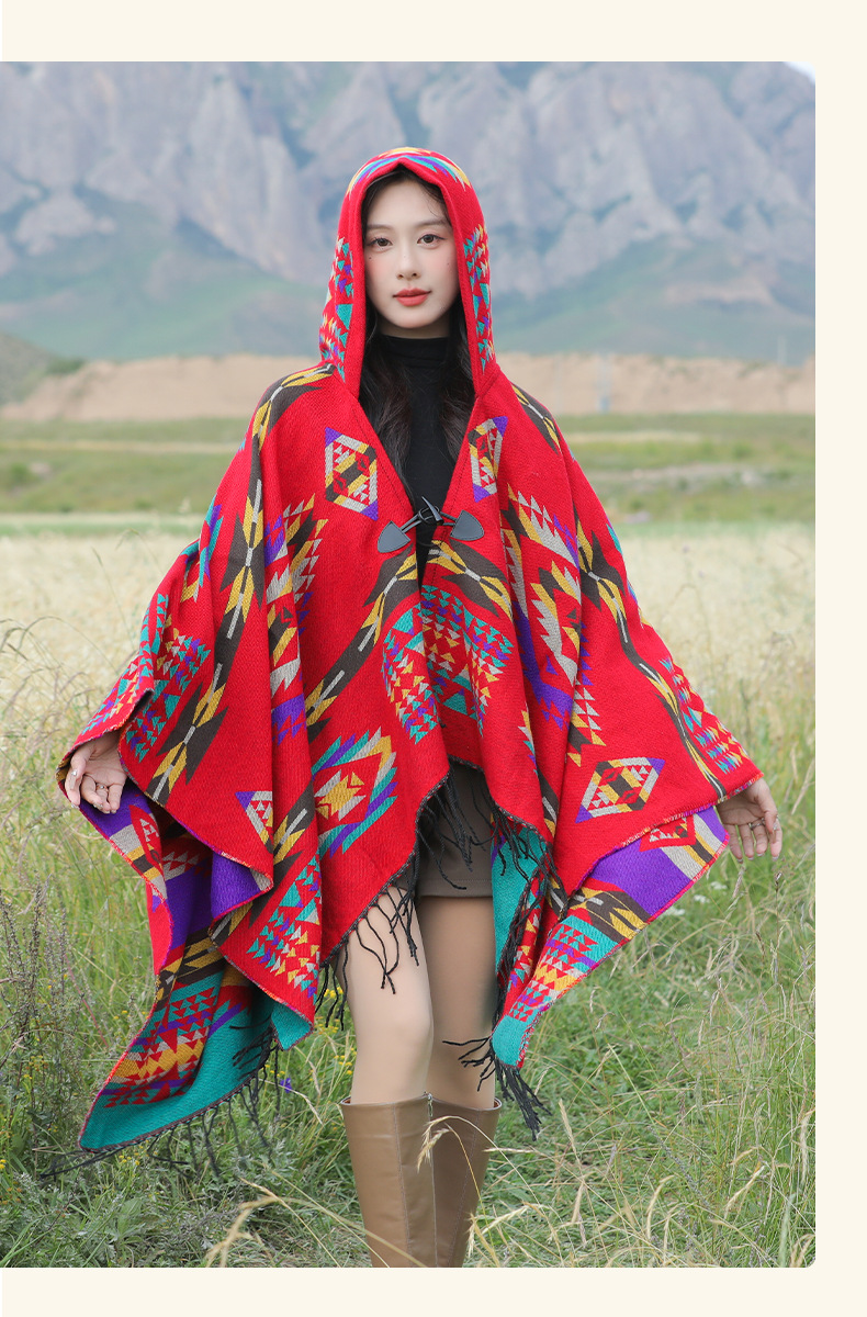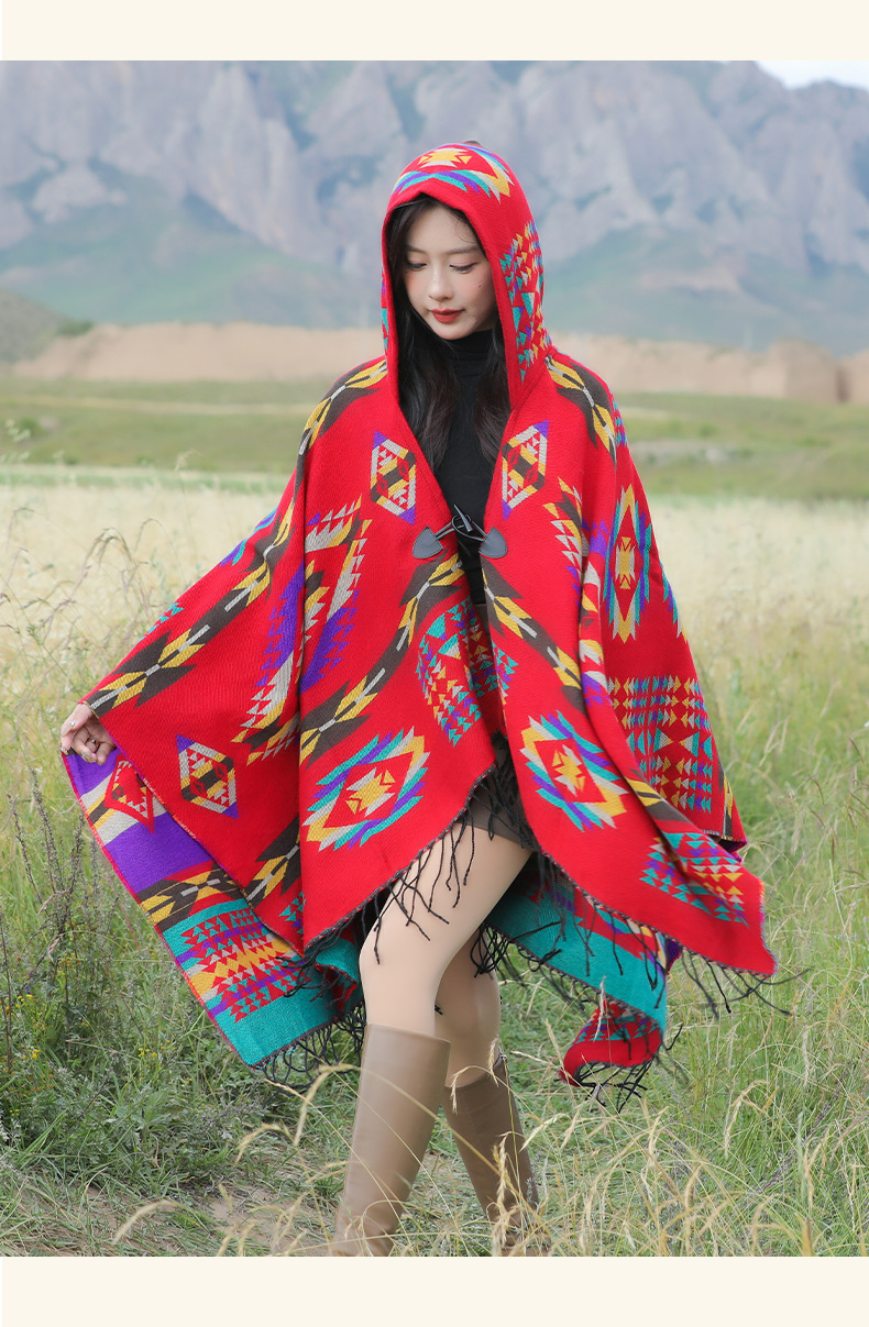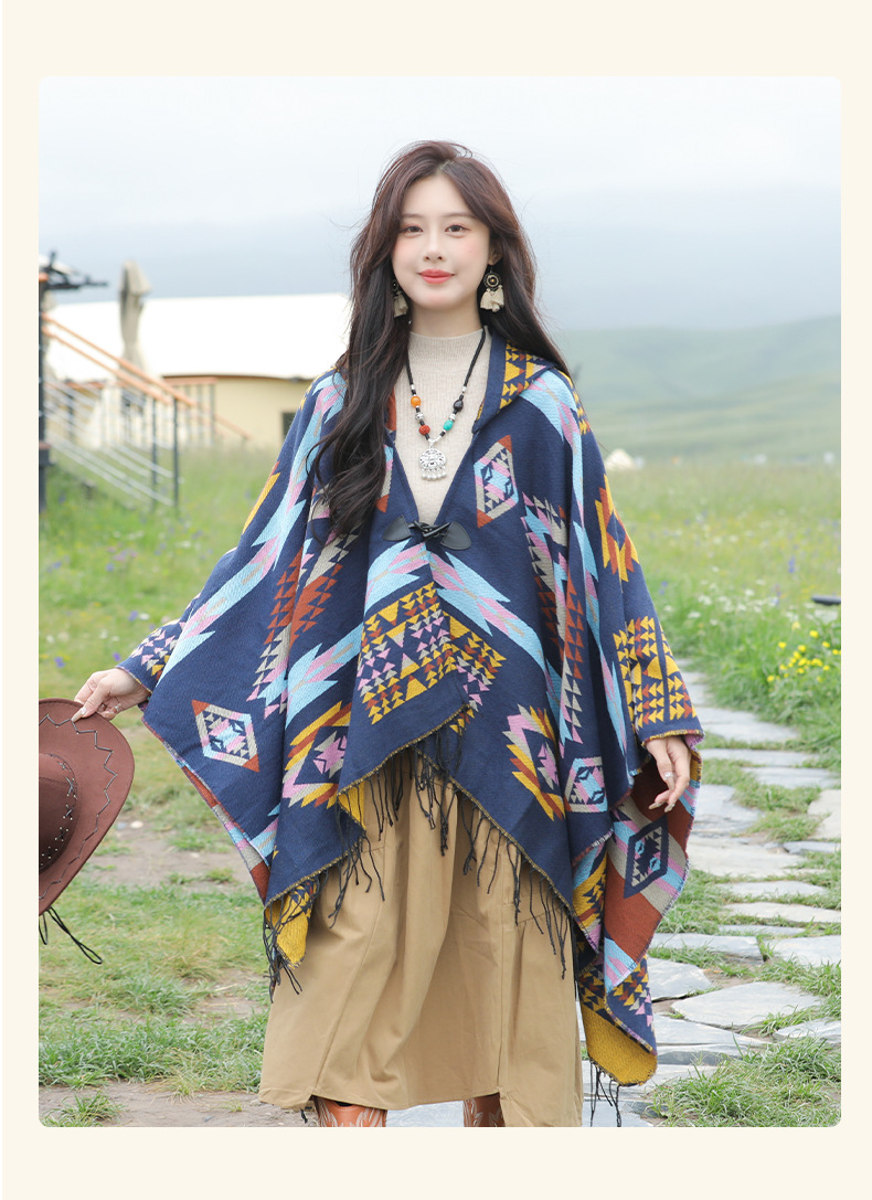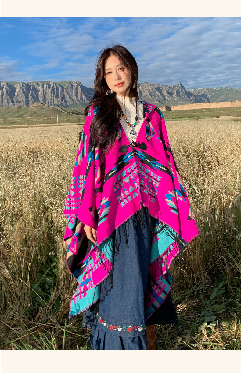 봄 다목적 맞춤형 기하학 민족 스타일 버클 케이프 편안한 통기성 따뜻한 프린지 후드 숄 케이프