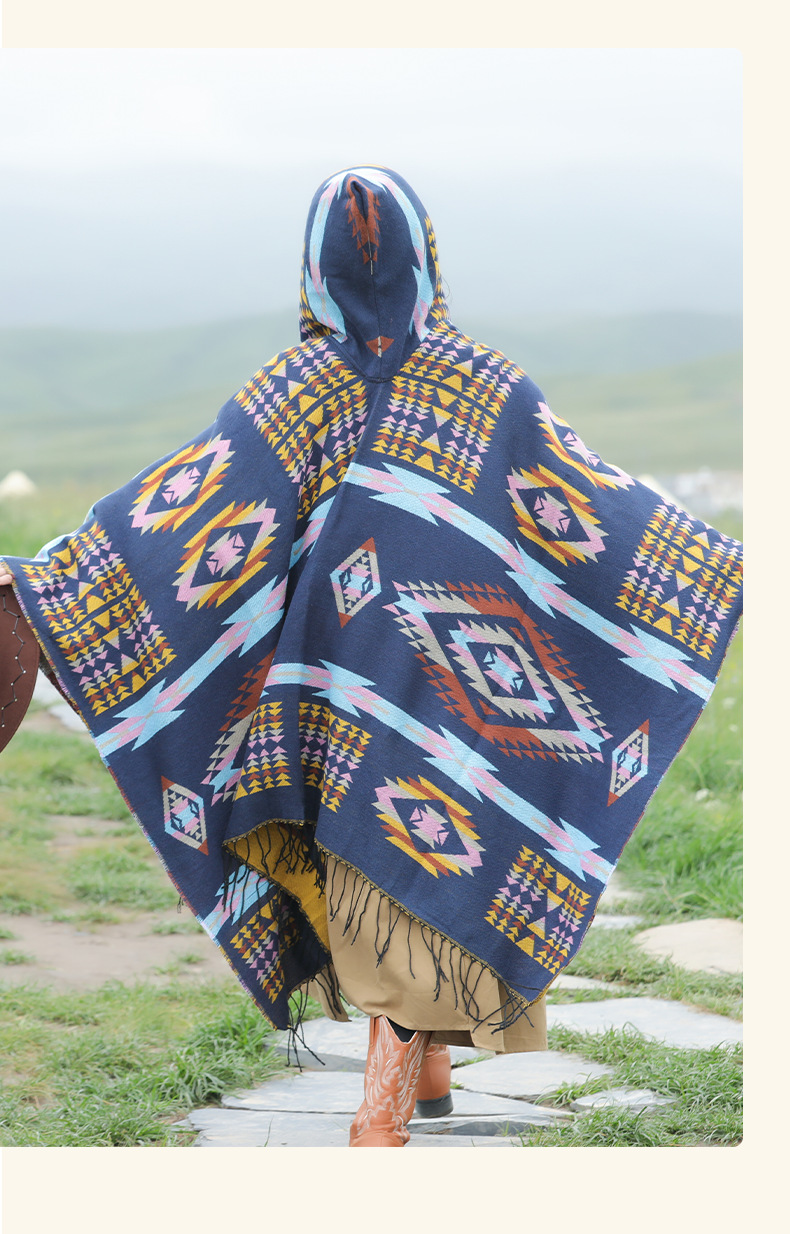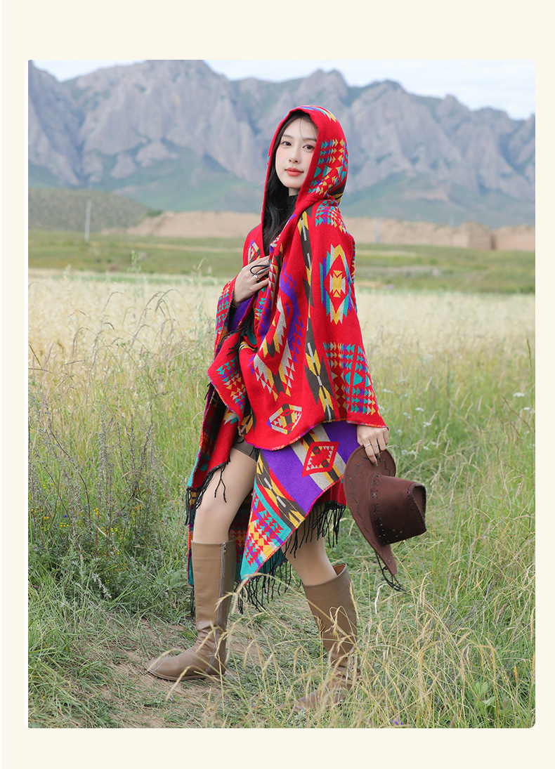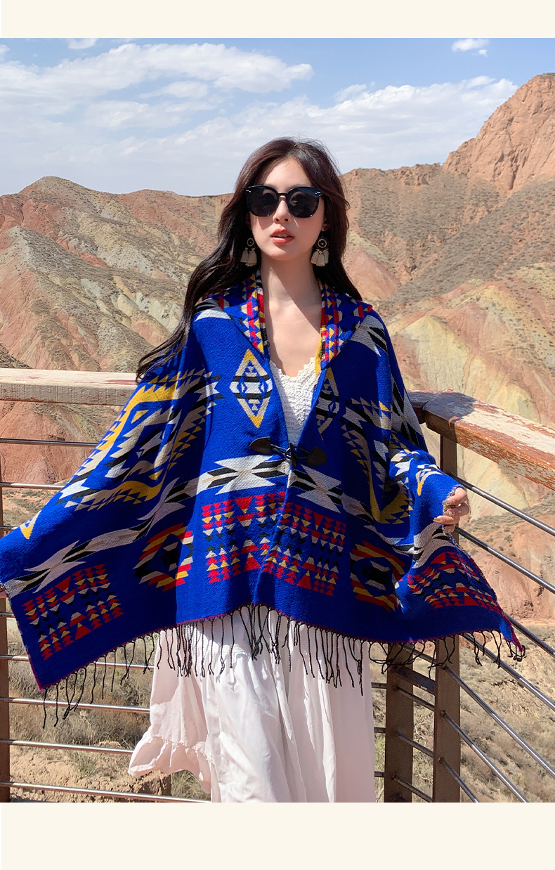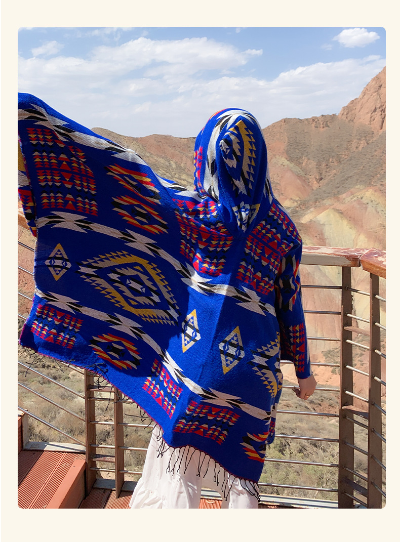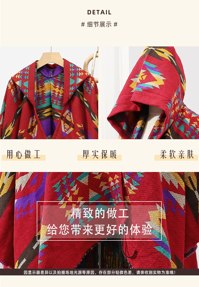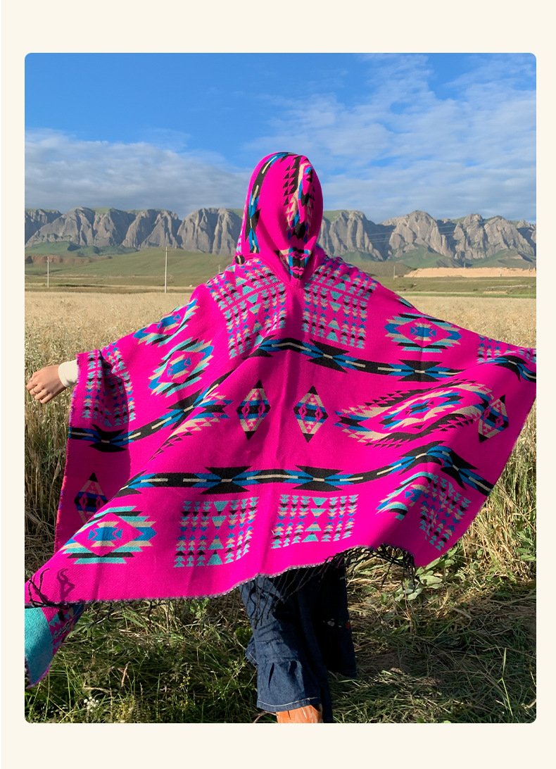 봄 다목적 맞춤형 기하학 민족 스타일 버클 케이프 편안한 통기성 따뜻한 프린지 후드 숄 케이프