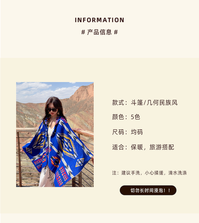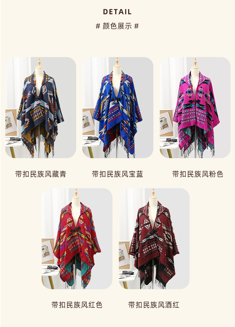 봄 다목적 맞춤형 기하학 민족 스타일 버클 케이프 편안한 통기성 따뜻한 프린지 후드 숄 케이프스토어 가기