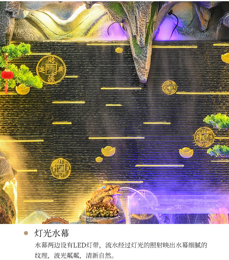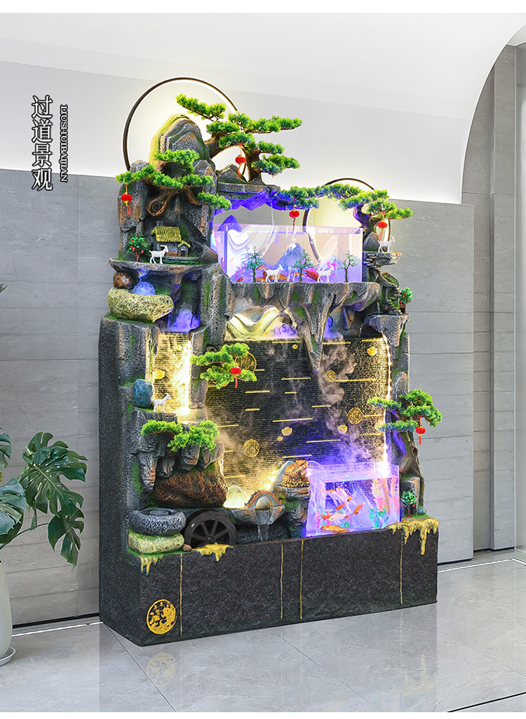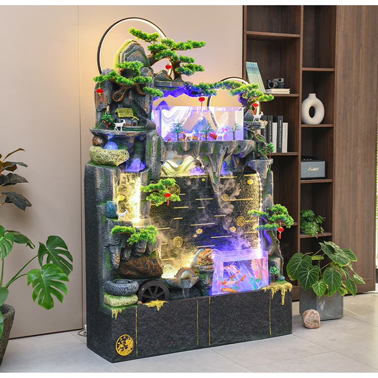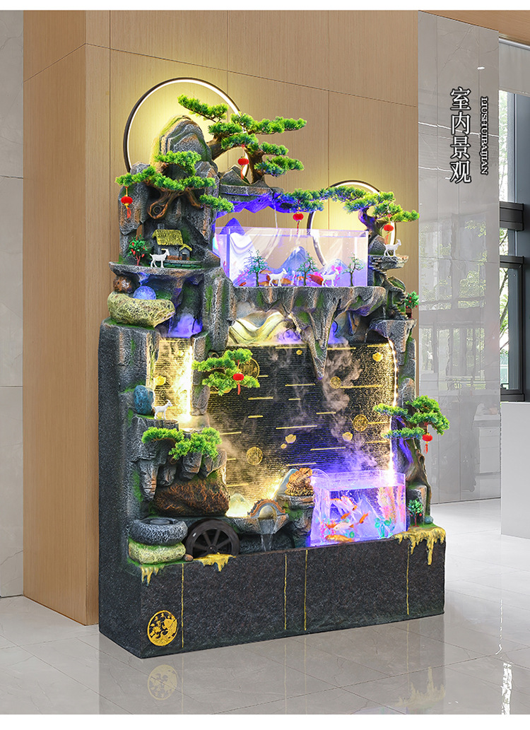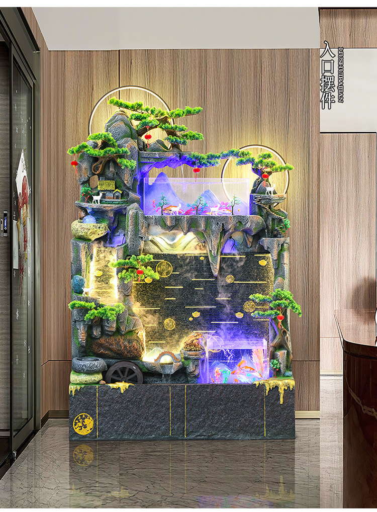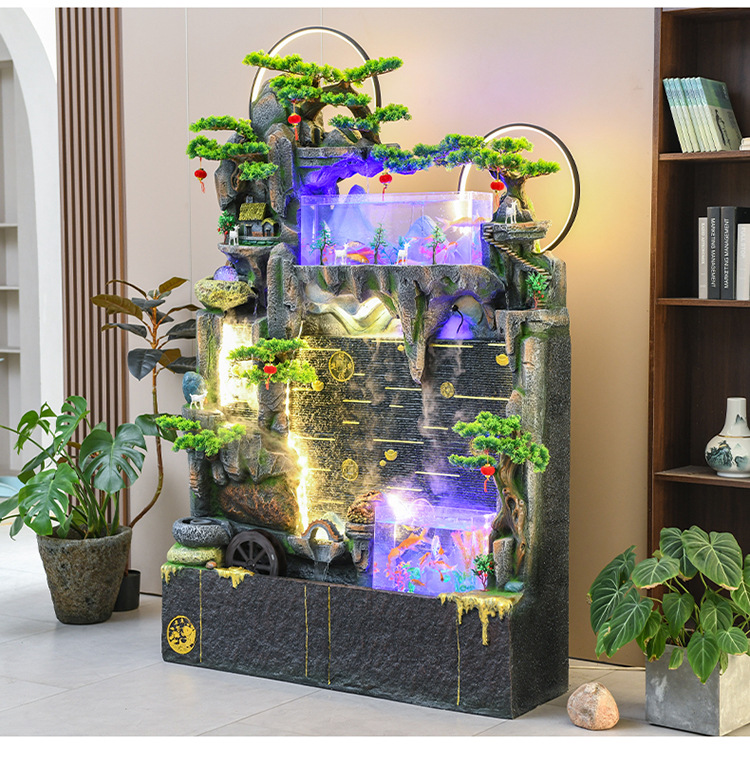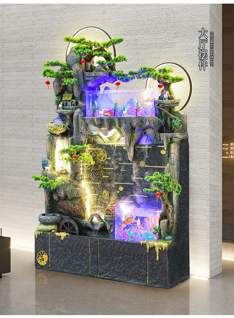 바위 흐르는 물 분수 장식품 순환 물 커튼 벽 현관 스크린 거실 사무실 장식 개방 행운의 물고기 탱크